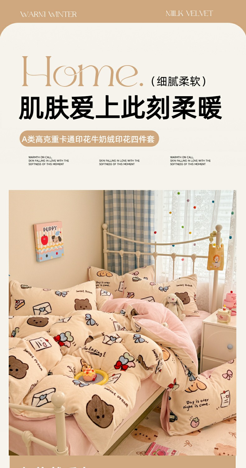 当前位置: 91家纺网 > 商品网购 > 床品套件 > 四件套 > 牛奶绒四件套 > 呗旺鹿 2025新款A类高克重卡通印花牛奶绒印花四件套 奶油小猫