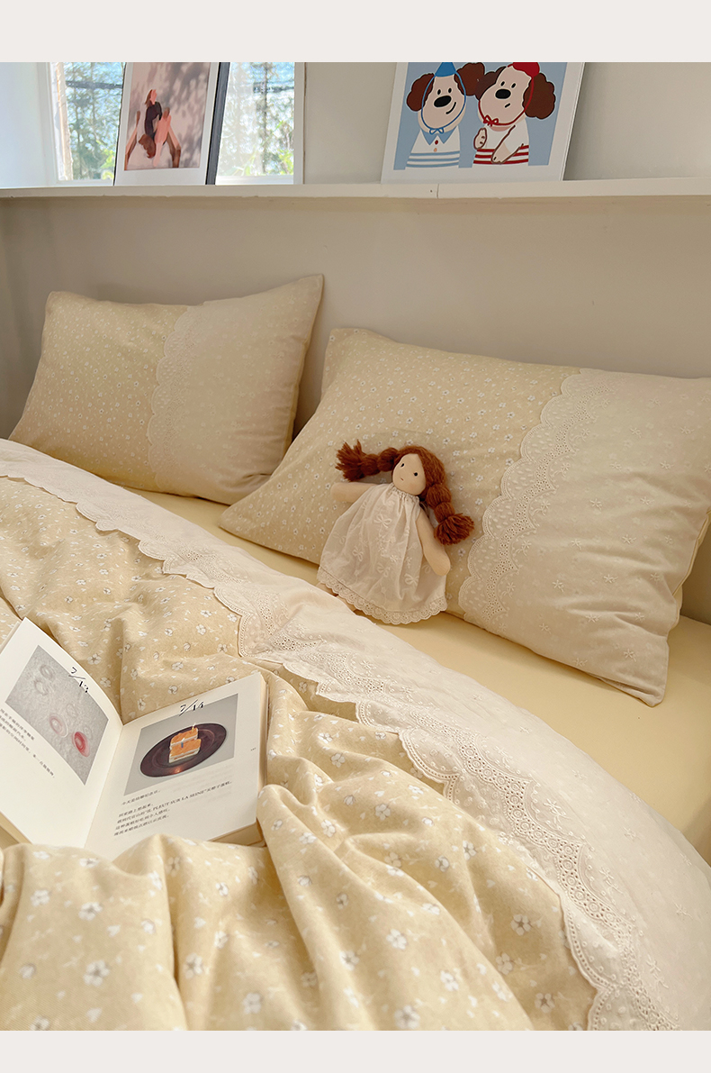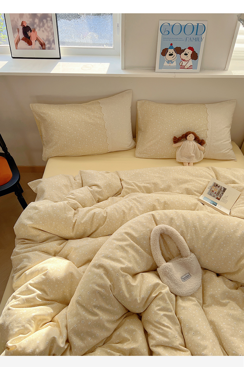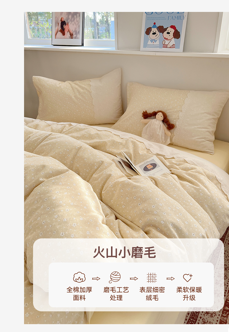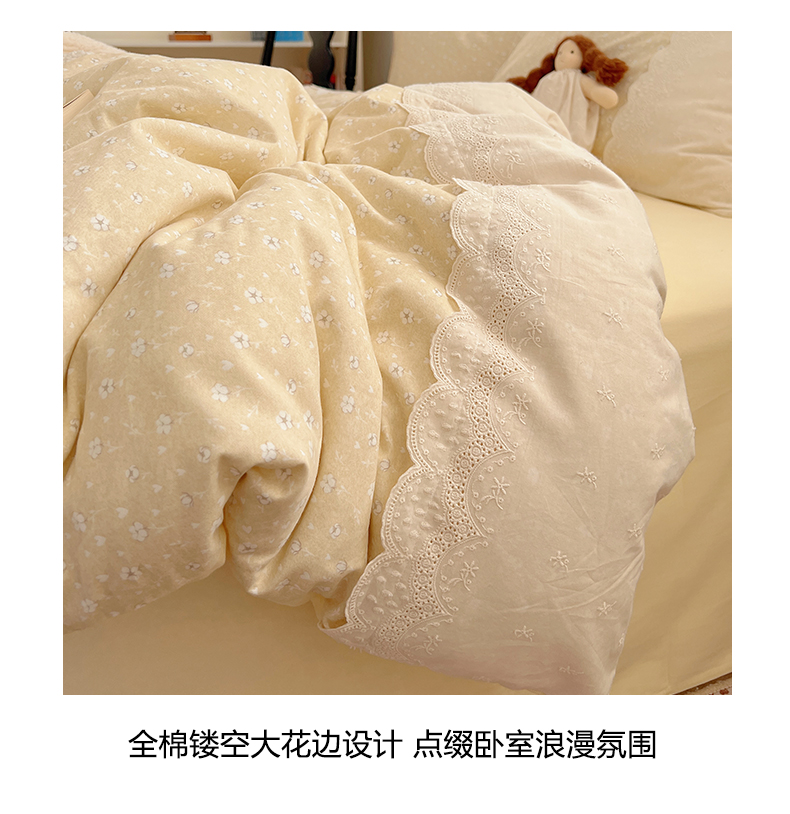 当前位置: 91家纺网 > 商品网购 > 床品套件 > 四件套 > 普通磨毛四件套 > XIWEN-希文家纺 2025新款全棉淑女花边数码印花磨毛四件套 花朵朵-黄
