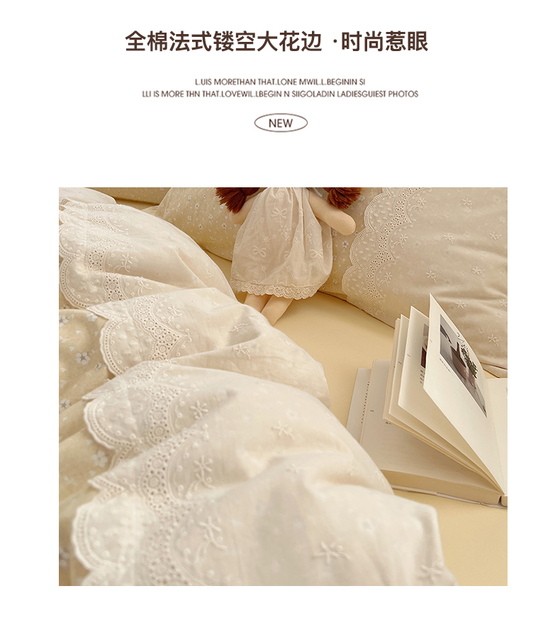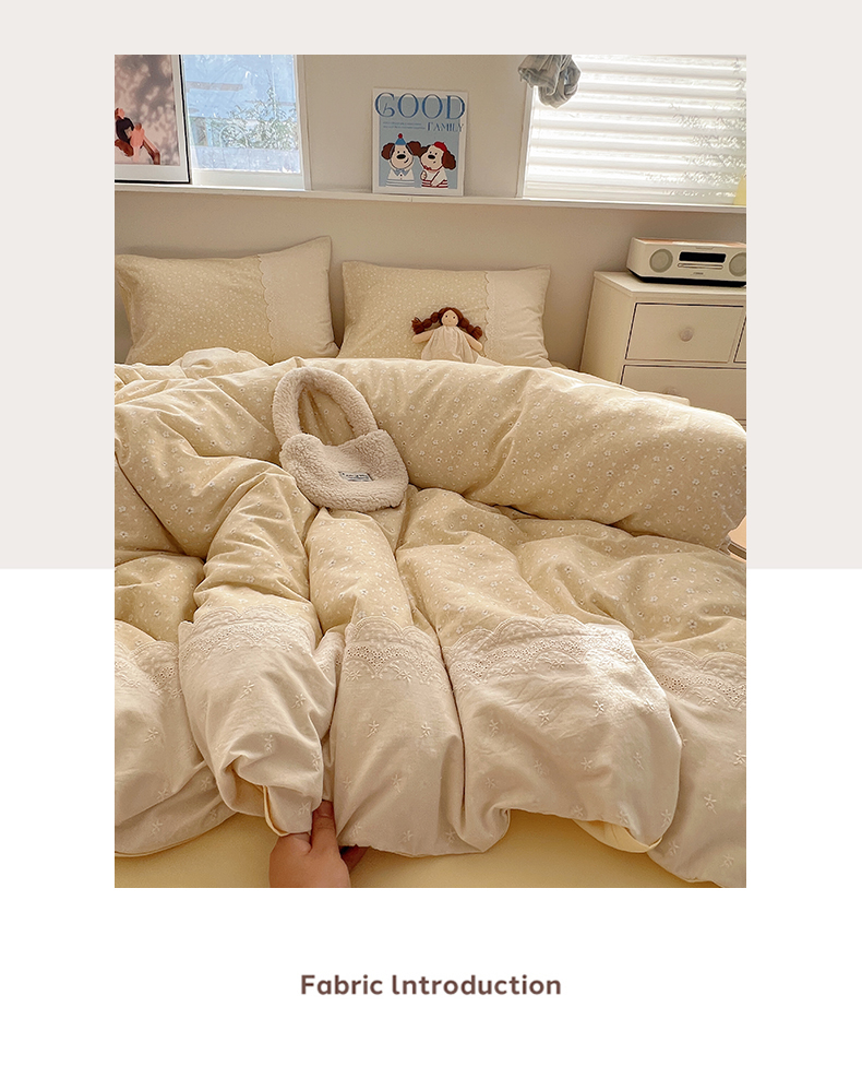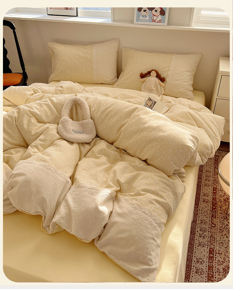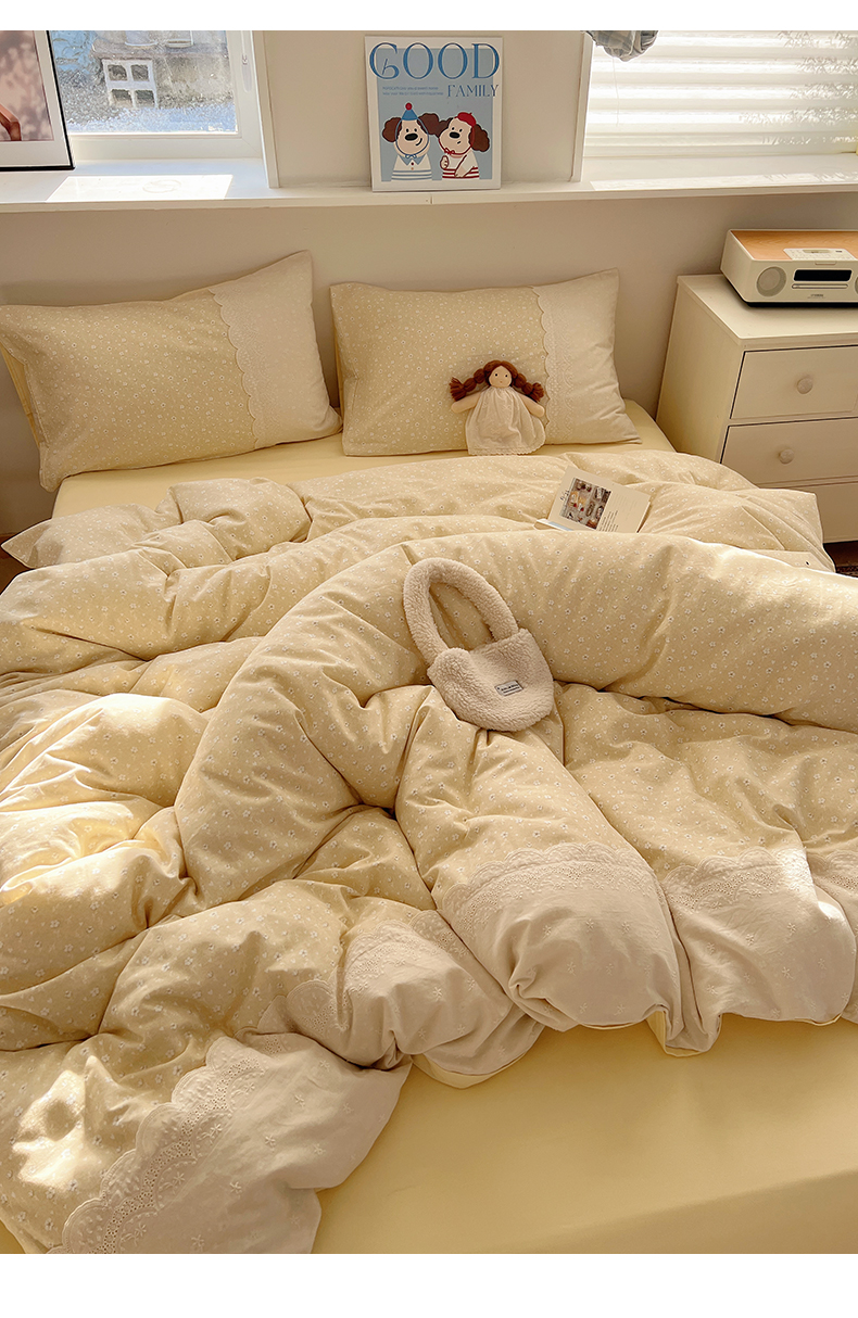 当前位置: 91家纺网 > 商品网购 > 床品套件 > 四件套 > 普通磨毛四件套 > XIWEN-希文家纺 2025新款全棉淑女花边数码印花磨毛四件套 花朵朵-黄