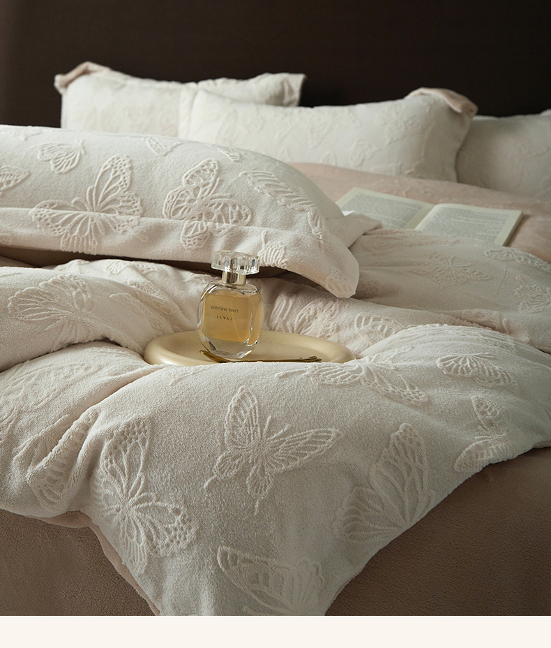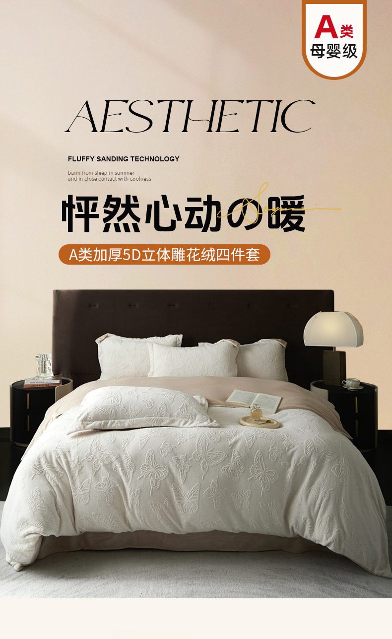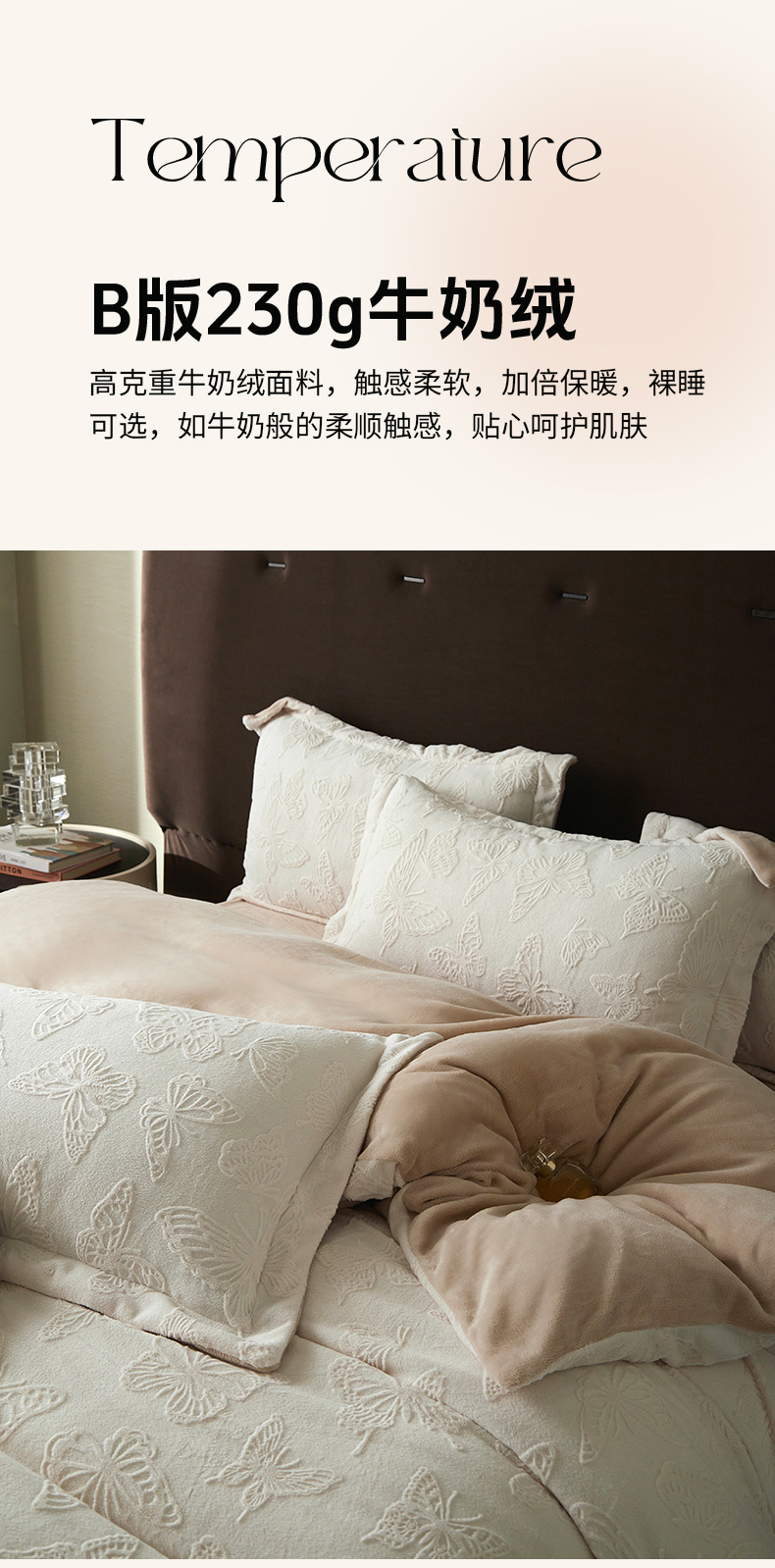 当前位置: 91家纺网 > 商品网购 > 床品套件 > 四件套 > 牛奶绒四件套 > 亿梵 2025秋冬新款A类全消光牛奶绒立体5D雕花绒四件套蝶舞轻裳-奶油白