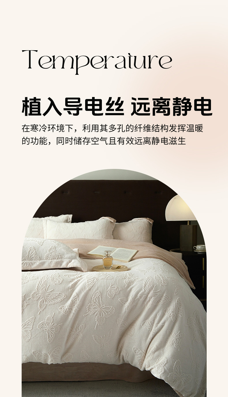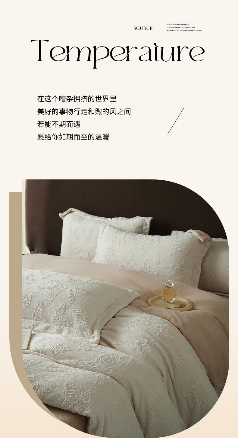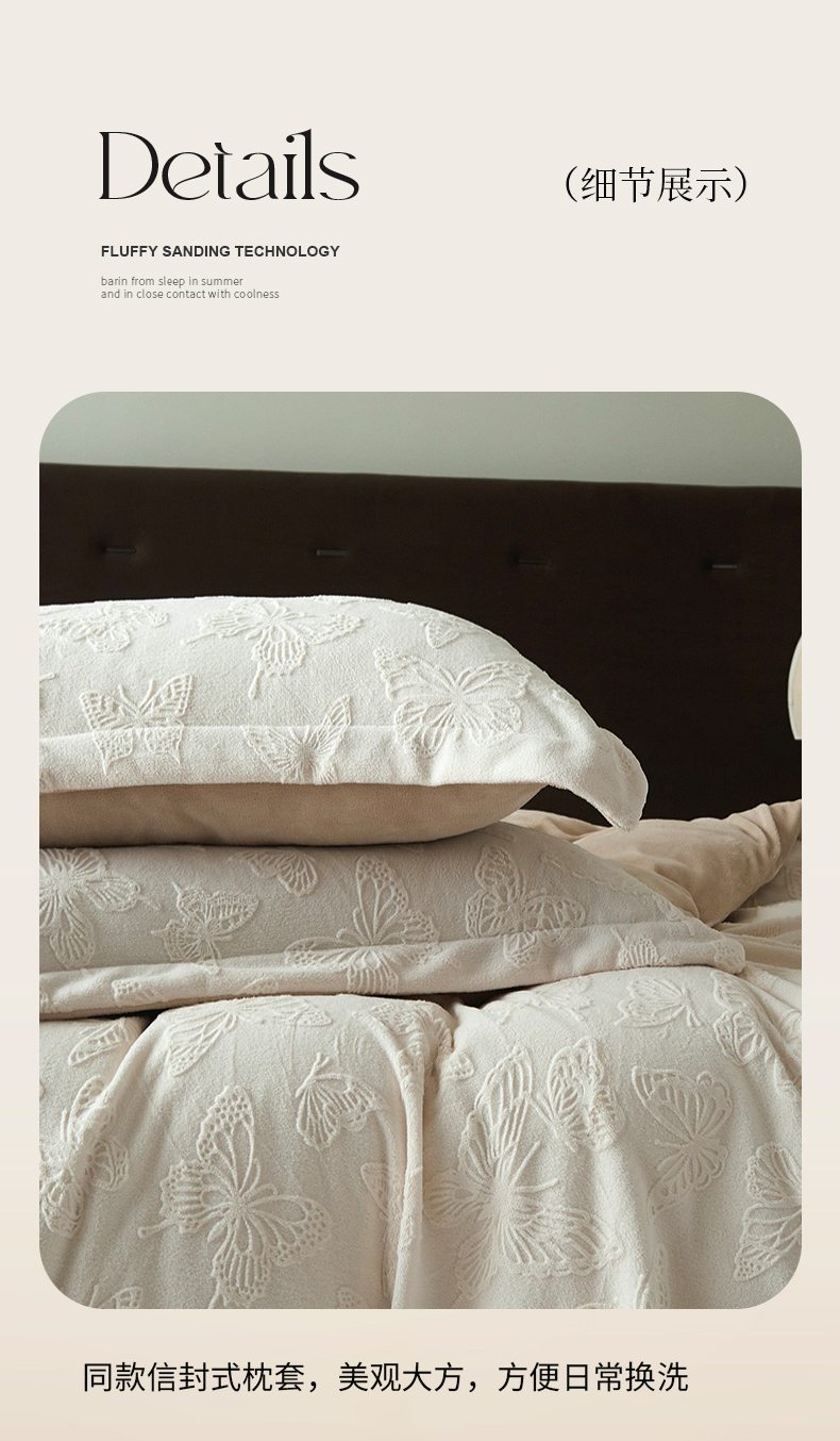 当前位置: 91家纺网 > 商品网购 > 床品套件 > 四件套 > 牛奶绒四件套 > 亿梵 2025秋冬新款A类全消光牛奶绒立体5D雕花绒四件套蝶舞轻裳-奶油白