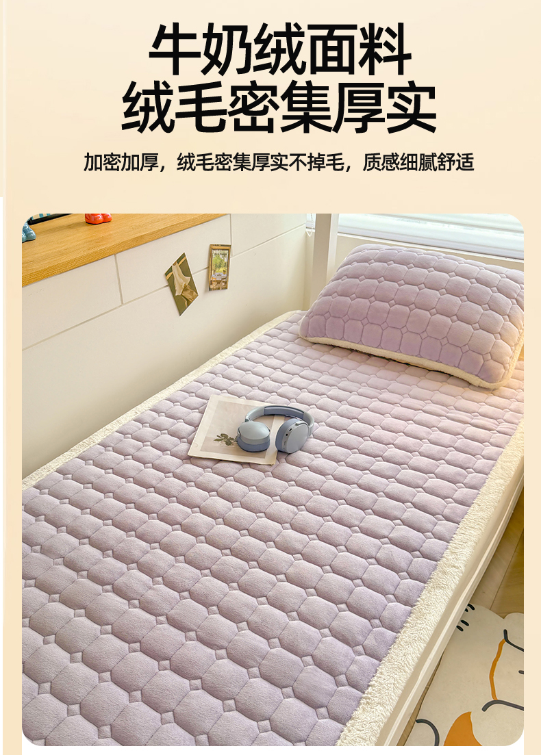 当前位置: 91家纺网 > 商品网购 > 床垫/床褥 > 雯豆家纺 【加厚款】2025新款牛奶绒床褥纯色学生宿舍床垫子 牛奶绒床褥-雪青【加厚款】