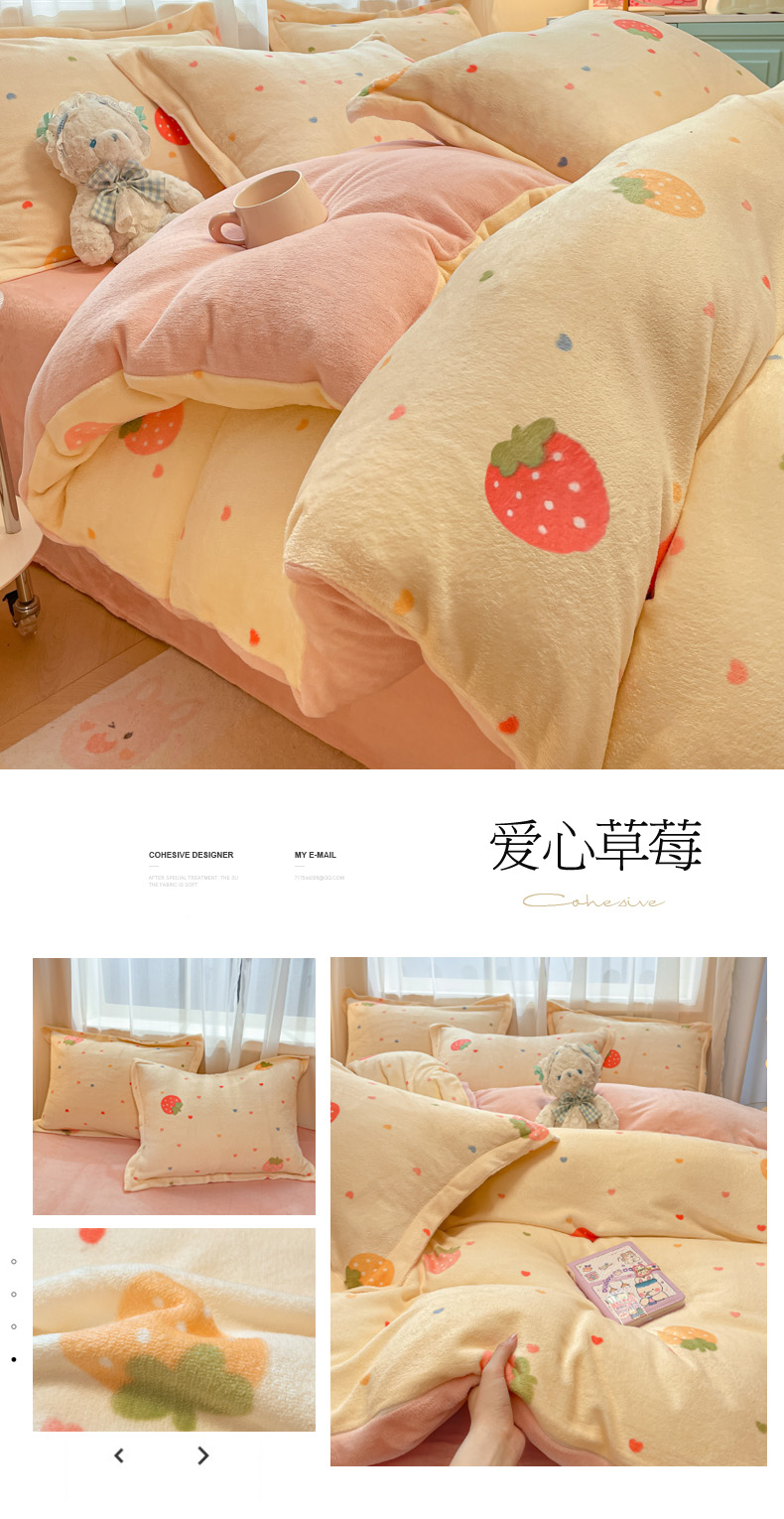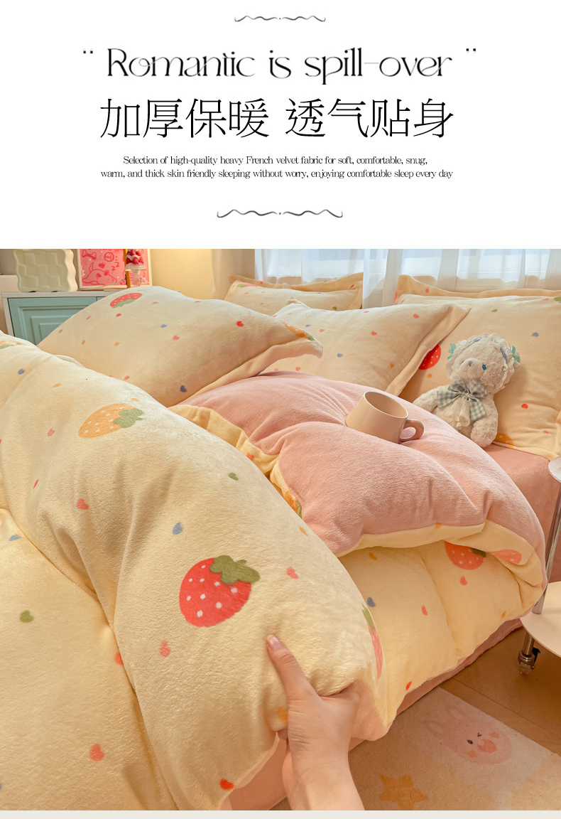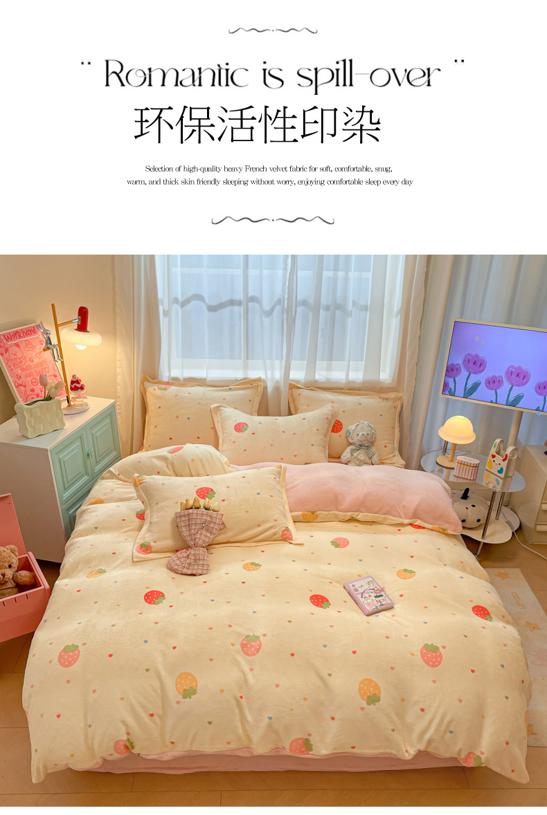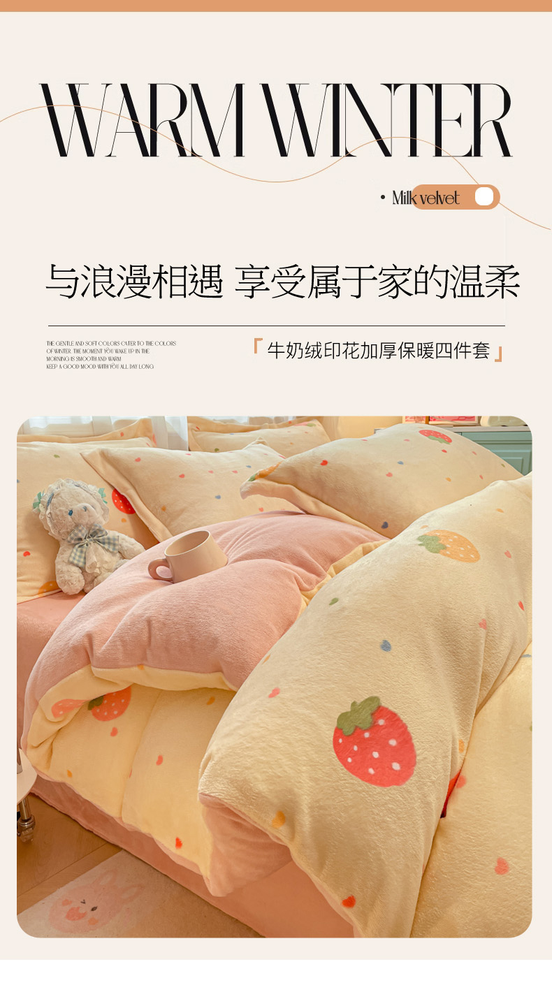 当前位置: 91家纺网 > 商品网购 > 床品套件 > 四件套 > 牛奶绒四件套 > 柒月家居 2025新款高克重牛奶绒印花加厚保暖四件套 爱心草莓