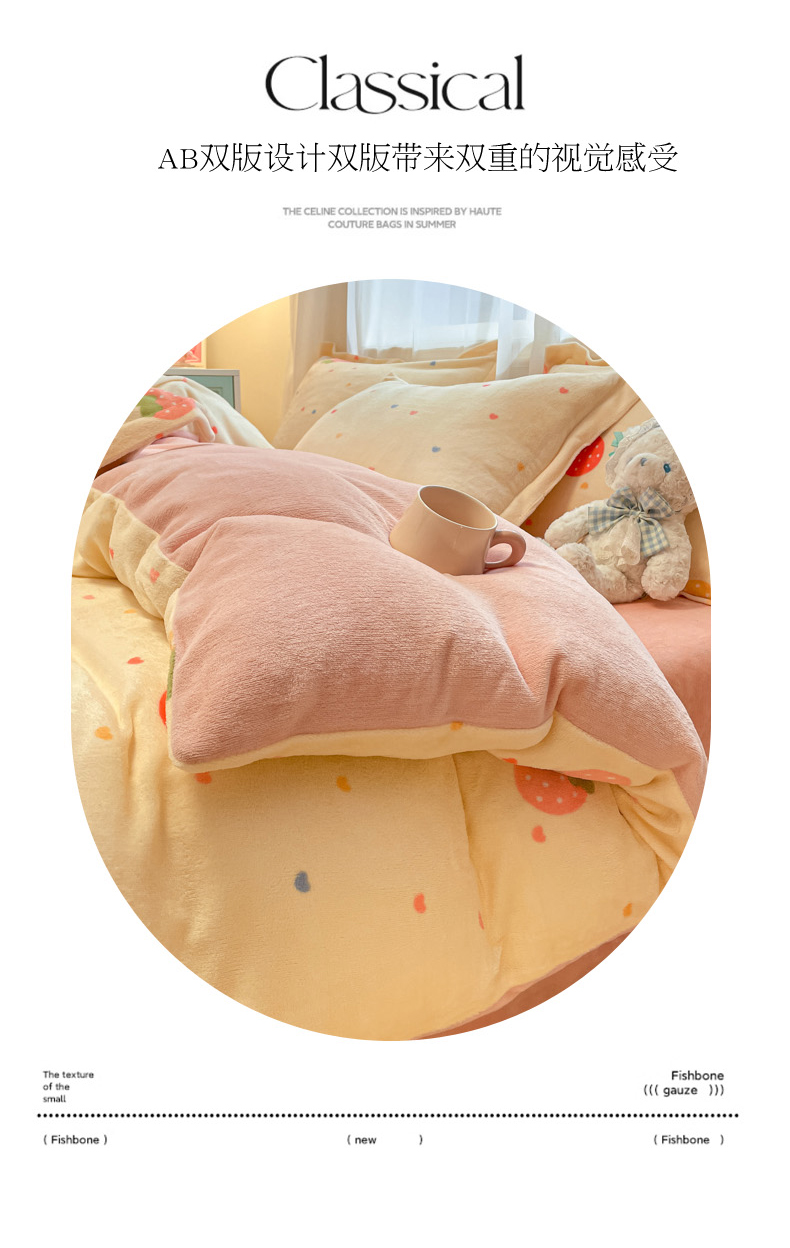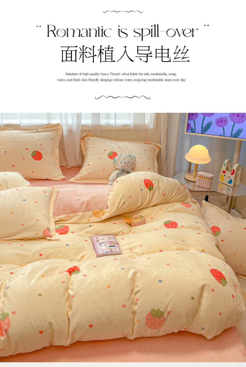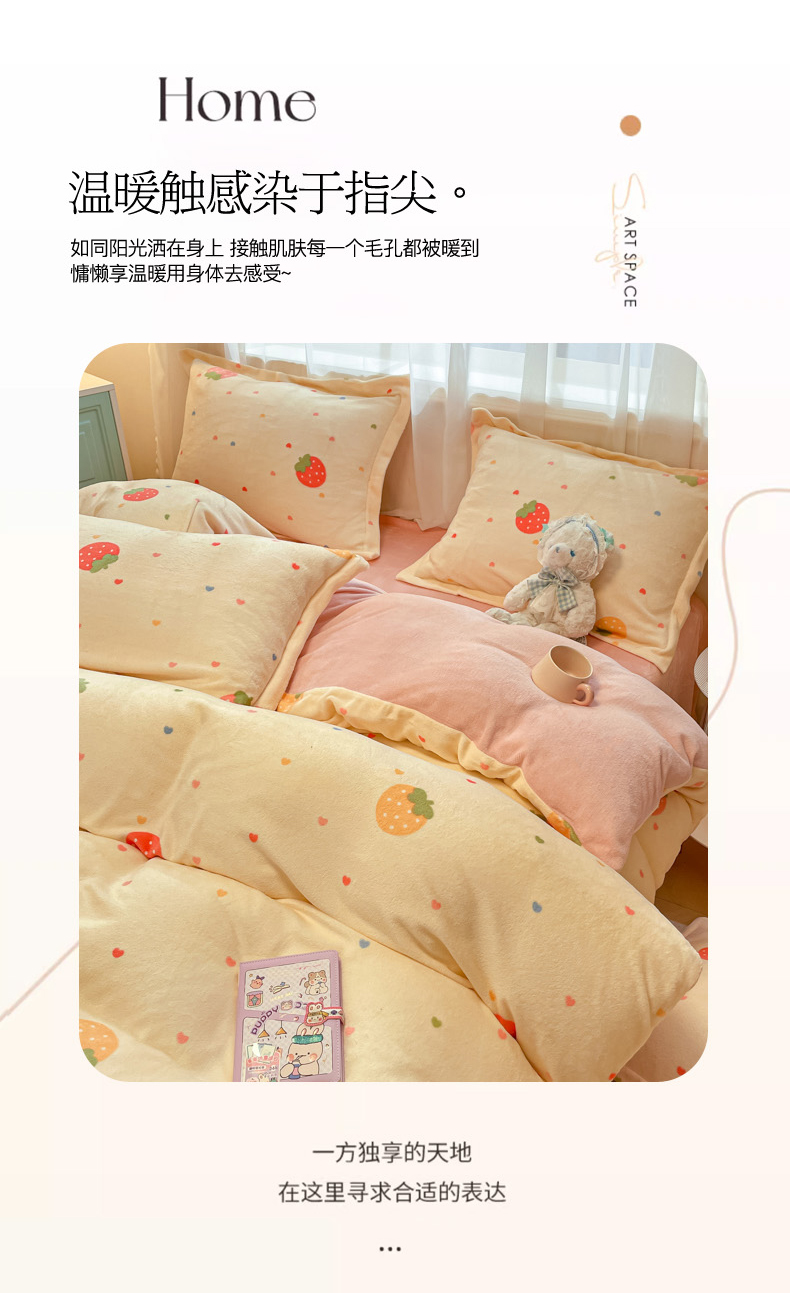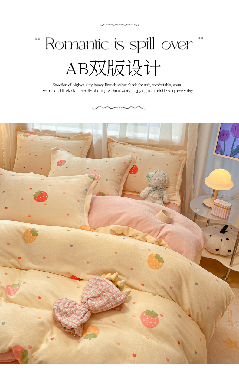 当前位置: 91家纺网 > 商品网购 > 床品套件 > 四件套 > 牛奶绒四件套 > 柒月家居 2025新款高克重牛奶绒印花加厚保暖四件套 爱心草莓