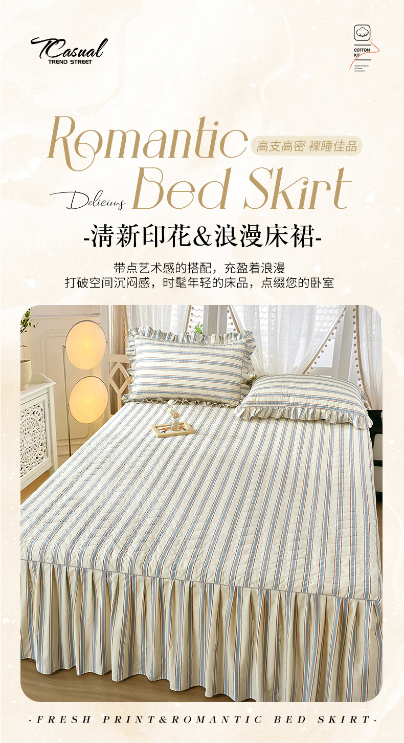 (总)益利多 2025新款全棉碎花纯棉卡通夹棉床裙单床裙三件套,薄荷微风,初野,欢乐派,简逸,橘络,清风佳人,繁花似锦