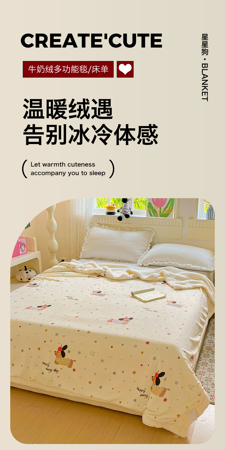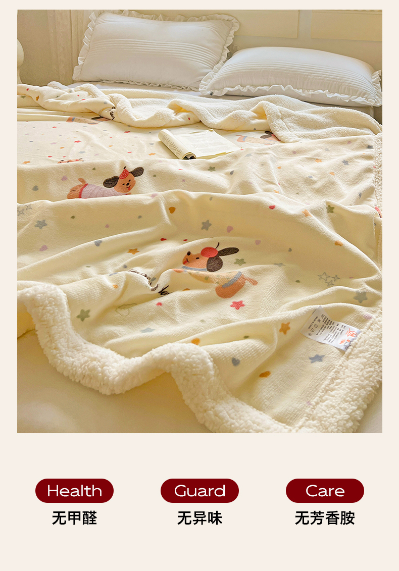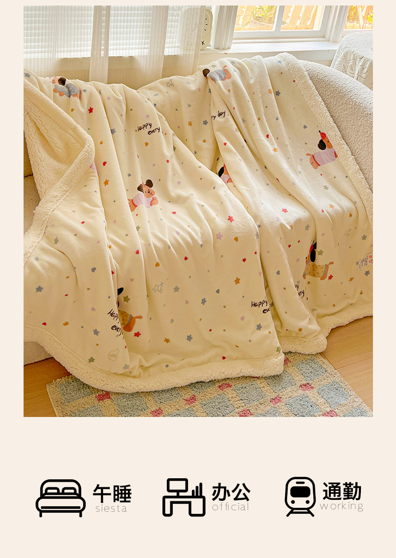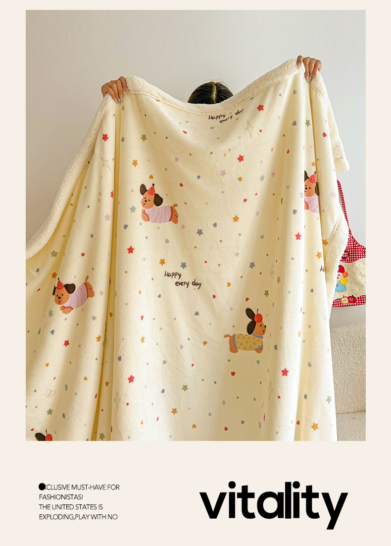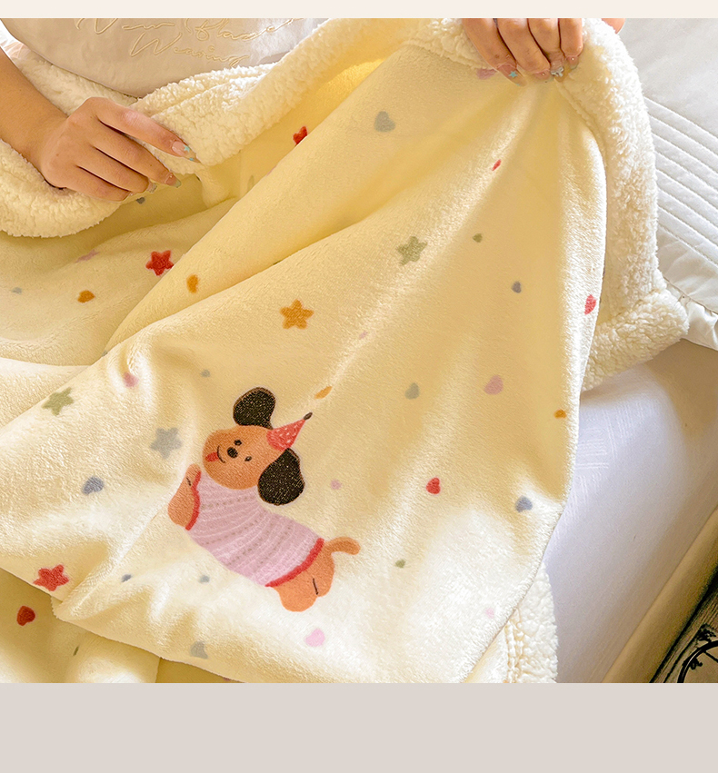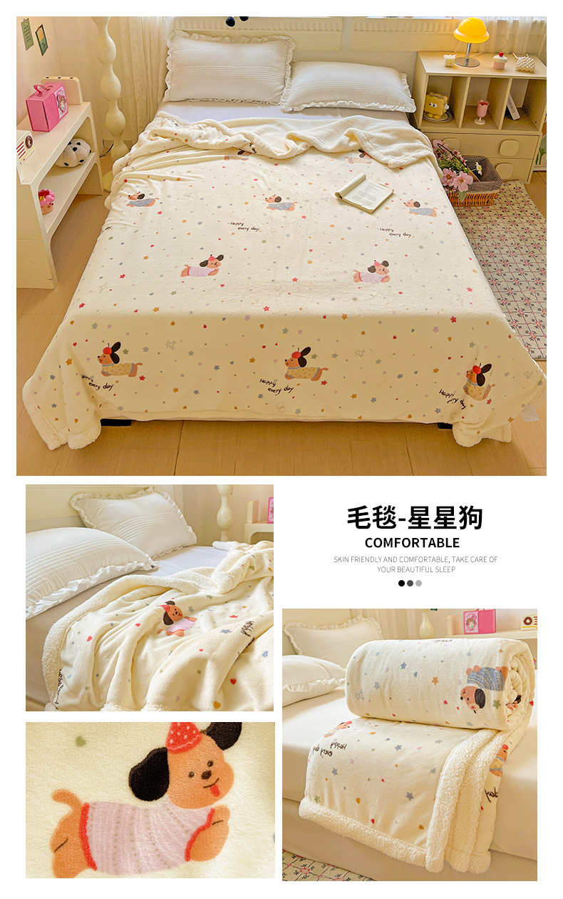 商品名称:名兮 2025新款秋冬高克重牛奶绒羊羔绒多功能盖毯 毛毯-星星狗