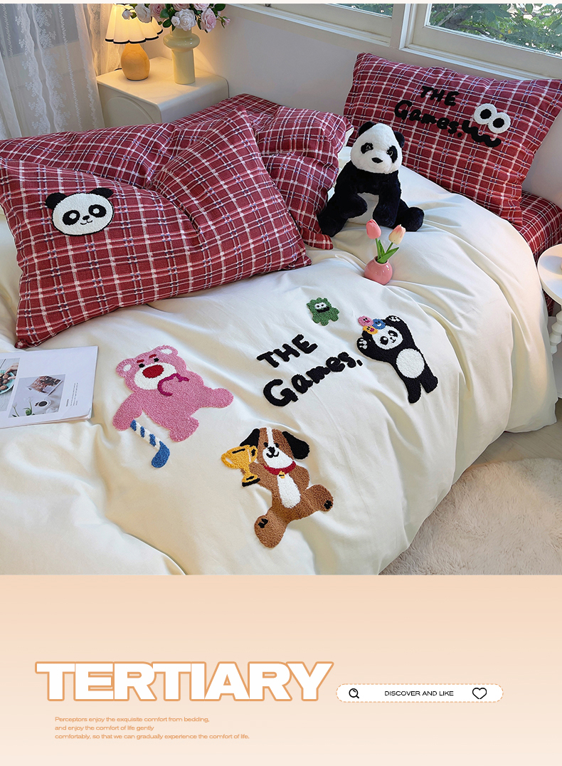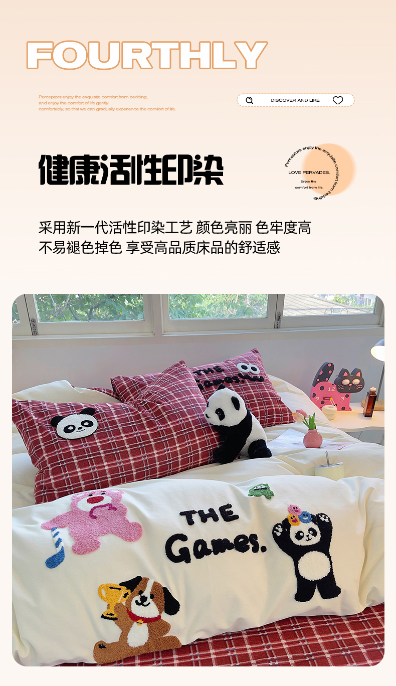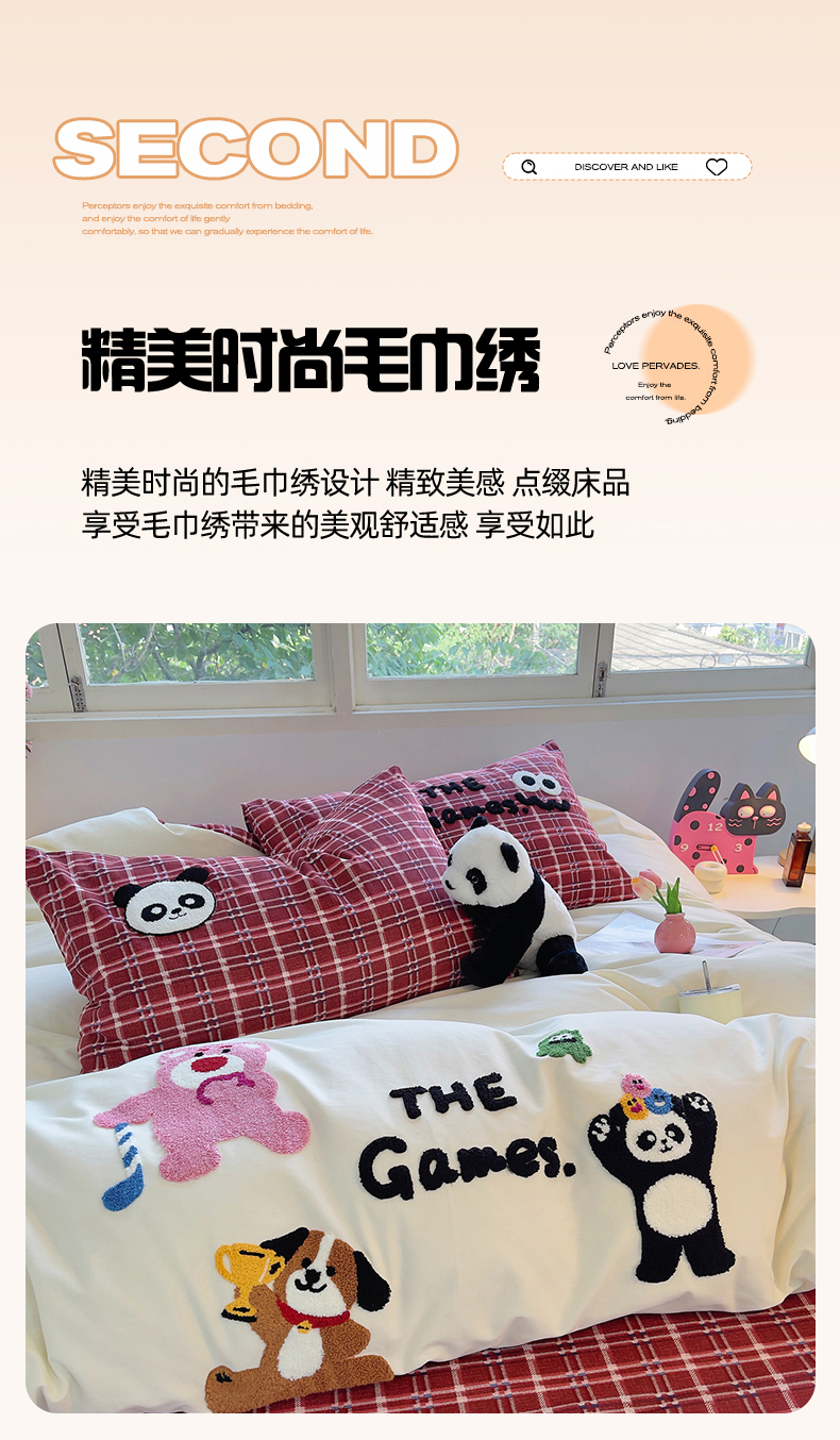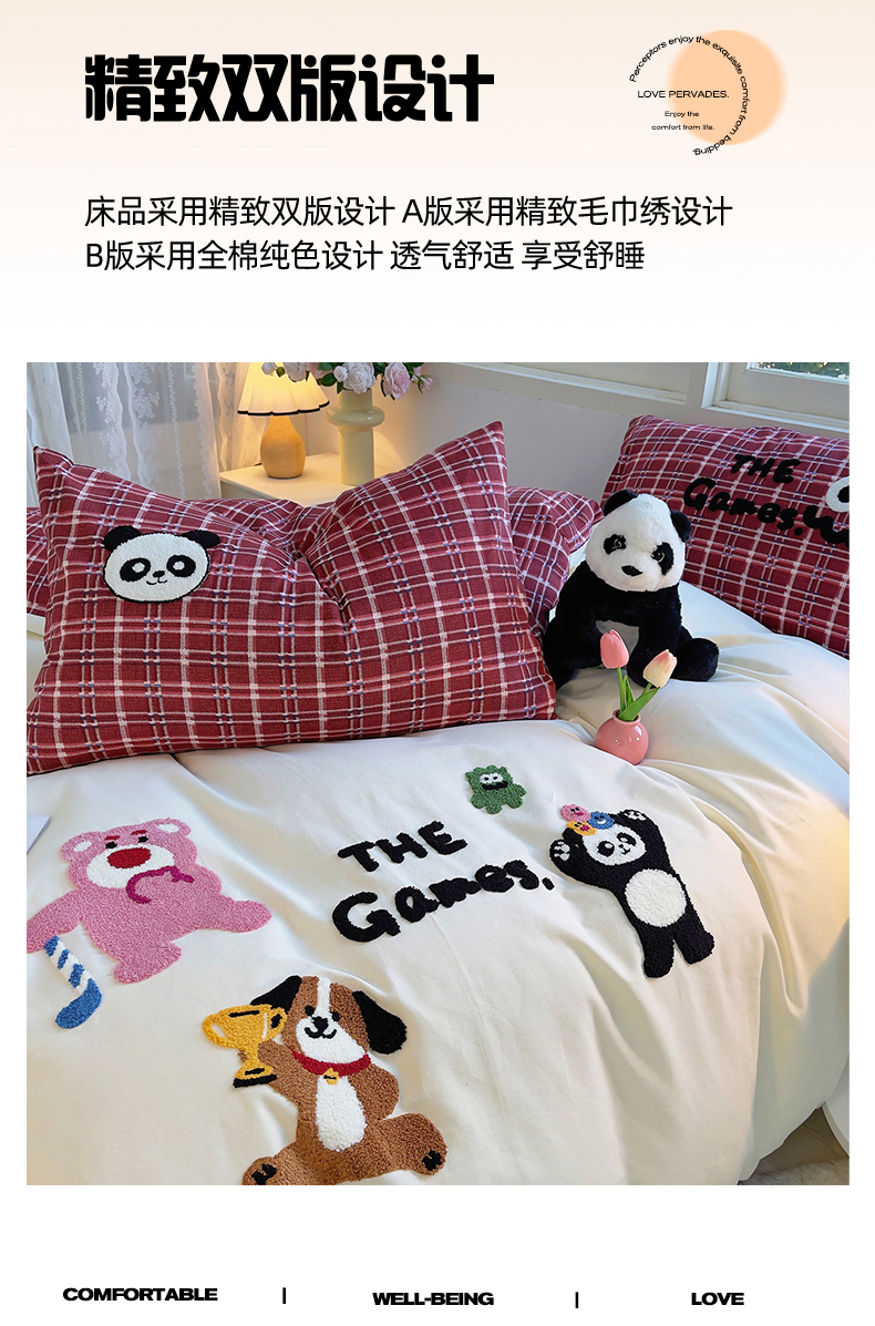 (总)炫拼家纺 2025新款全棉磨毛卡通贴布绣加厚毛巾绣纯棉四件套-曲奇系列,曲奇-苹果狗,曲奇-Good卡皮,曲奇-波点猫,曲奇-好朋友,曲奇-红军熊猫,曲奇-举高高,曲奇-晚安猫