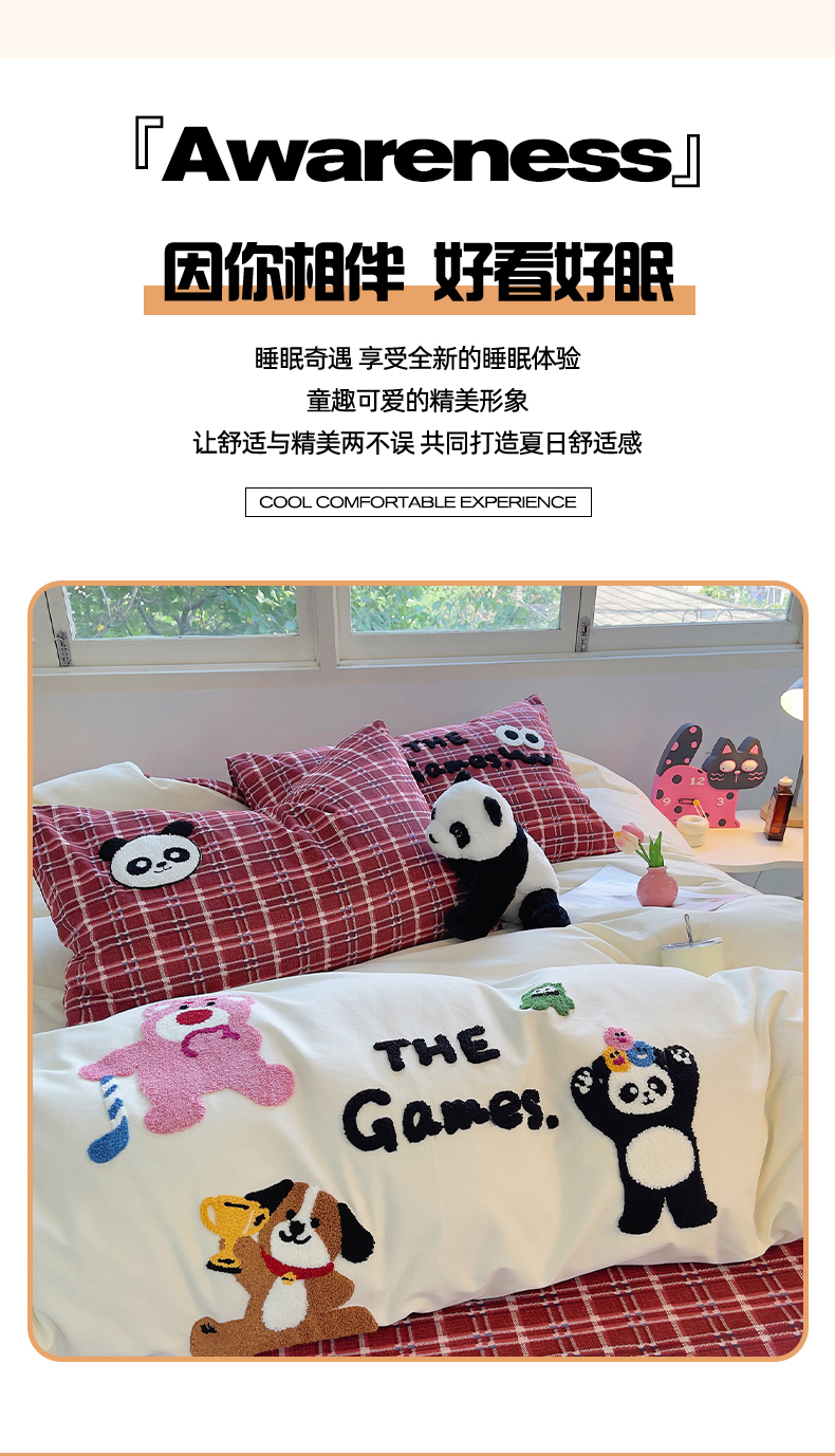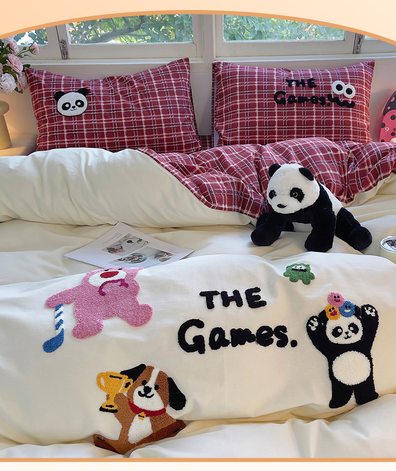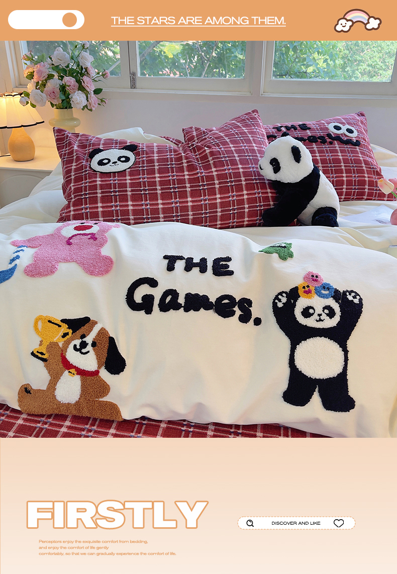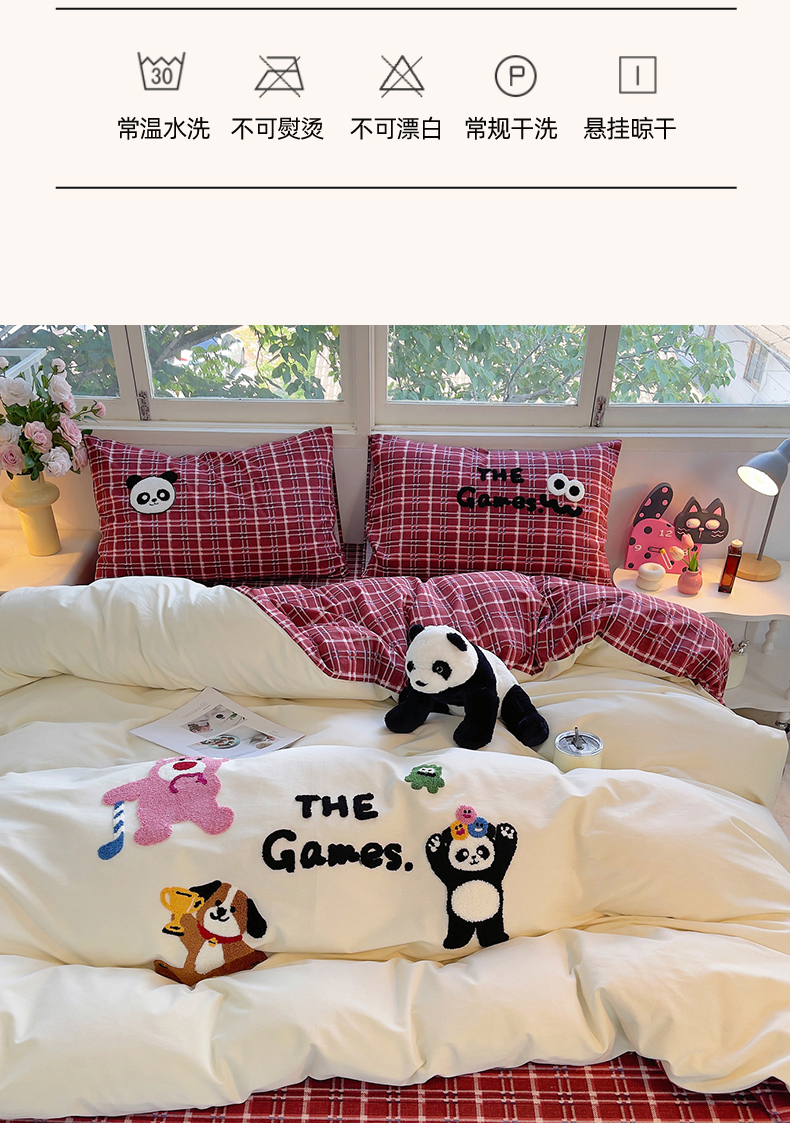 (总)炫拼家纺 2025新款全棉磨毛卡通贴布绣加厚毛巾绣纯棉四件套-曲奇系列,曲奇-苹果狗,曲奇-Good卡皮,曲奇-波点猫,曲奇-好朋友,曲奇-红军熊猫,曲奇-举高高,曲奇-晚安猫