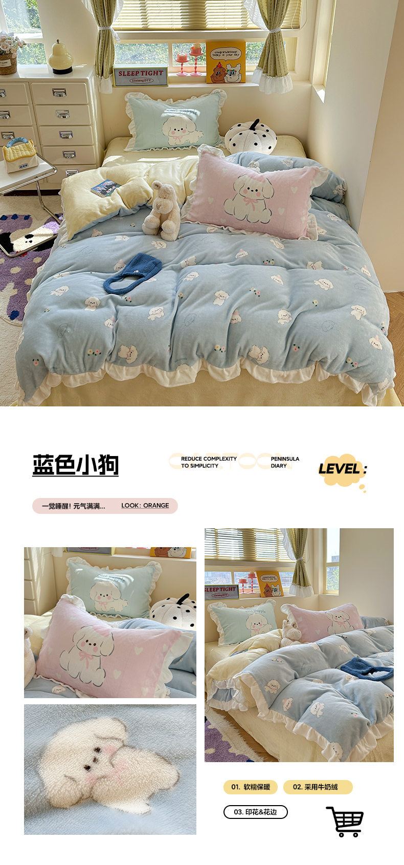 当前位置: 91家纺网 > 商品网购 > 床品套件 > 四件套 > 牛奶绒四件套 > 美乐迪家纺 2025新款加厚牛奶绒花边四件套 黄油小狗