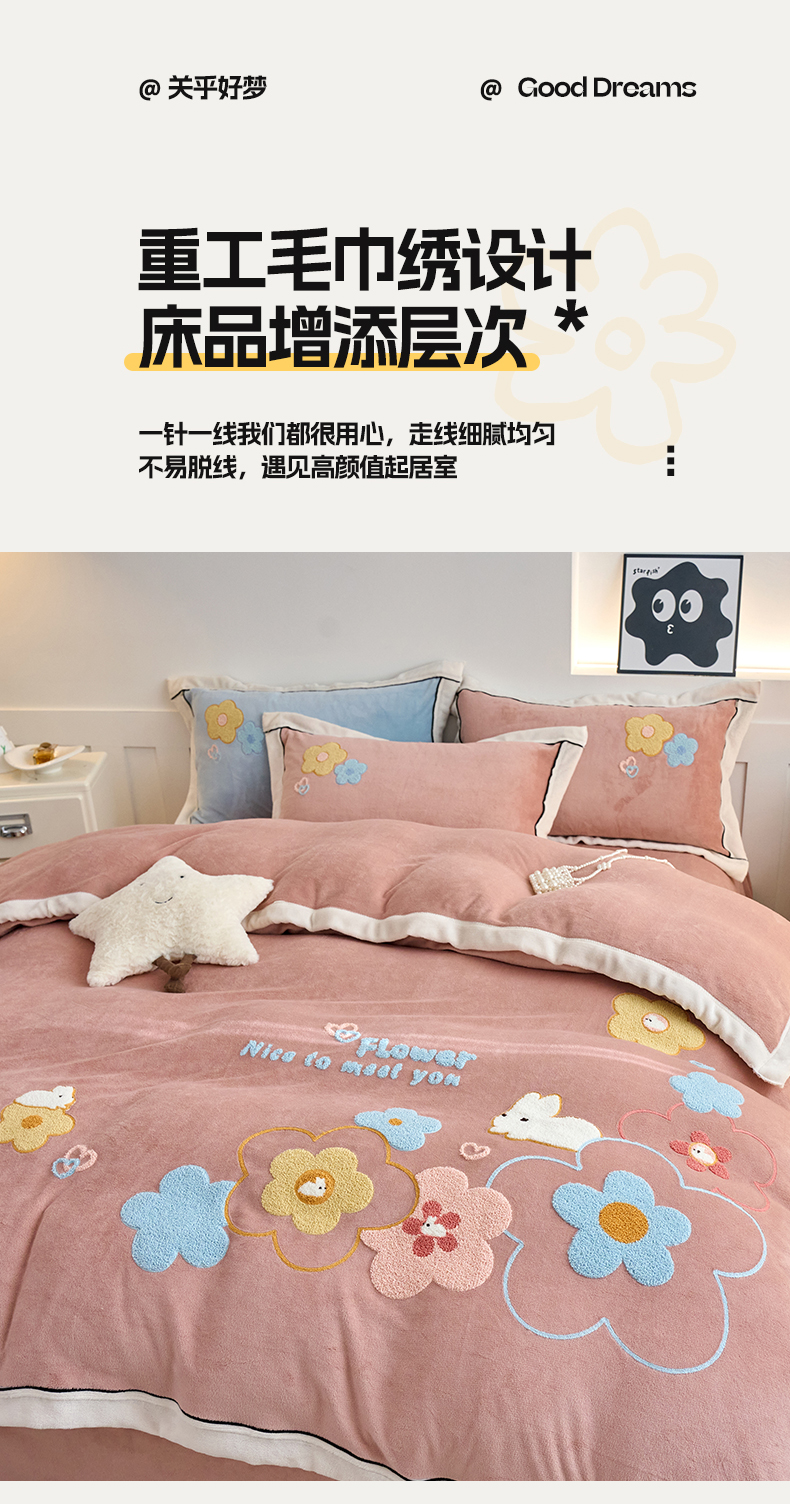 当前位置: 91家纺网 > 商品网购 > 床品套件 > 四件套 > 牛奶绒四件套 > 兰紫橙家纺 2025新款亲肤舒适毛巾绣牛奶绒四件套 桃花朵朵开-星柚粉