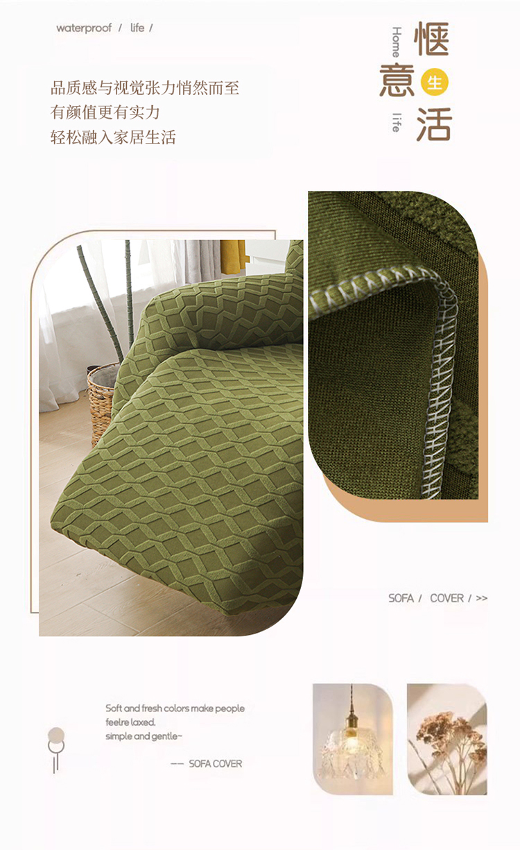 (总)千彤沙发垫 2022新款提花自由生活系列弹力沙发套,豆绿,米黄,深灰,水蓝,银灰,紫色