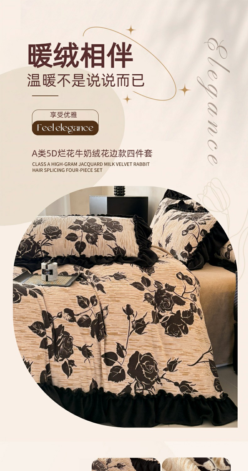 商品名称:(总)米莱家纺 2025新款牛奶绒烂花法式花边四件套