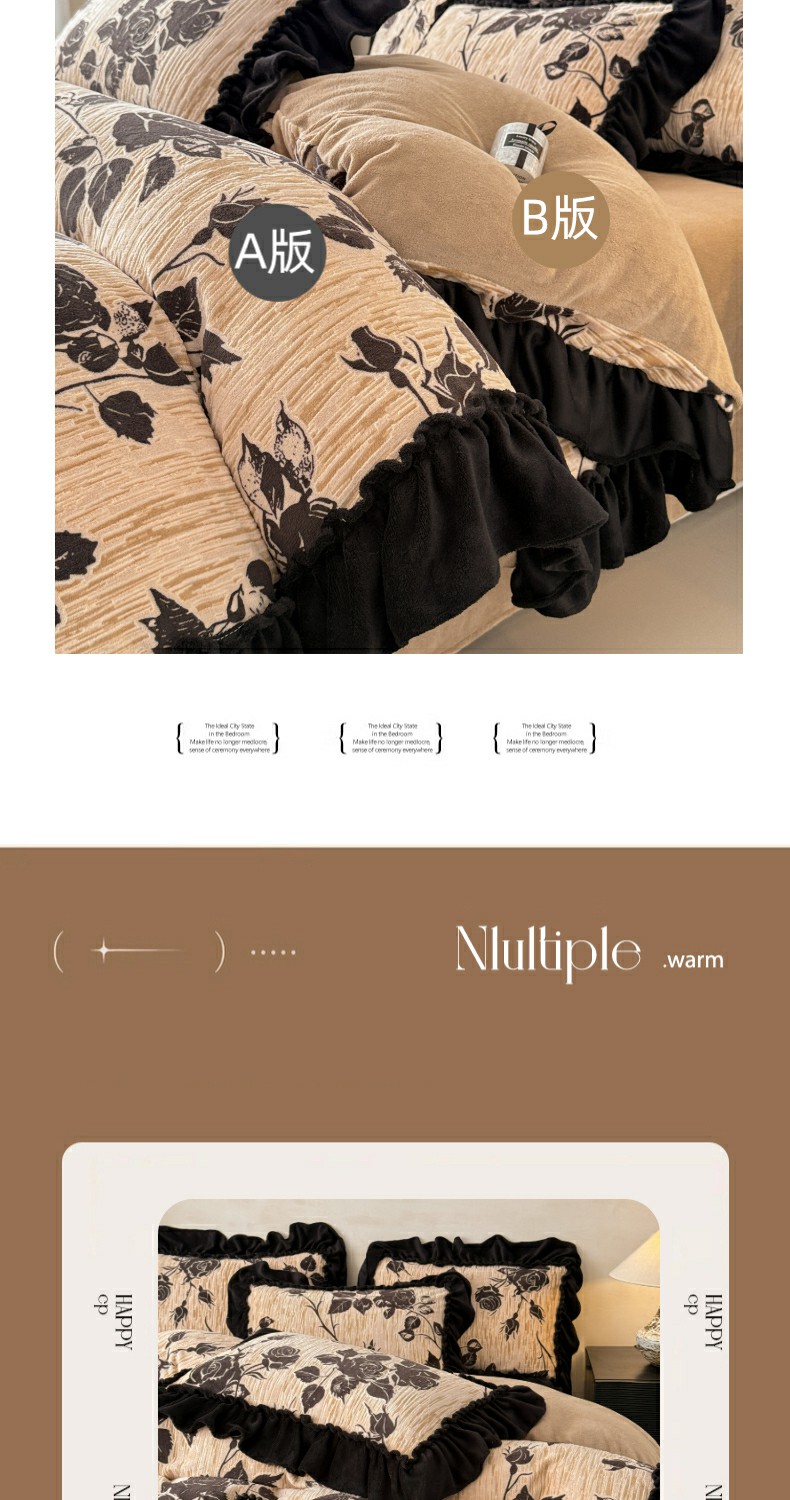 (总)米莱家纺 2025新款牛奶绒烂花法式花边四件套