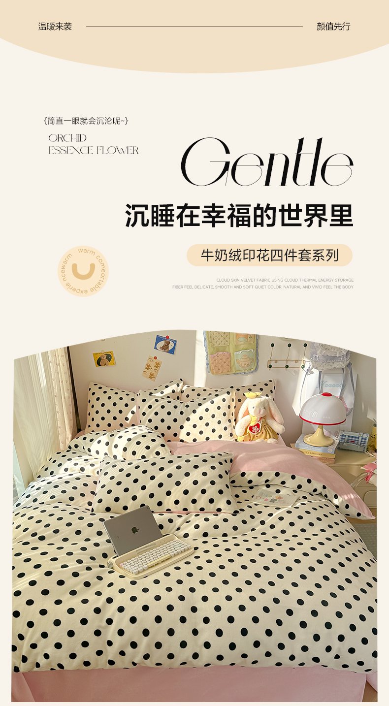 韩巢家纺 2025新款高克重印花牛奶绒床品四件套 田园小花,田园小花