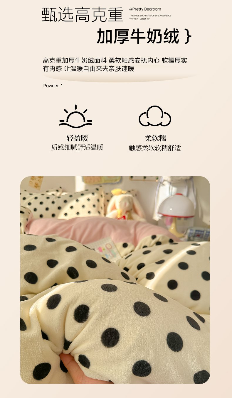 商品名称:韩巢家纺 2025新款双面高克重牛奶绒被套单件被罩 米珍珠