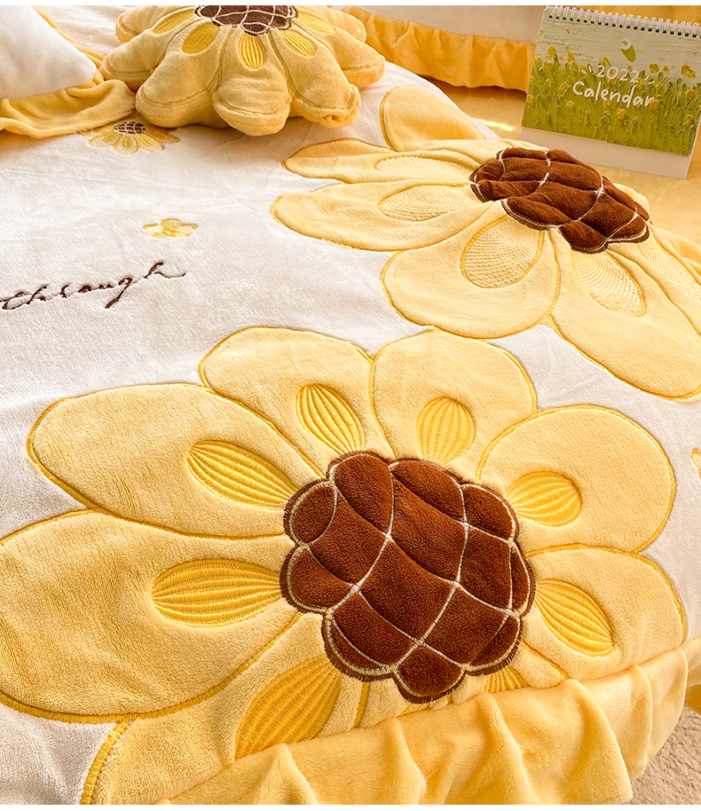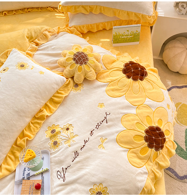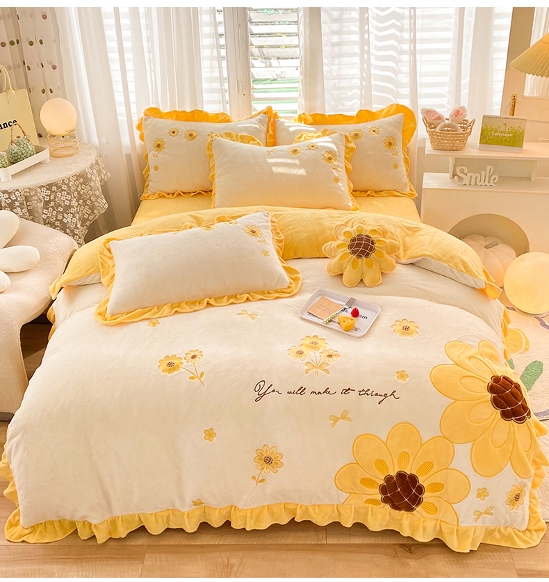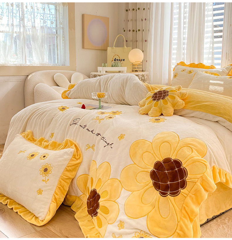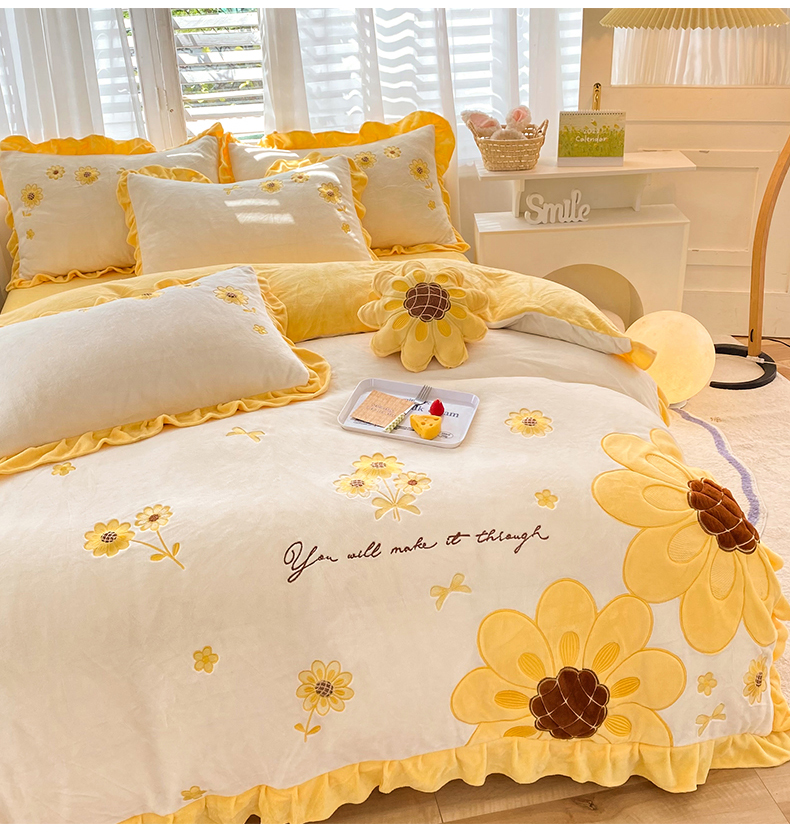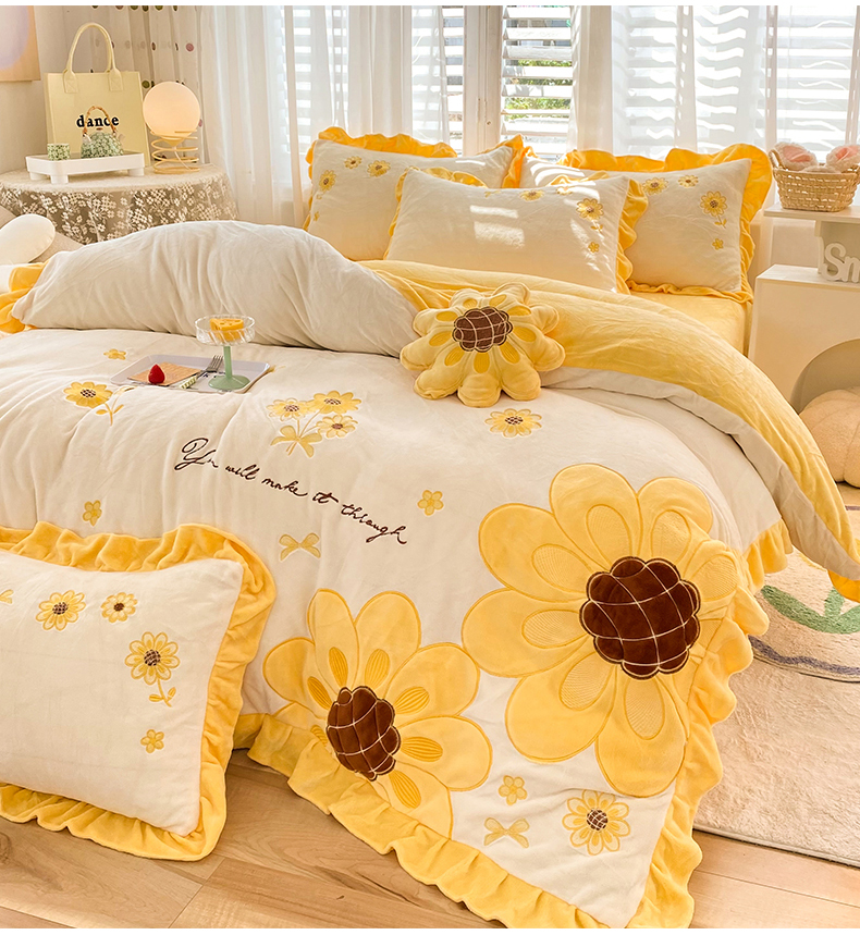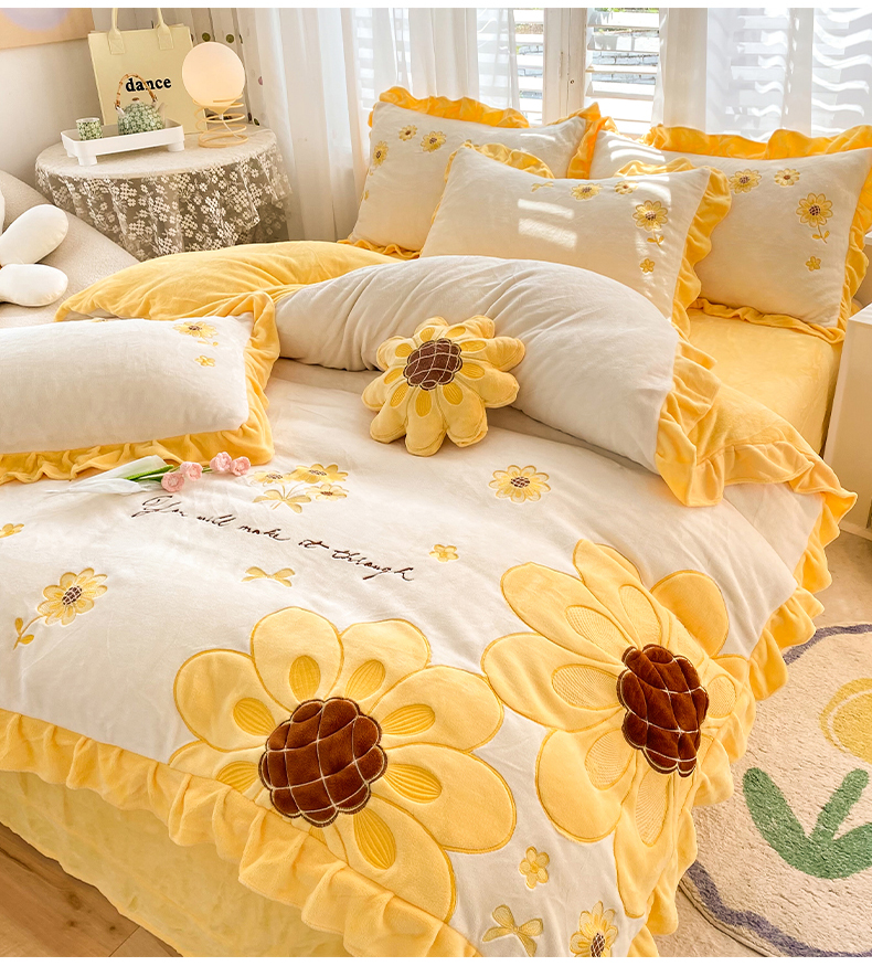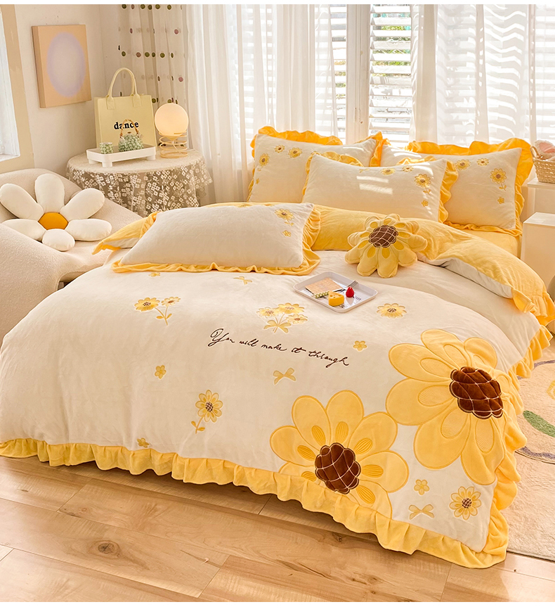 当前位置: 91家纺网 > 商品网购 > 床品套件 > 四件套 > 牛奶绒四件套 > (总)绒棉世家 2025新款新款全消光牛奶绒贴布绣向日葵风格四件套(控价188元)