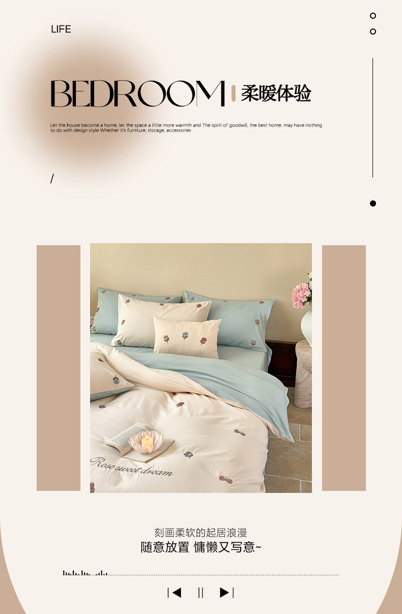 当前位置: 91家纺网 > 商品网购 > 床品套件 > 四件套 > 普通磨毛四件套 > (总)FORTWO家纺原创设计(FOR TWO家纺) 2025新款50支全棉磨毛绣花四件套-小清新