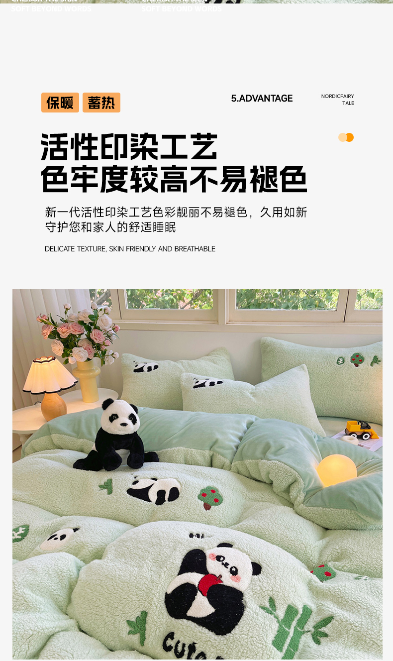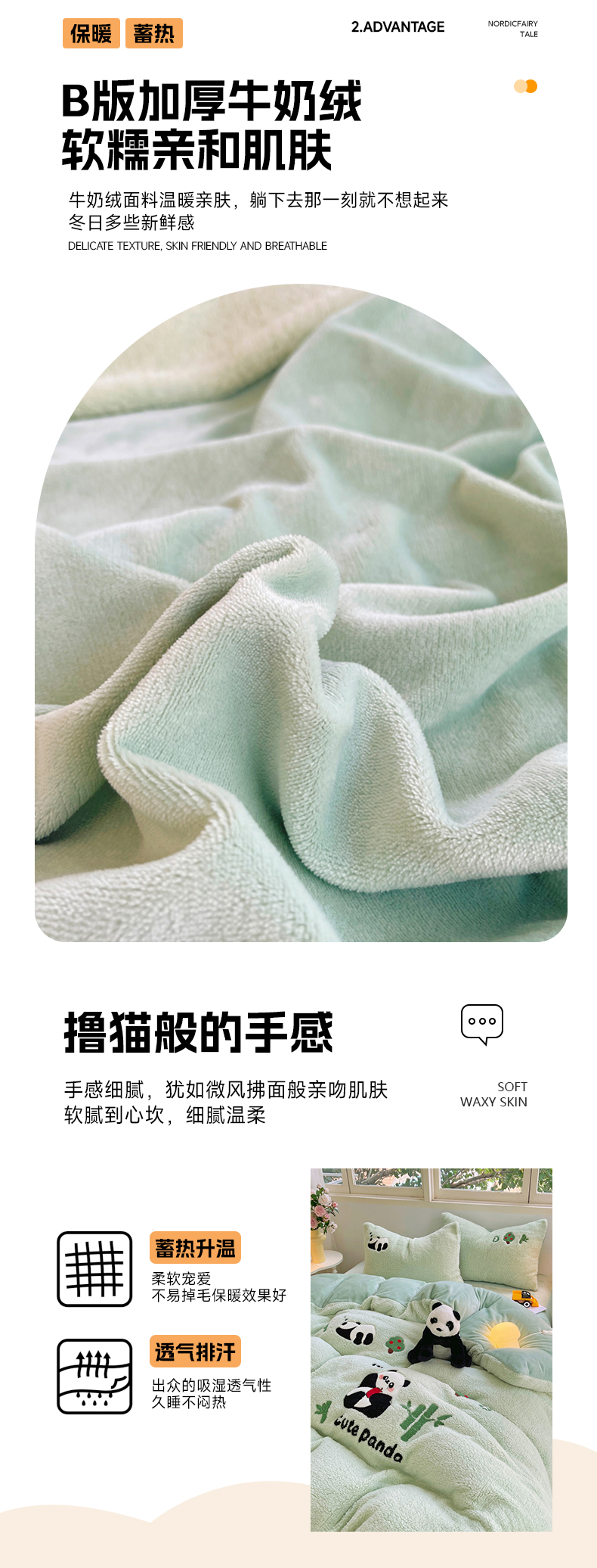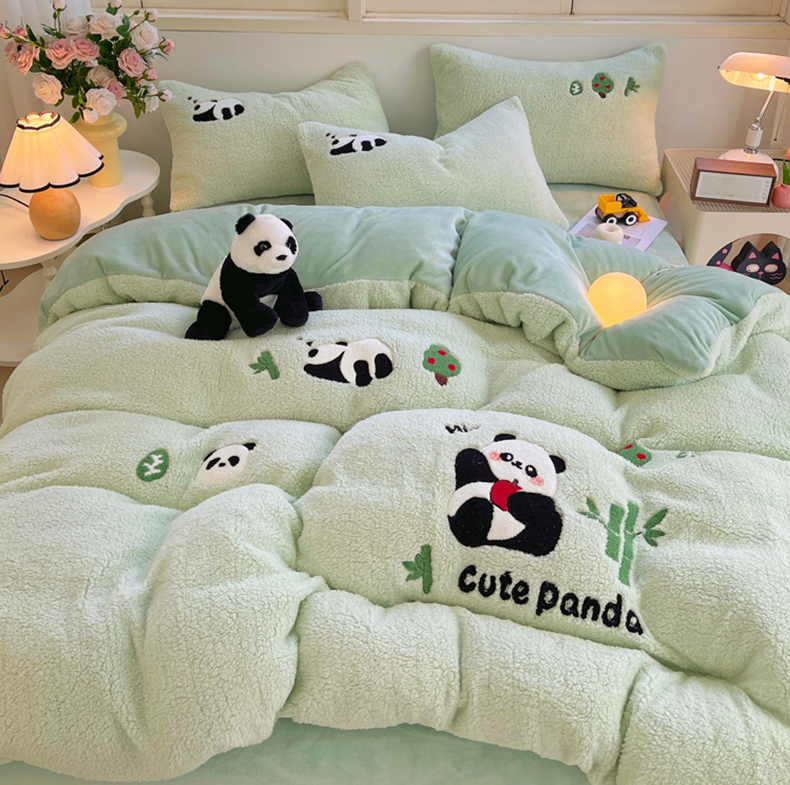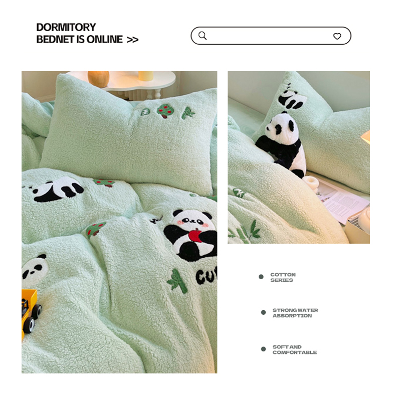 商品名称:牵依 2025新款羊羔绒牛奶绒毛巾绣四件套 熊猫乐园