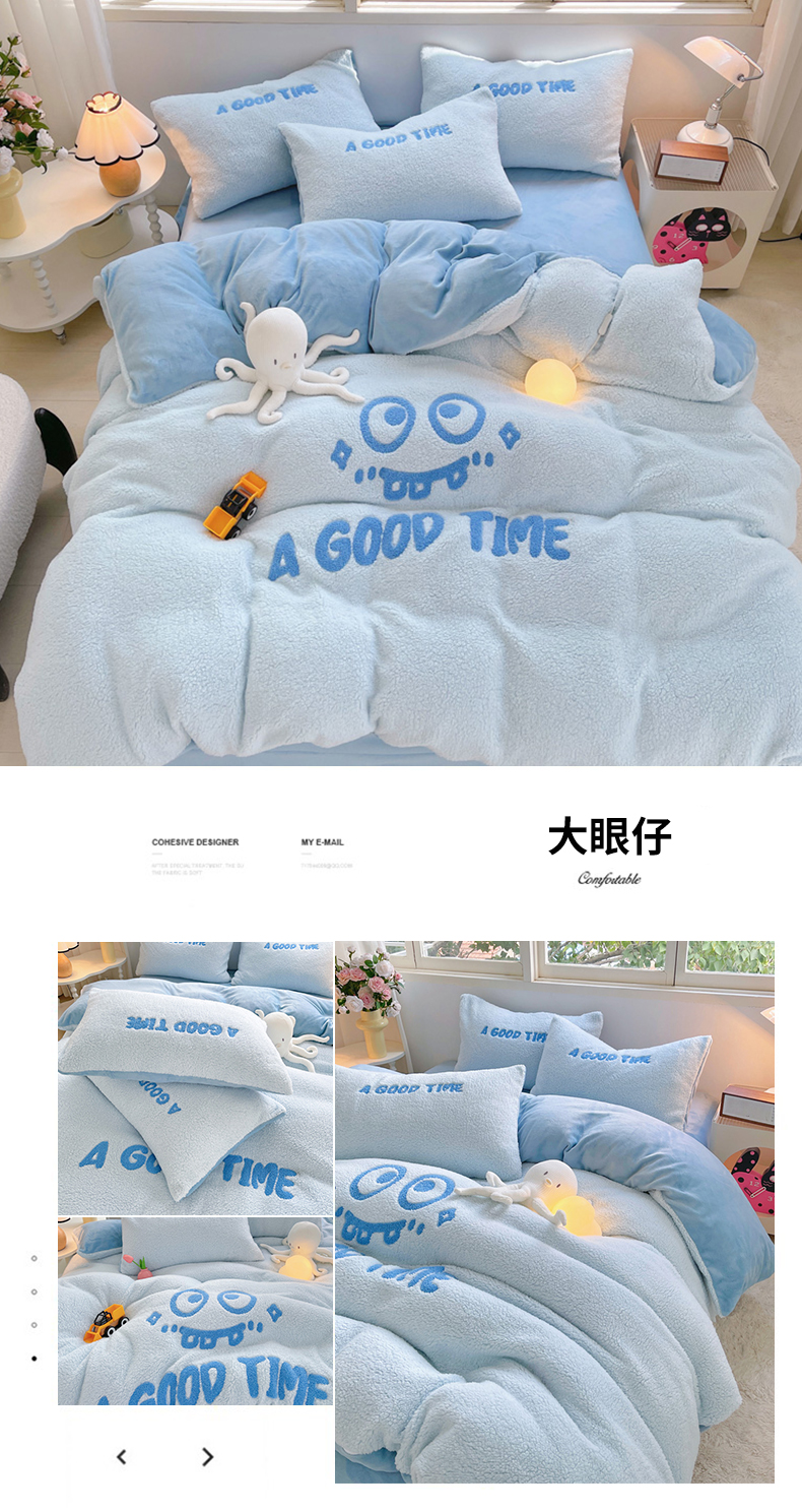 (总)牵依 2025新款高克重绣花牛奶绒四件套,可可熊-宾利蓝,足球小熊-奶油黄,苏姑娘-奶咖,足球小熊-果绿,苏姑娘-浅紫,可可熊-浅灰,可可熊-奶咖