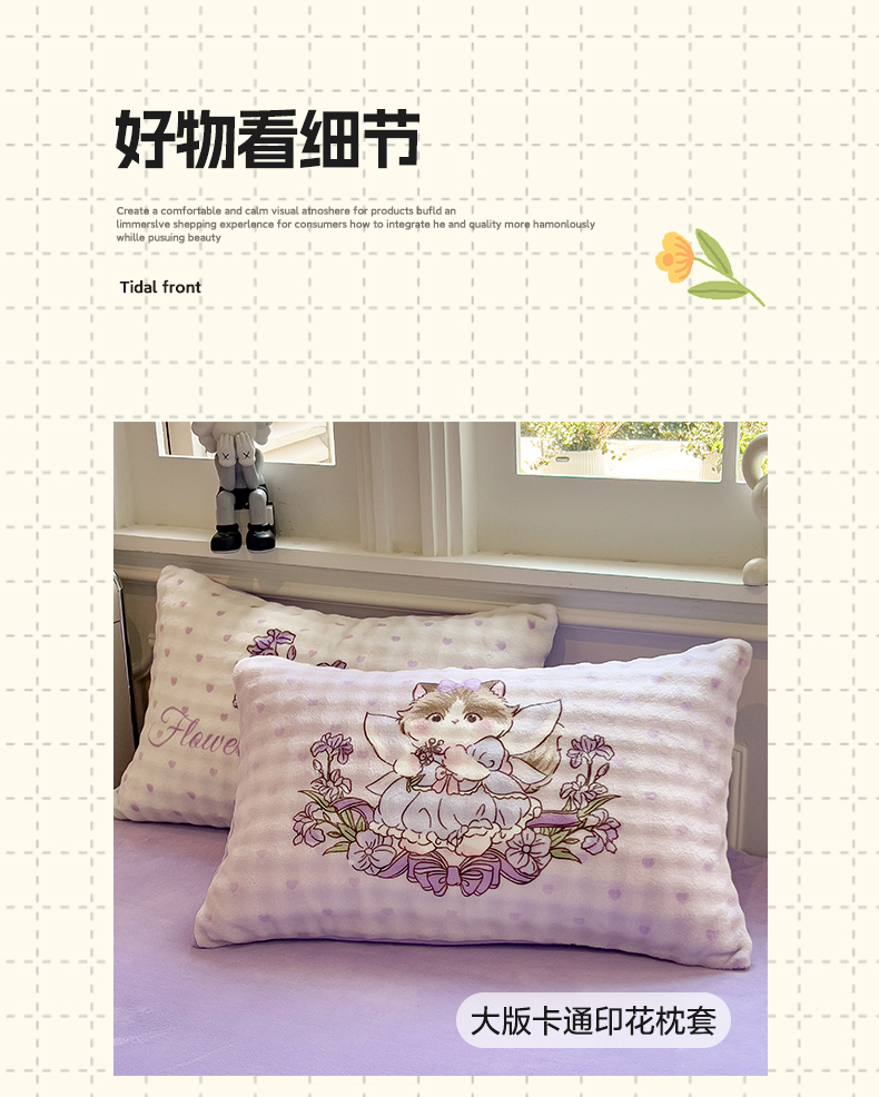(总)摩妮卡 2025新款牛奶绒枕套混搭卡通复古四件套,粉帽小狗,豹纹小猫,傍晚凯蒂猫,庆祝凯蒂猫,生日小猫,甜点凯蒂猫,线条腊肠狗,幸运小猫