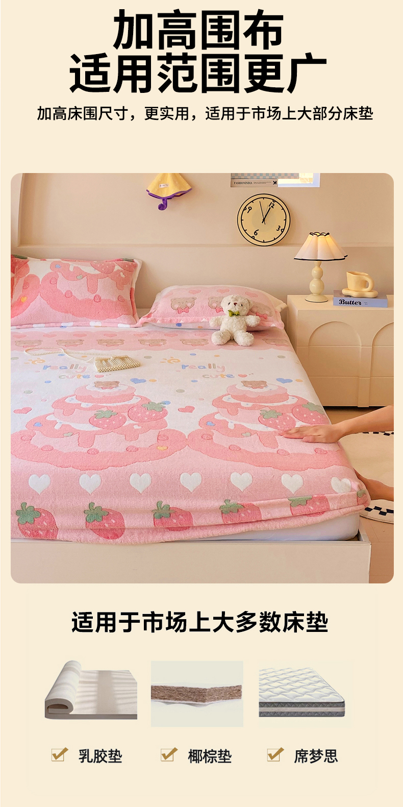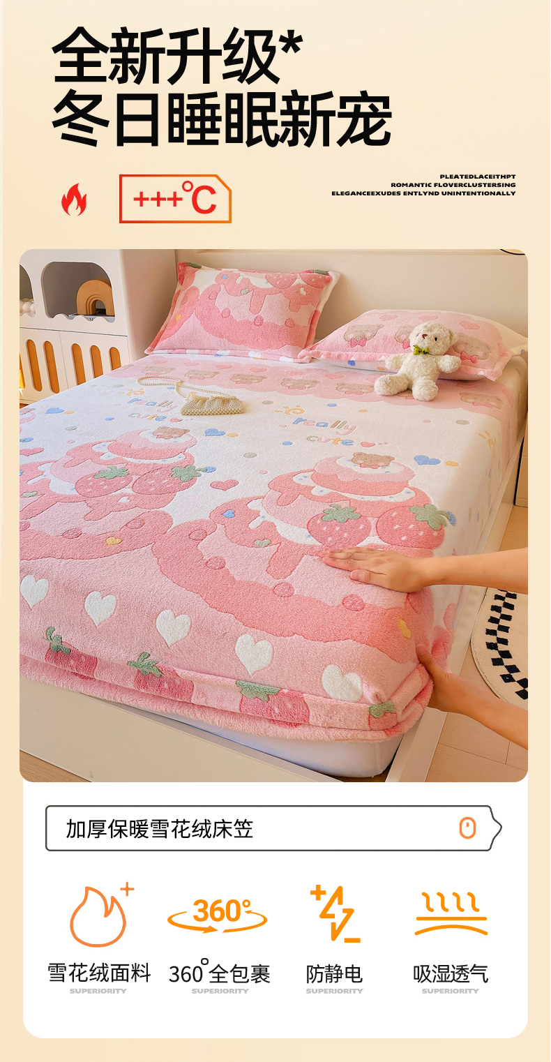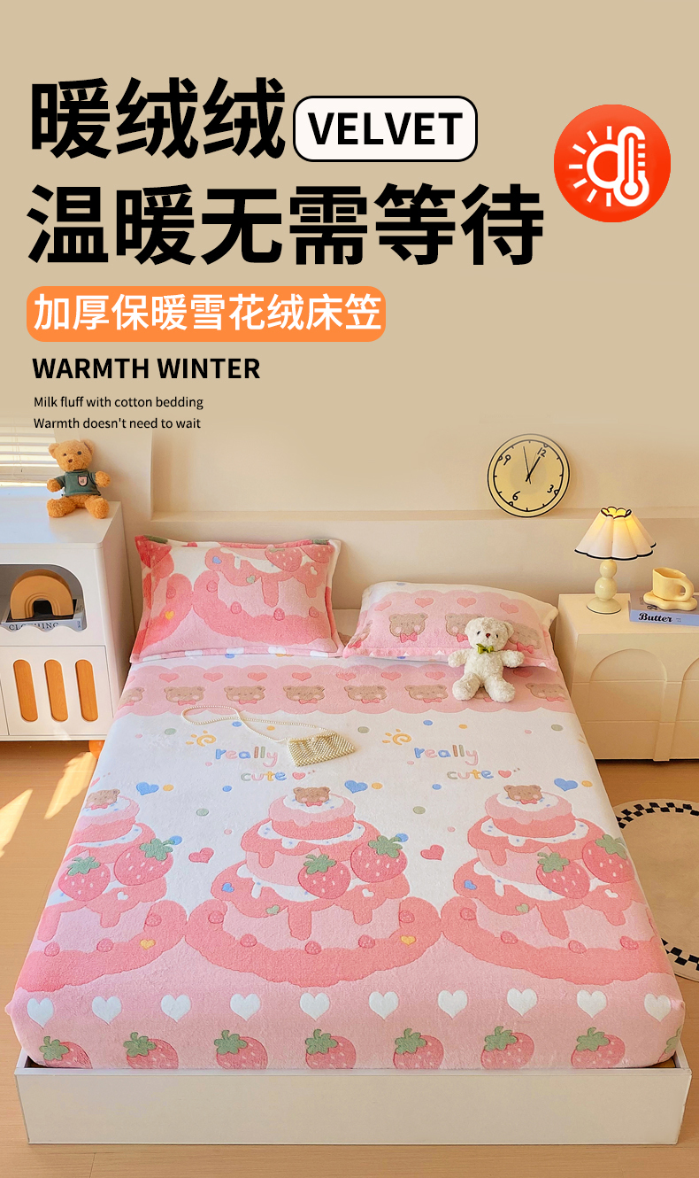 • 91家纺网 家纺一手货源 找家纺 梦尚舒 2025新款180克雪花绒床笠单品床笠床笠单件 草莓蛋糕