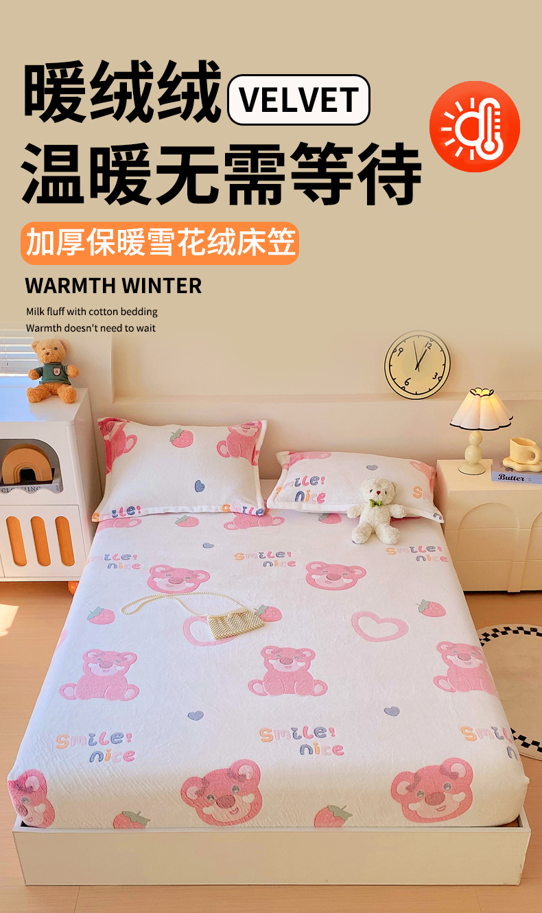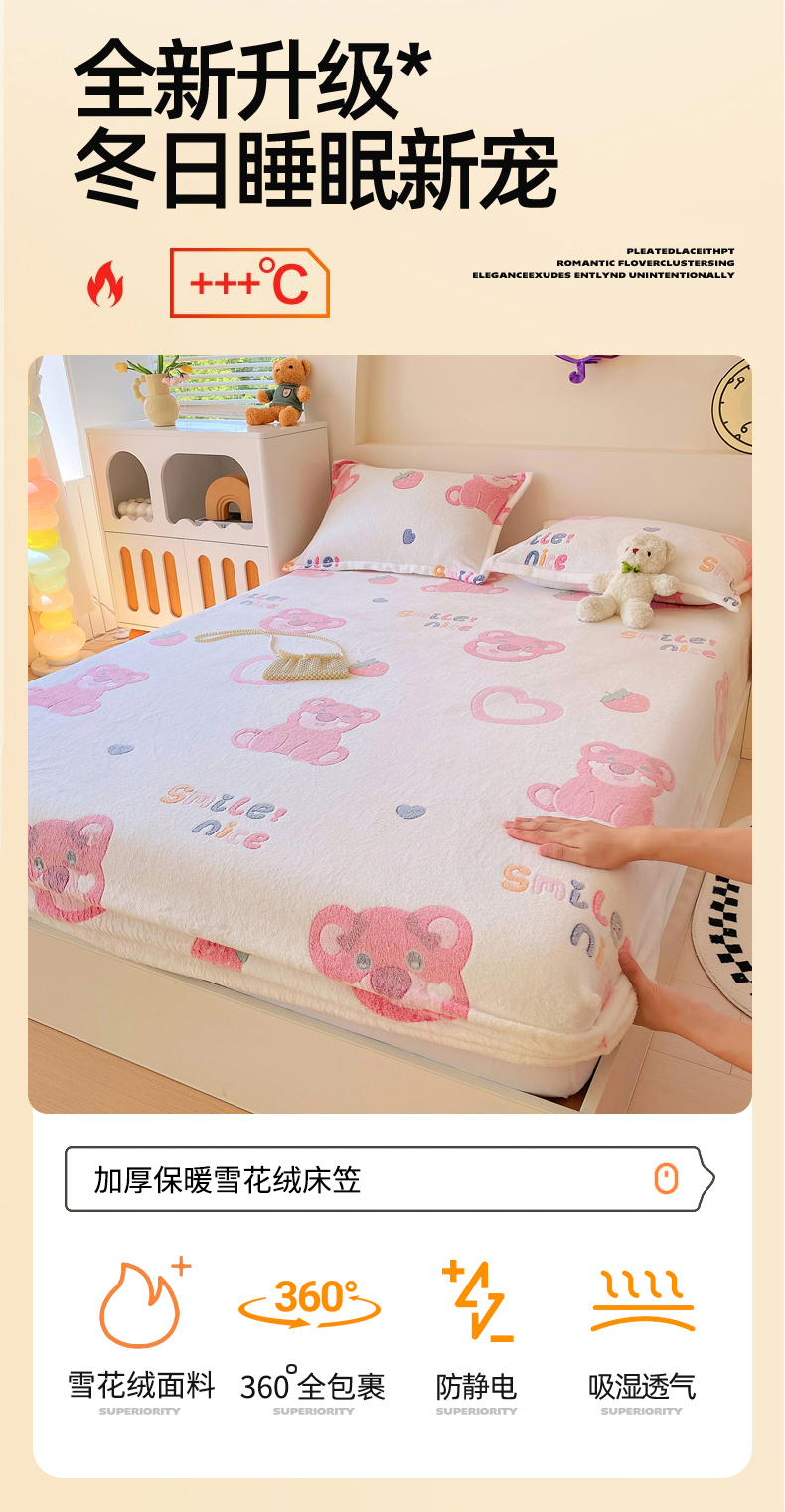 • 91家纺网 家纺一手货源 找家纺 梦尚舒 2025新款180克雪花绒床笠单品床笠床笠单件 幸运熊