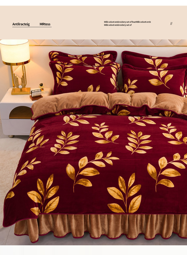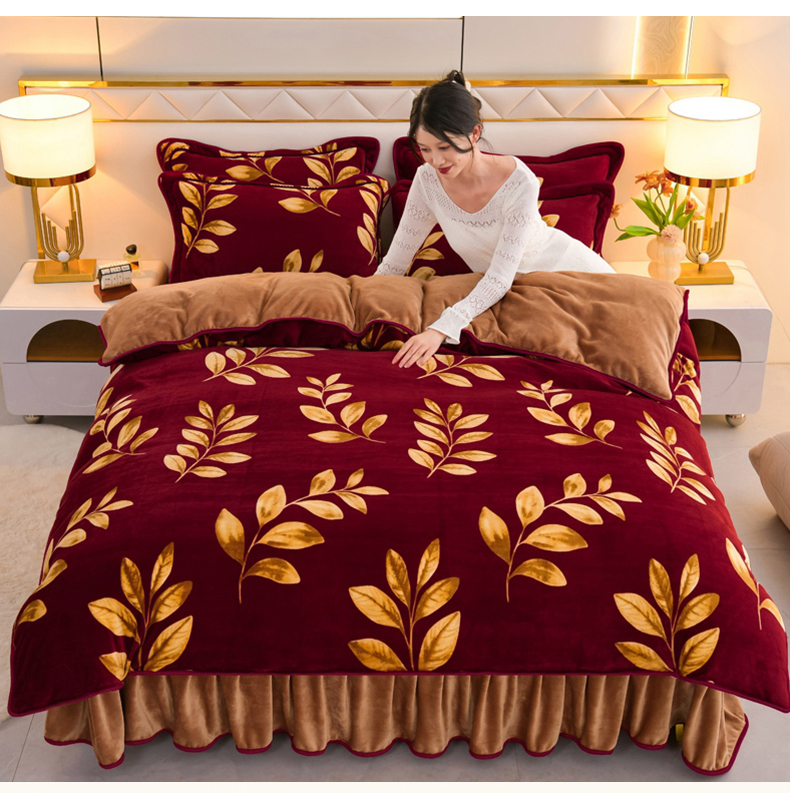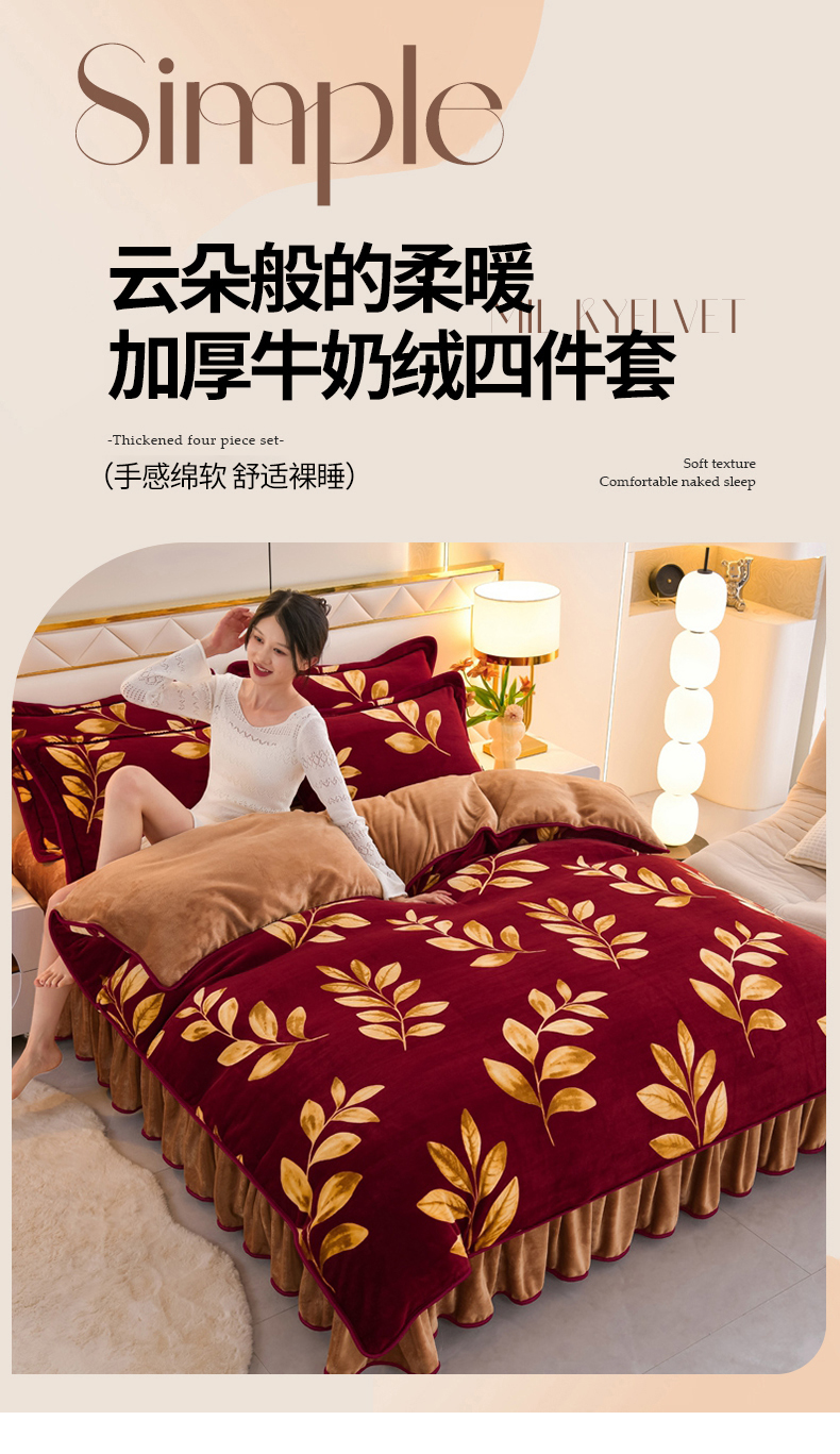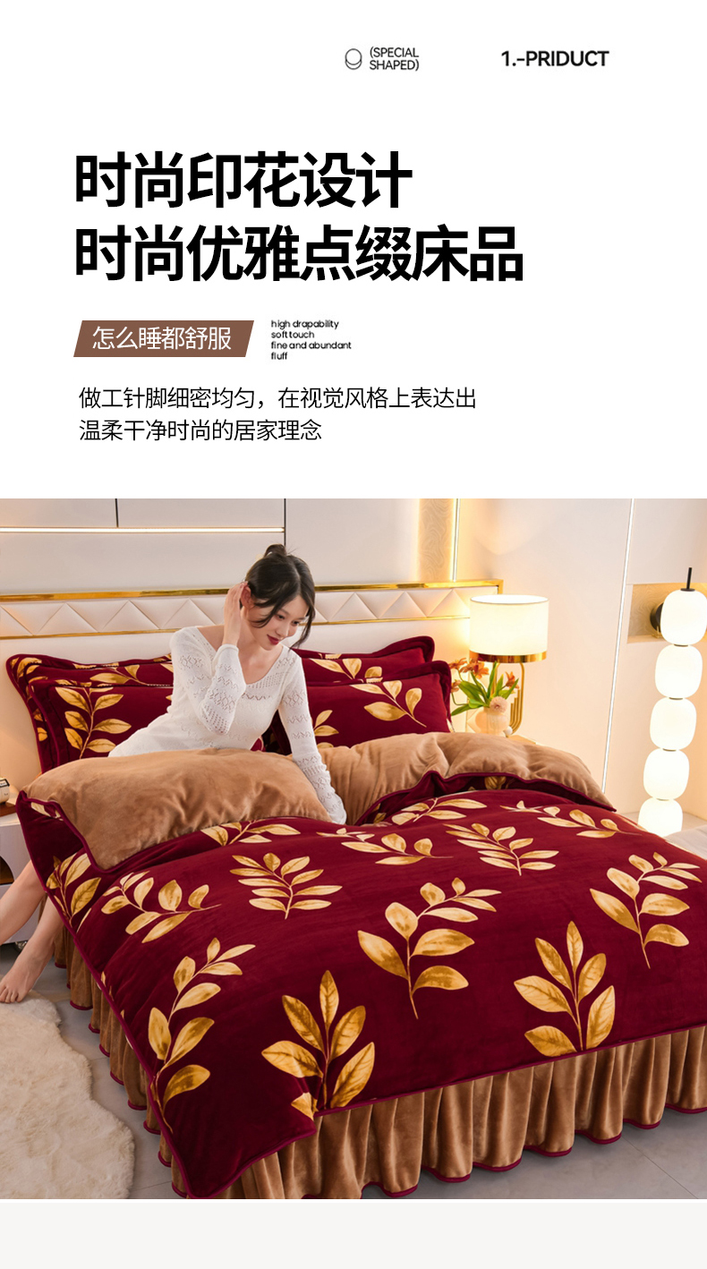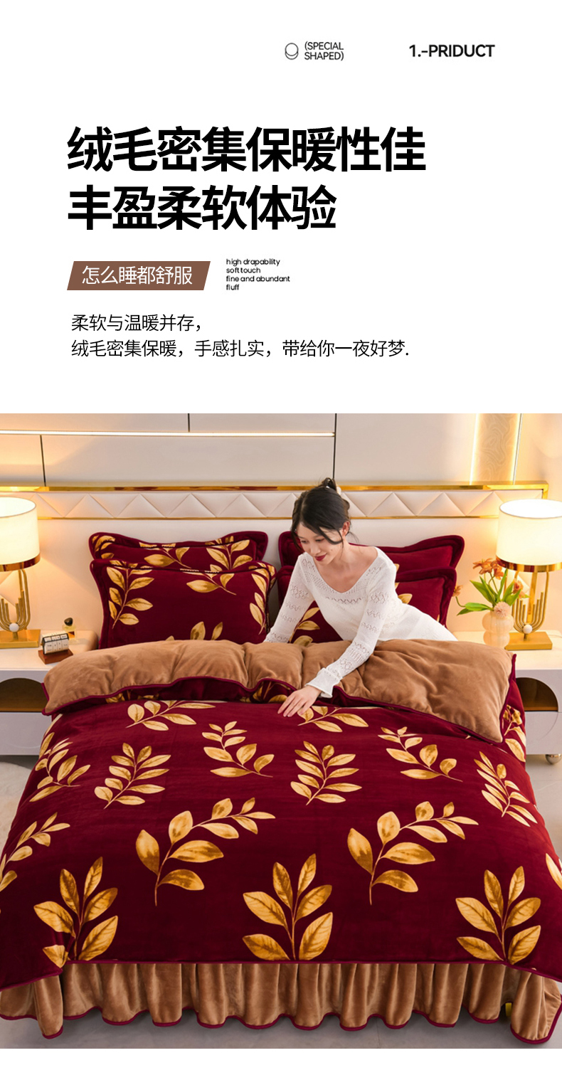 商品名称:眠多宝 2025新款8-9斤高克重牛奶绒四件套法莱绒水晶绒金貂绒抖音快手直播热款 金枝玉叶