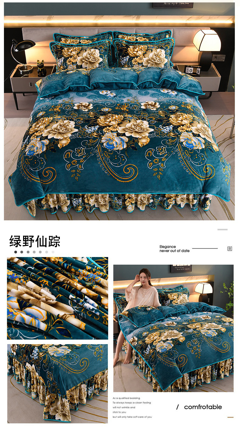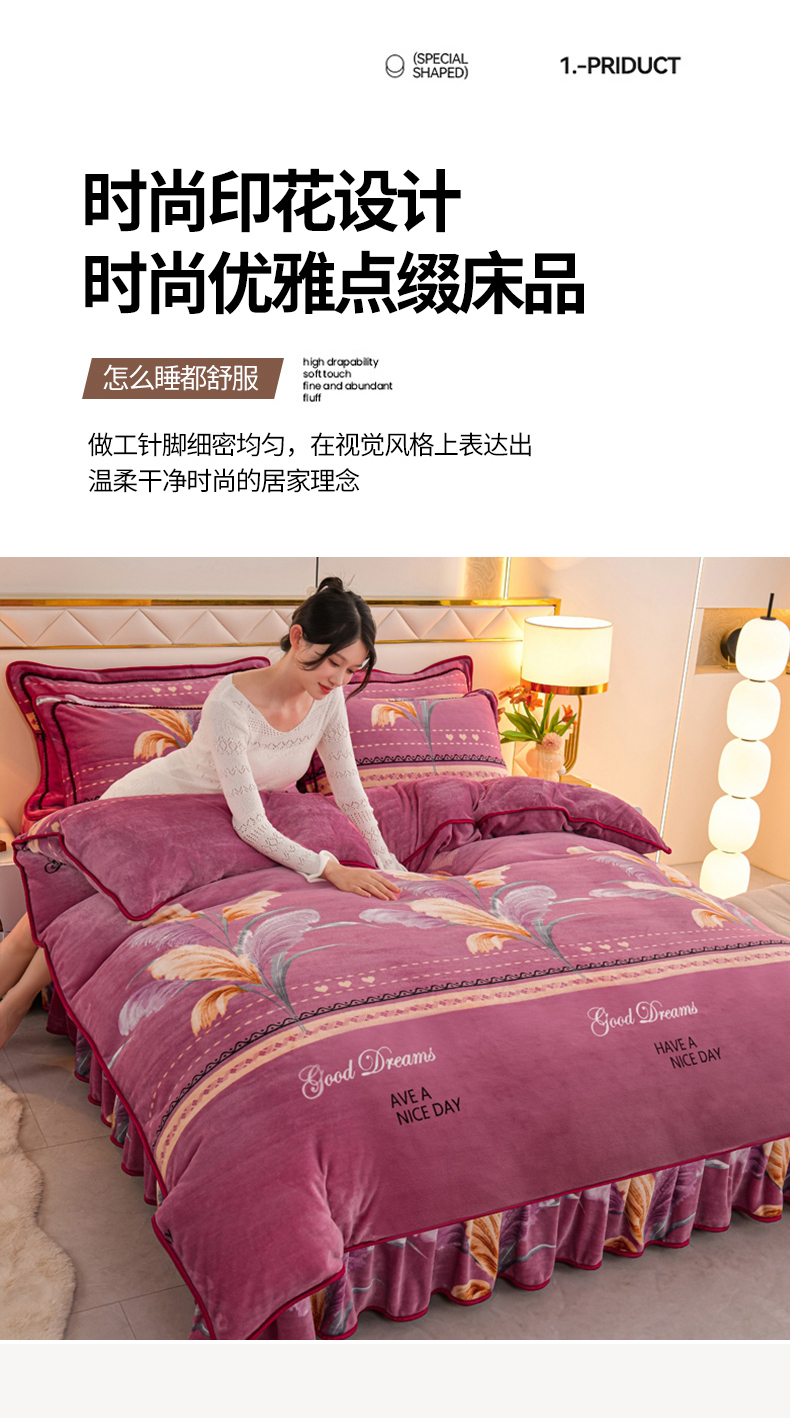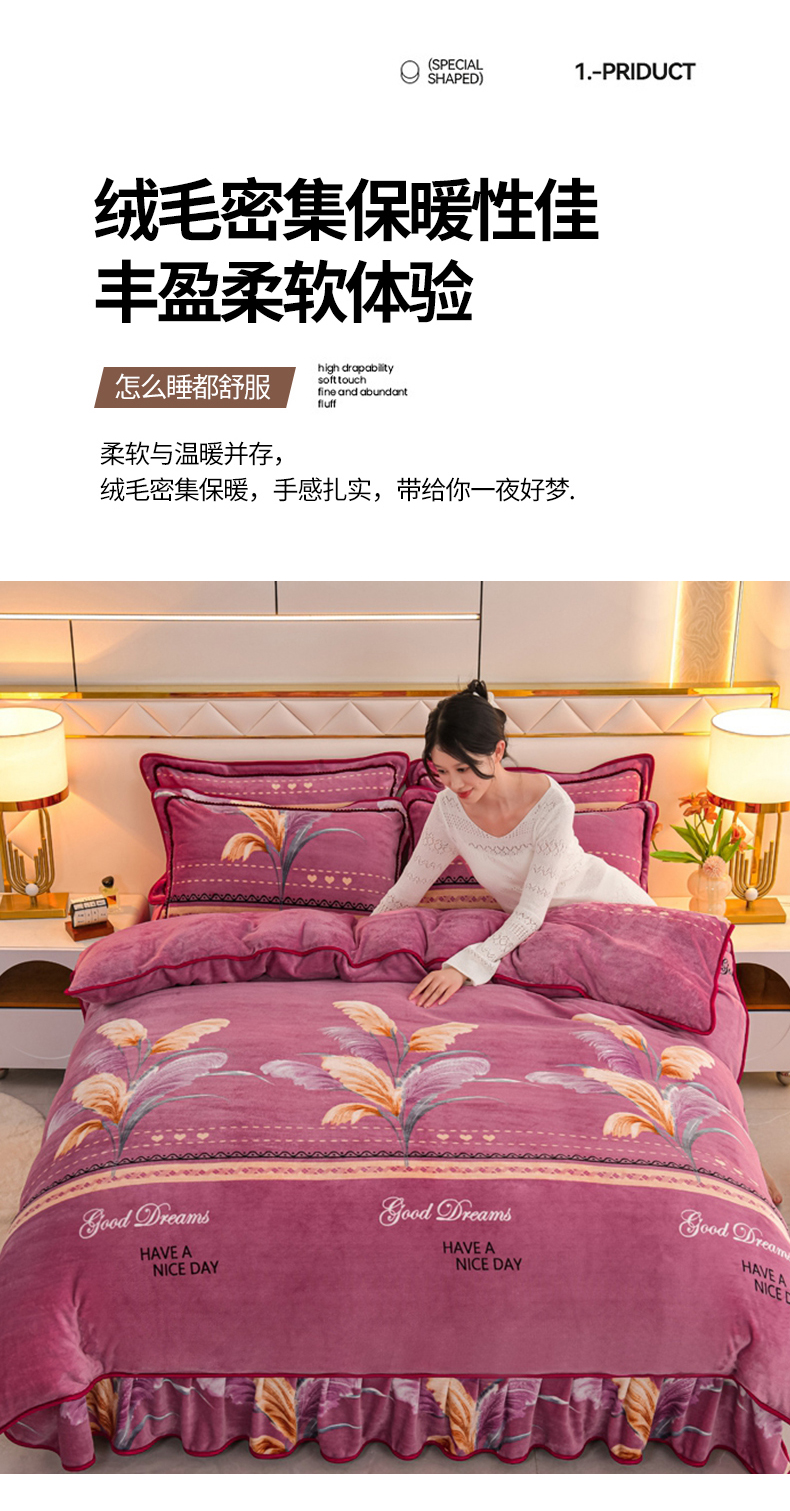商品名称:眠多宝 2025新款8-9斤高克重牛奶绒四件套法莱绒水晶绒金貂绒抖音快手直播热款 缘定今生