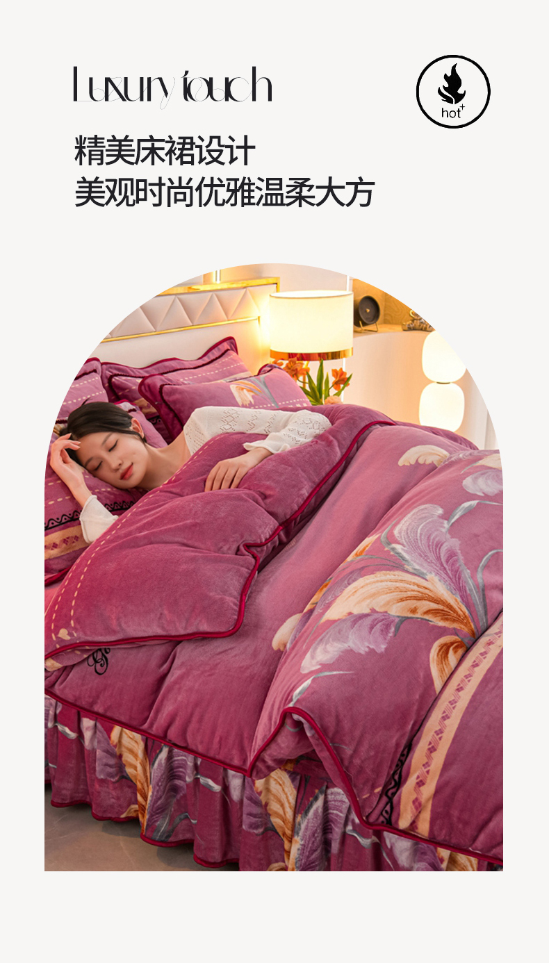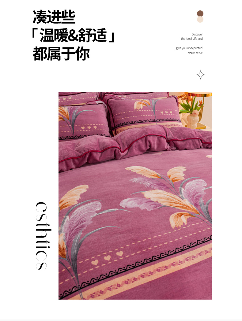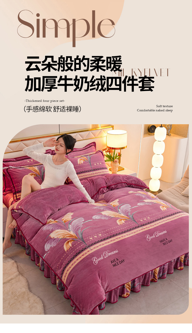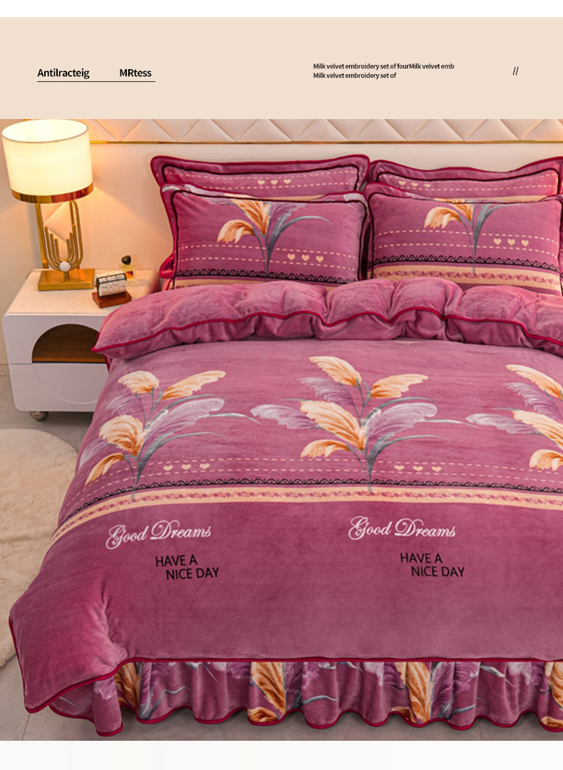 商品名称:眠多宝 2025新款8-9斤高克重牛奶绒四件套法莱绒水晶绒金貂绒抖音快手直播热款 缘定今生
