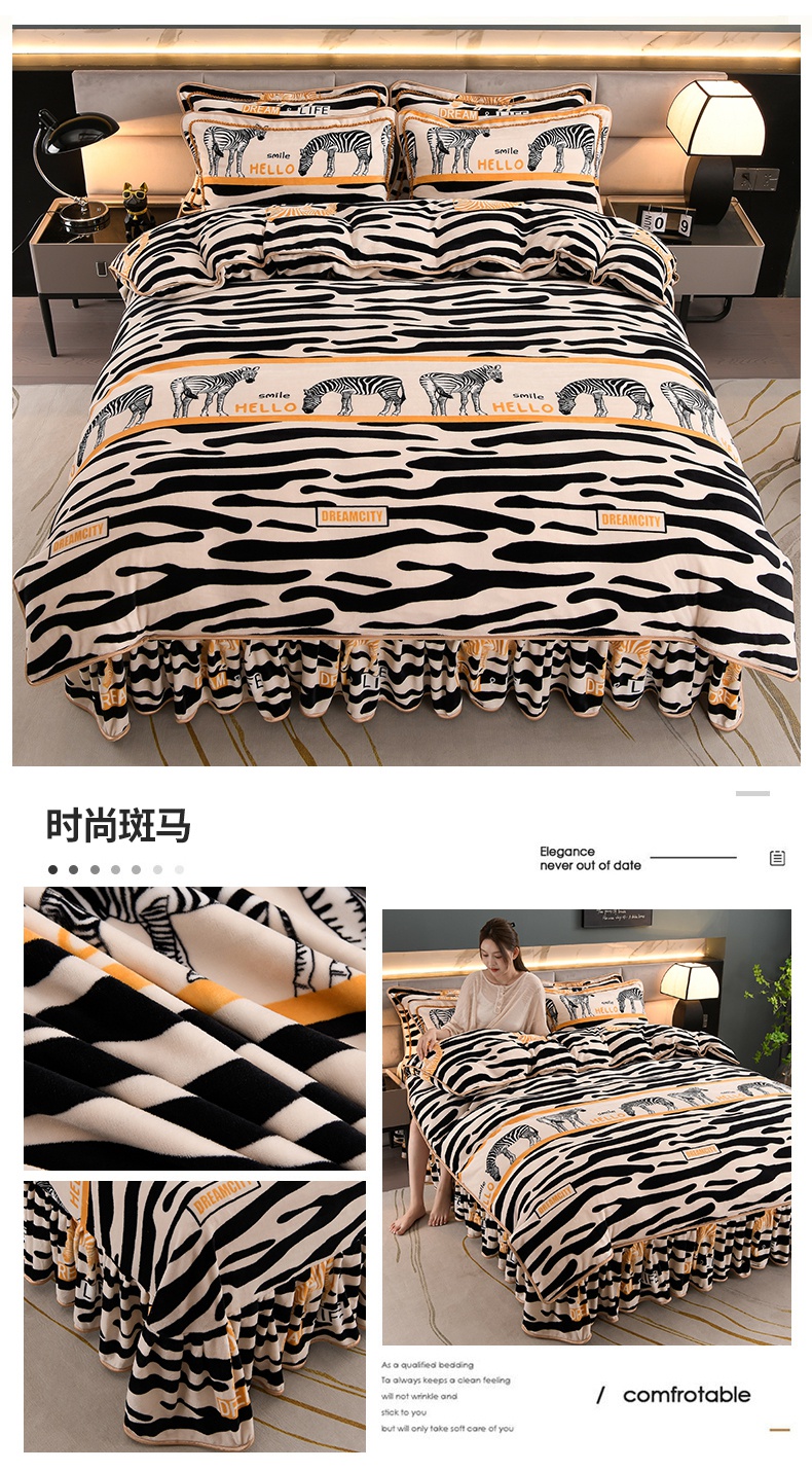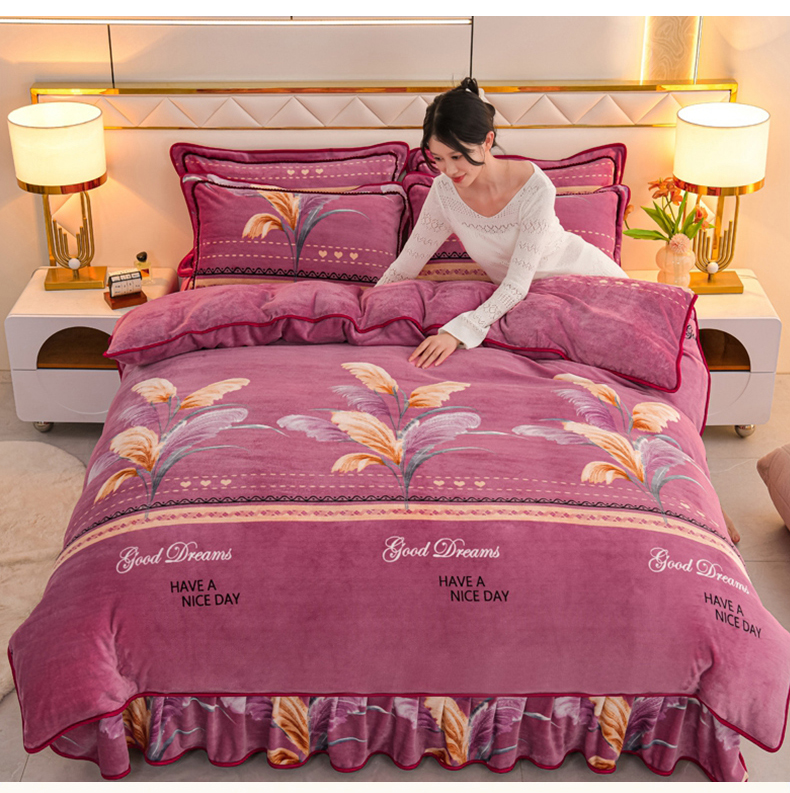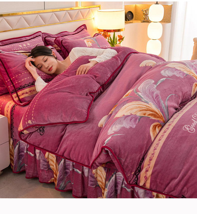 眠多宝 2025新款8-9斤高克重牛奶绒四件套法莱绒水晶绒金貂绒抖音快手直播热款 缘定今生