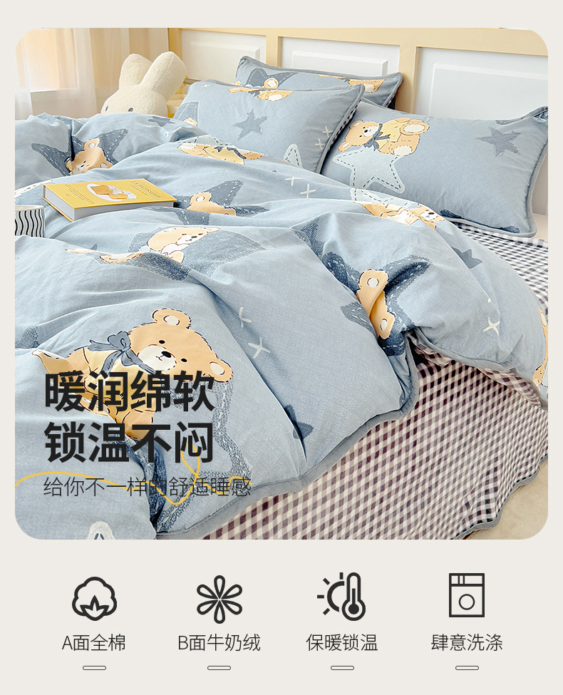 当前位置: 91家纺网 > 商品网购 > 床品套件 > 四件套 > 牛奶绒四件套 > 琪琪阁家纺 2025新款A类全棉纯棉加牛奶绒包边款单被套四件套星空宝贝