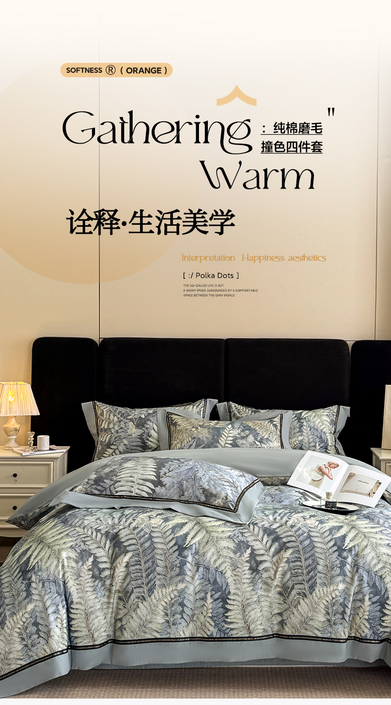(总)博纳家纺 2025新款亲肤舒适全棉纯棉磨毛撞色四件套-千山暮雪【控价劵后258(严格按控价来)】