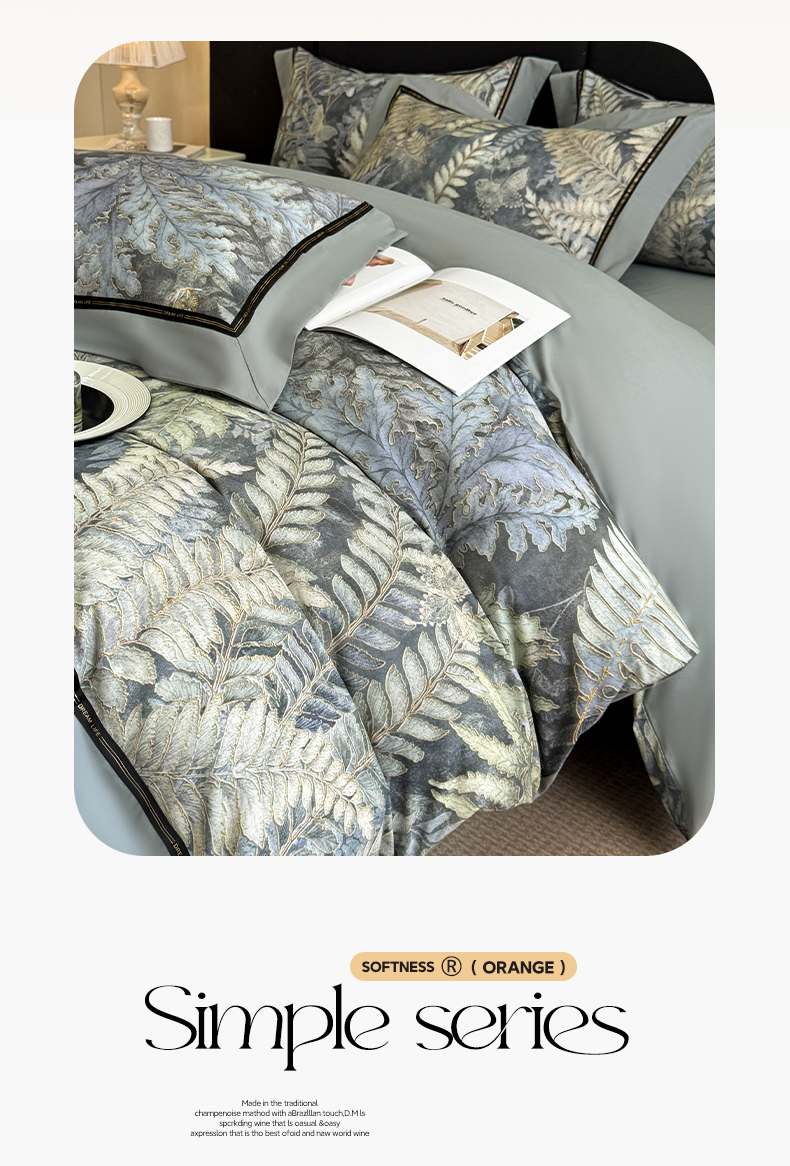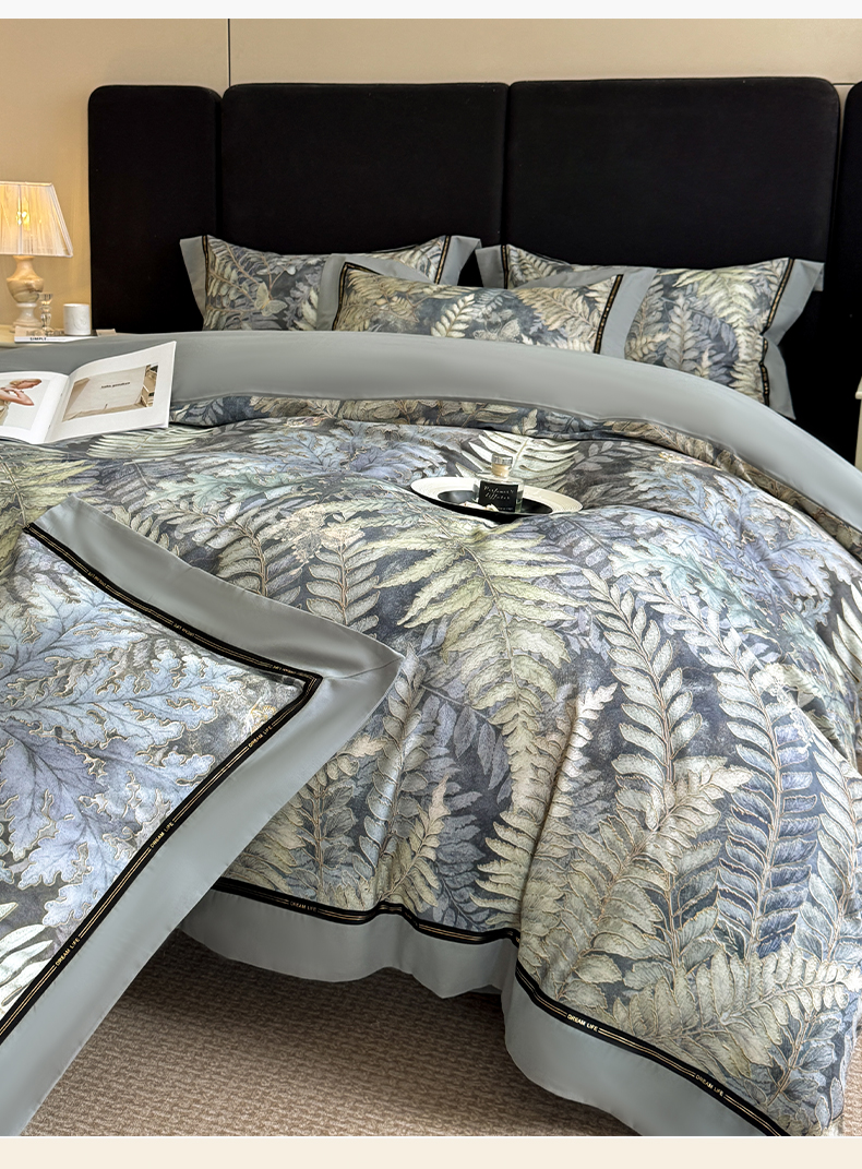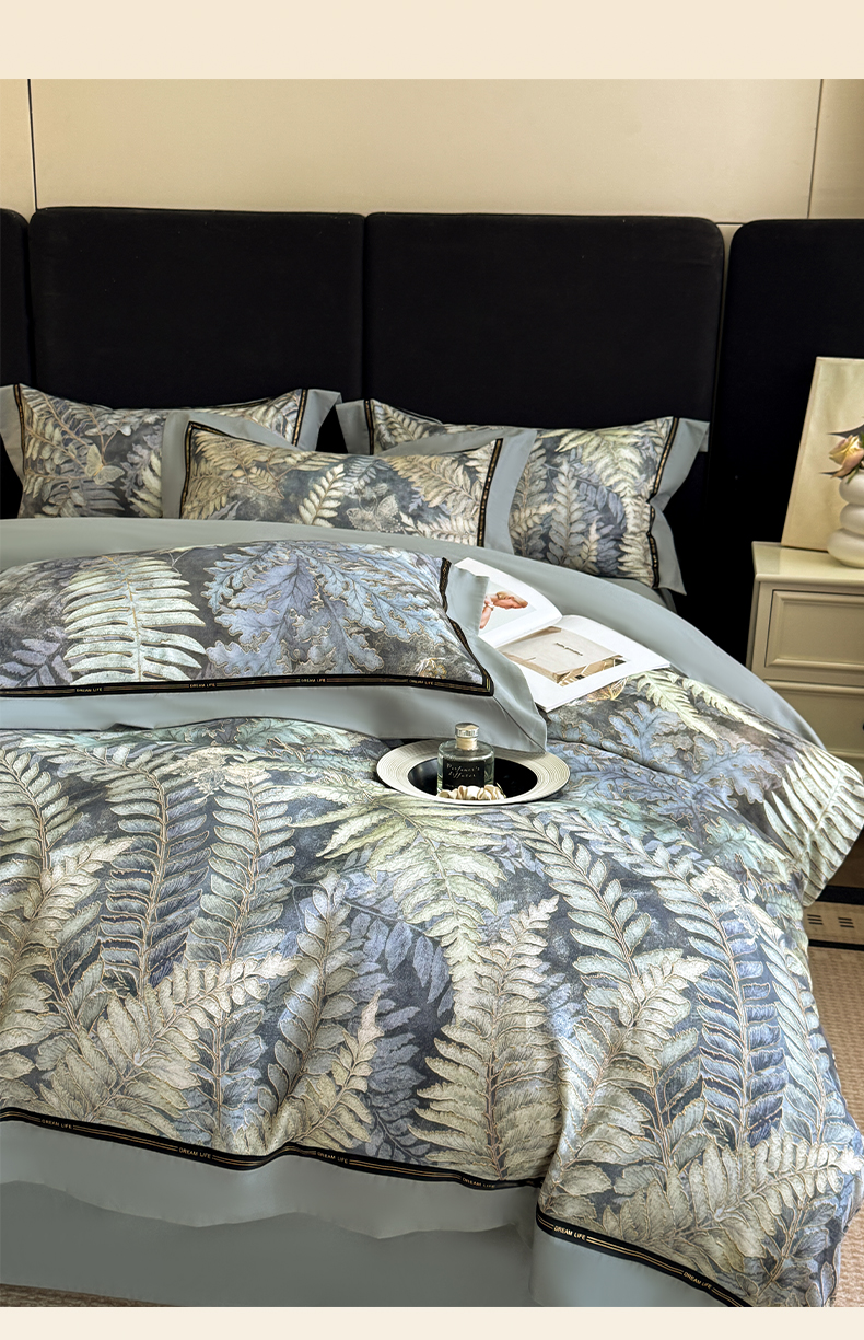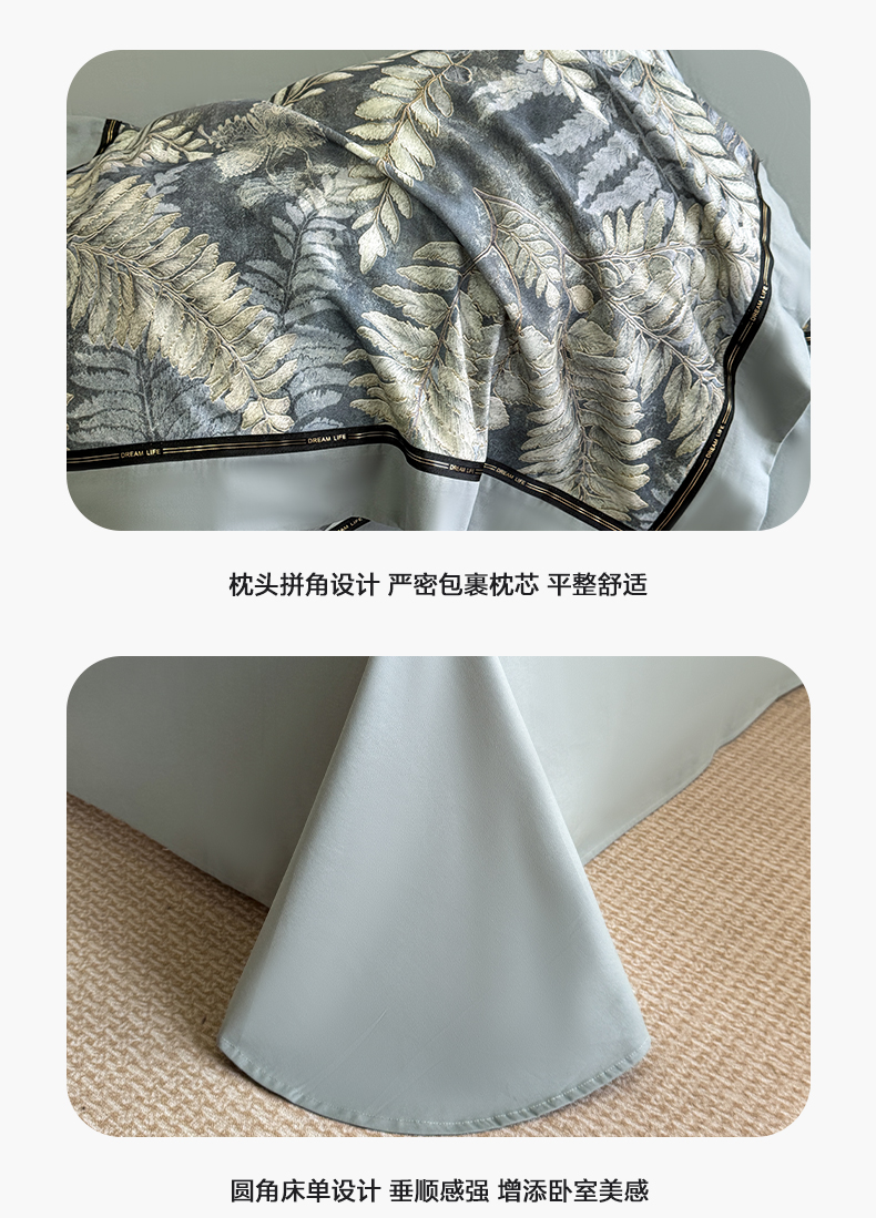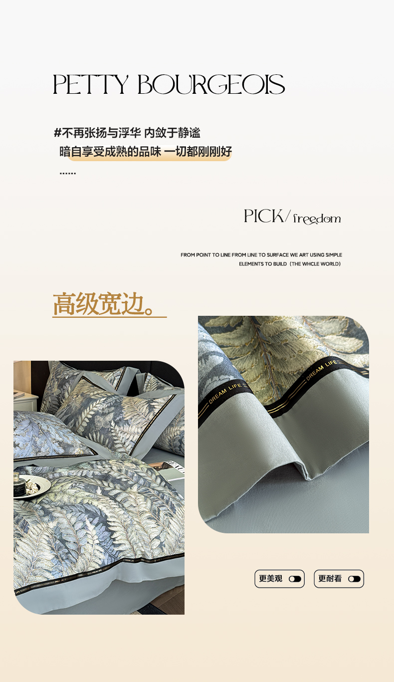 (总)博纳家纺 2026新款正宗60支纯棉 活性数码印花 宽边高级简奢 撞色拼角 纯棉四件套,查尔斯,清沙月贝,睡美人,玉树临风