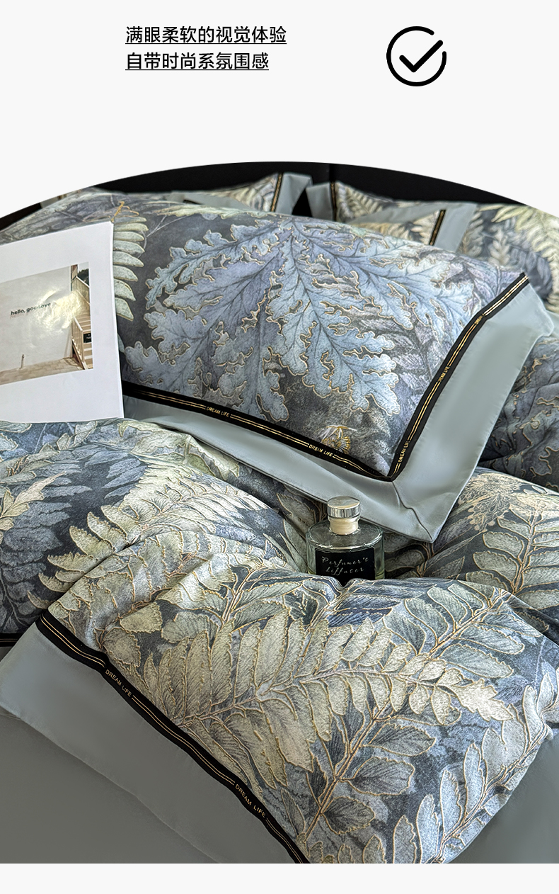 (总)博纳家纺 2025新款多色色织提花宽边高级简奢款纯棉四件套-山木花亭,山木花亭-繁星蓝,山木花亭-粉玉,山木花亭-绅士灰,山木花亭-香槟