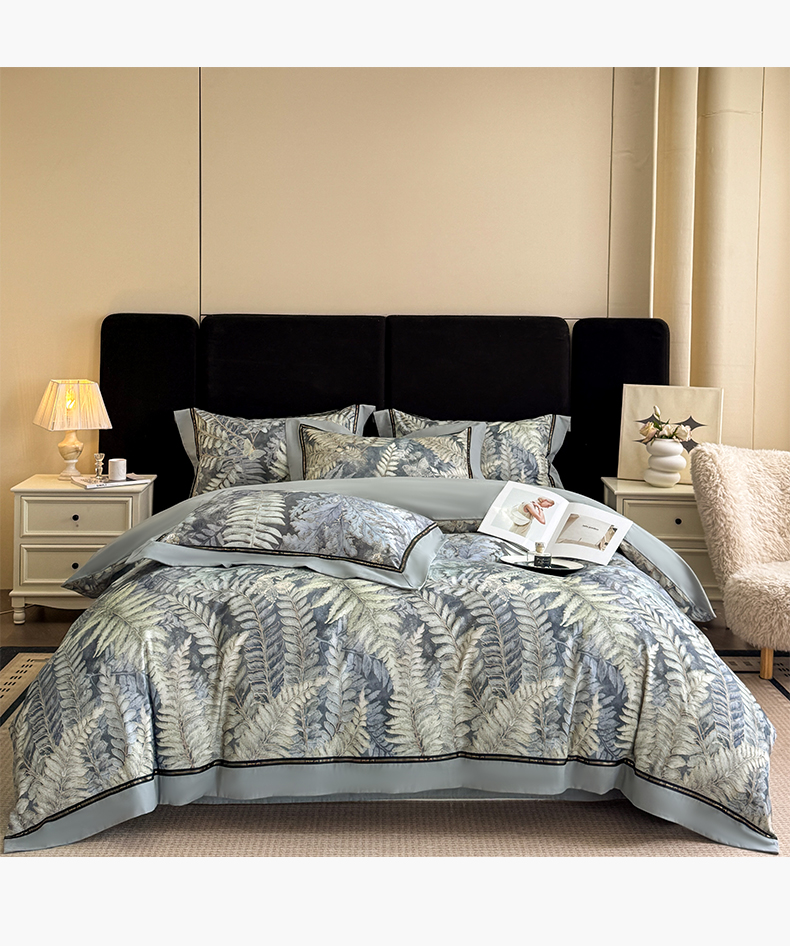 (总)博纳家纺 2025新款镂空大宽边拼角高级简奢款亲肤棉四件套-山水提花,繁星蓝,粉玉,高级灰,香槟,象牙白