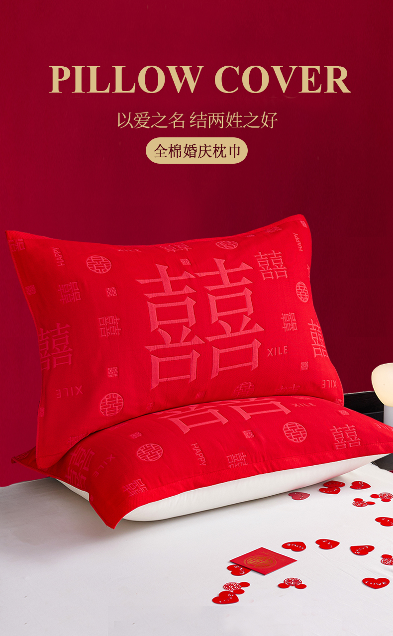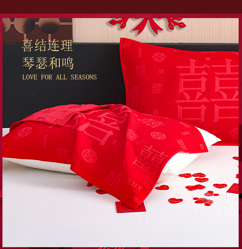棠薇家纺 2025新款全棉大红婚庆枕巾 喜结连理