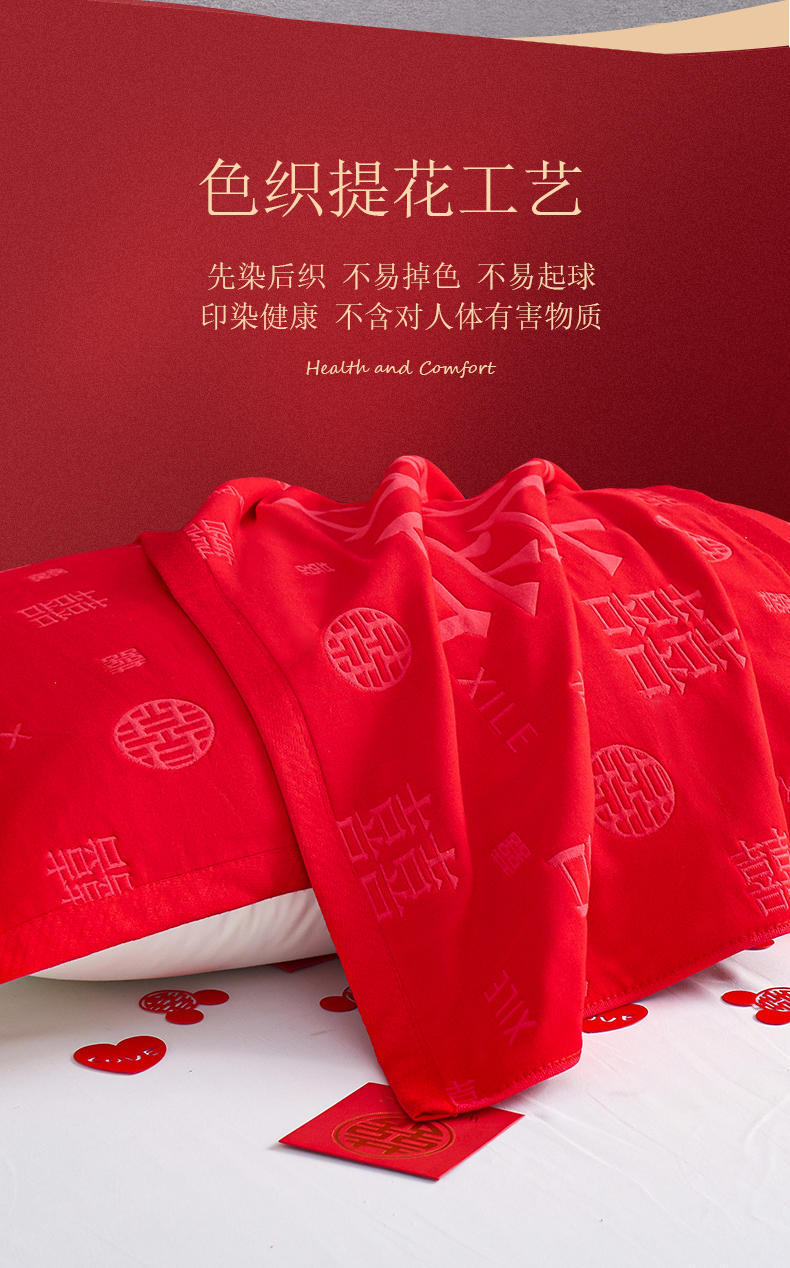 商品名称:棠薇家纺 2025新款全棉大红婚庆枕巾 喜结连理
