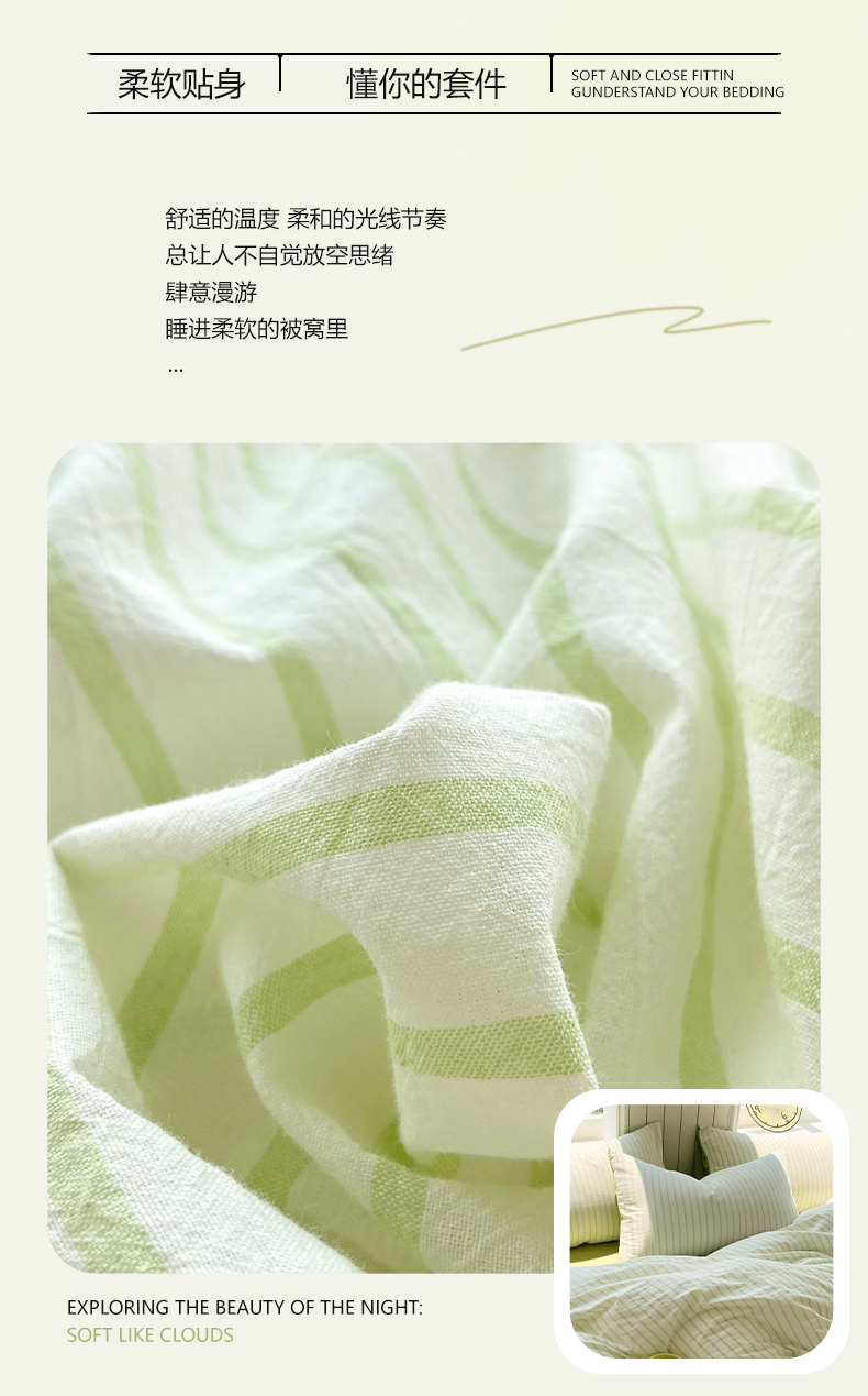 当前位置: 91家纺网 > 商品网购 > 床品套件 > 四件套 > 全棉普通四件套 > 春皖家纺 2025新款全棉纯棉色织AB版水洗棉四件套 青禾