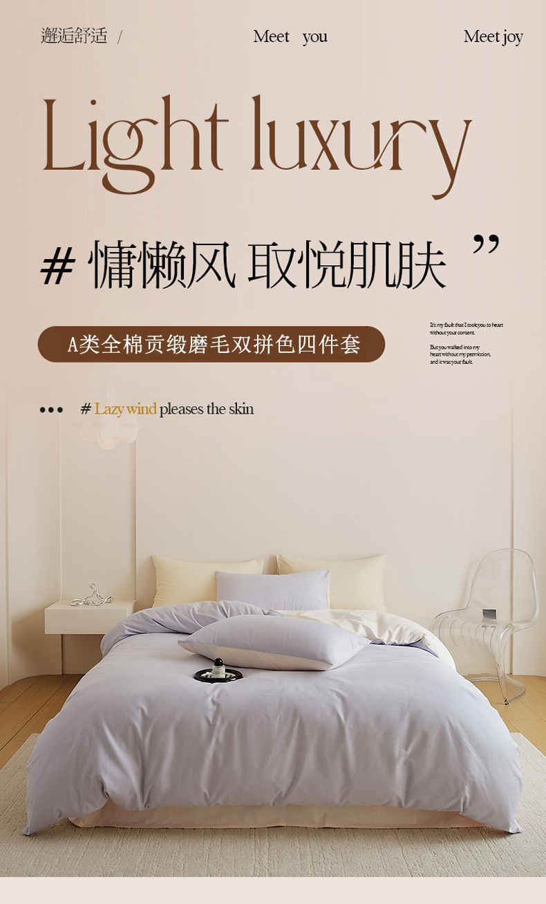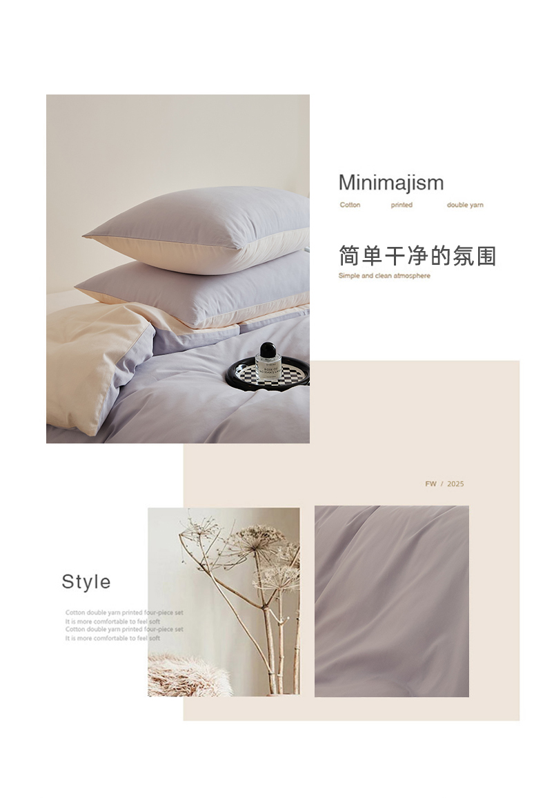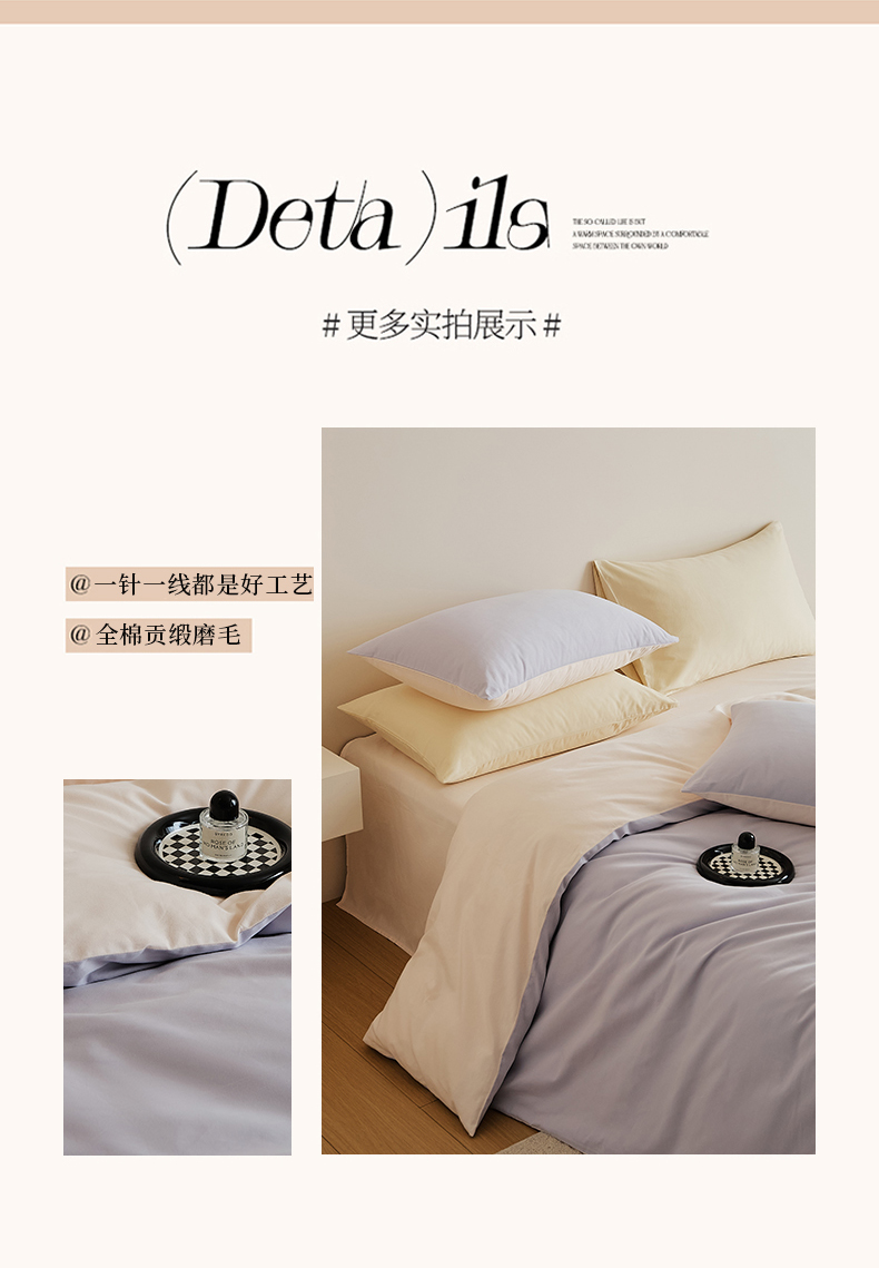 当前位置: 91家纺网 > 商品网购 > 床品套件 > 四件套 > 全棉普通四件套 > 眷恋家纺 2025新款A类全棉贡缎磨毛双拼色四件套 森屿
