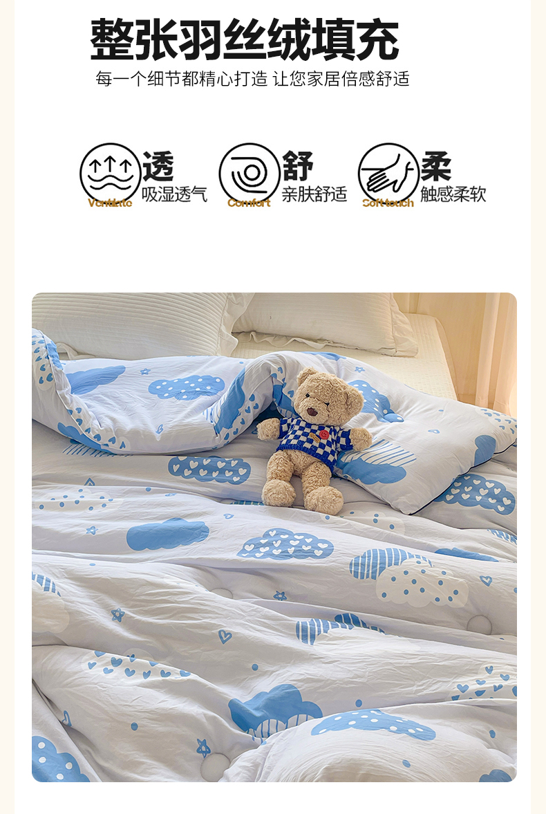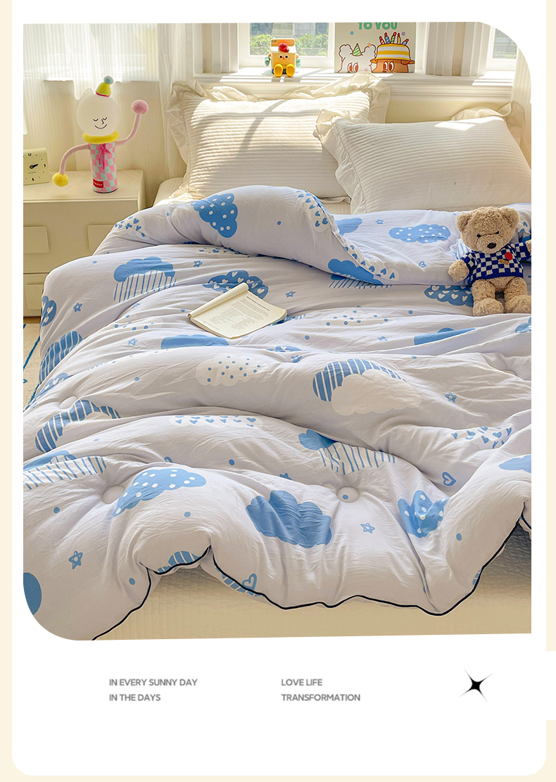 商品名称:寐居家纺 2025新款水洗棉印花冬被被子被芯 春雨绵绵