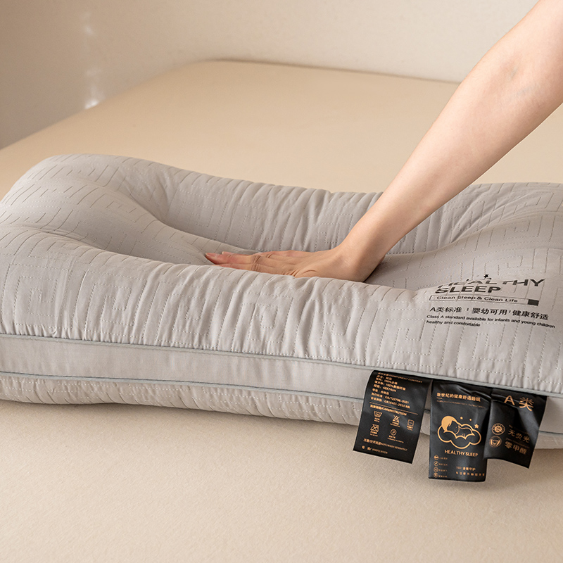 宇诺家纺 2025新款纯棉双面绗缝护颈枕枕头枕芯 低枕