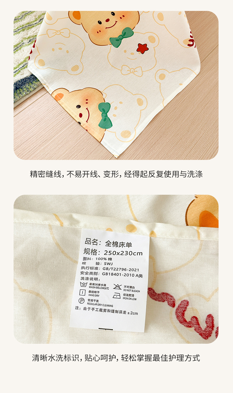 拾物记 2025新款A类12868全棉纯棉单床单床单单件-提供买家秀和质检报告 瑞迪熊