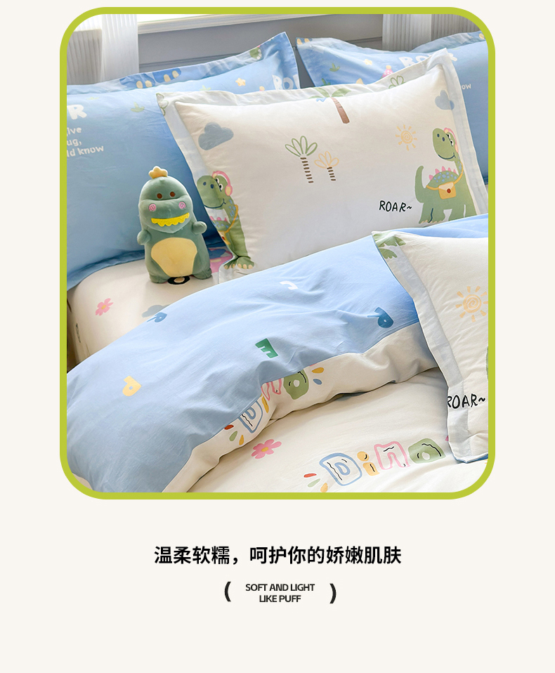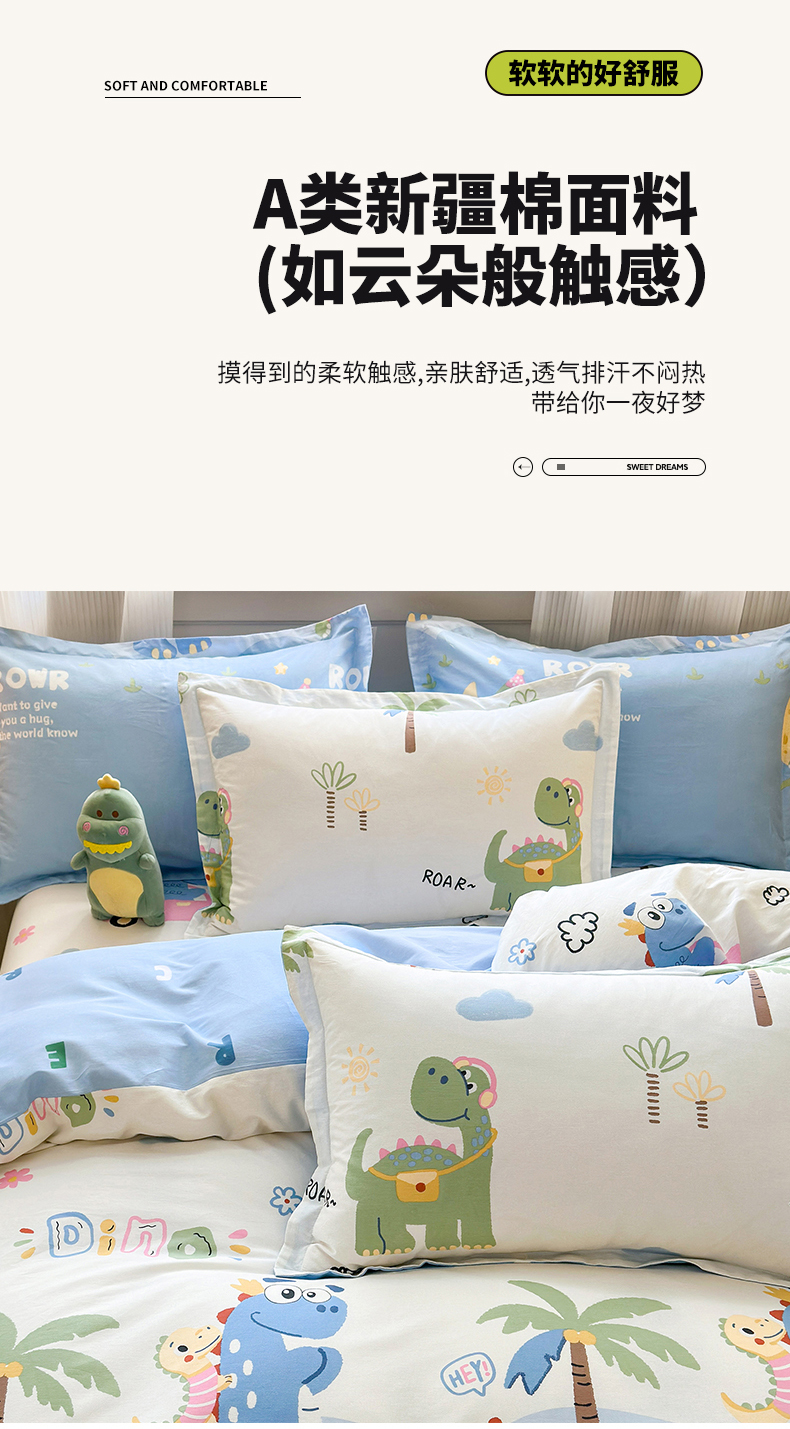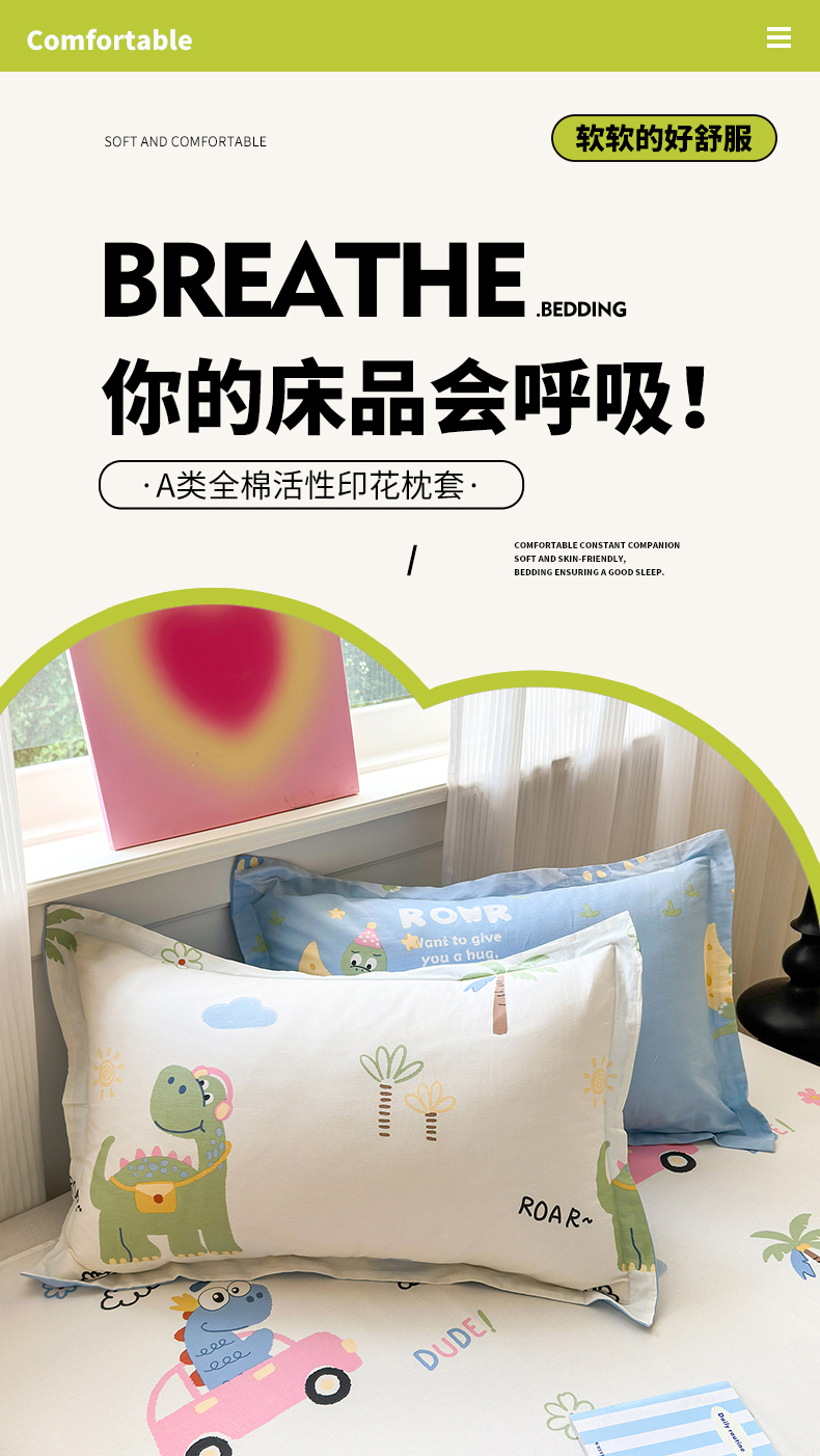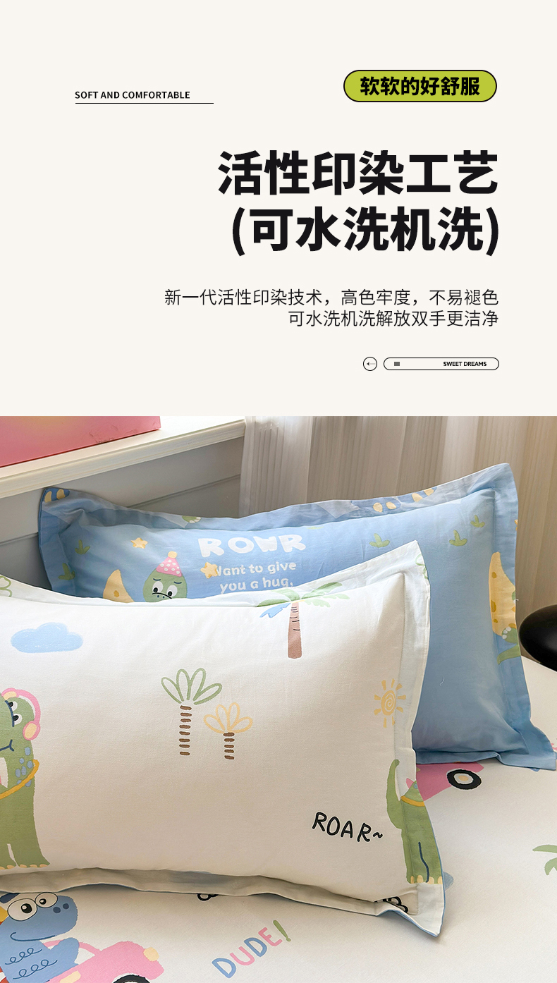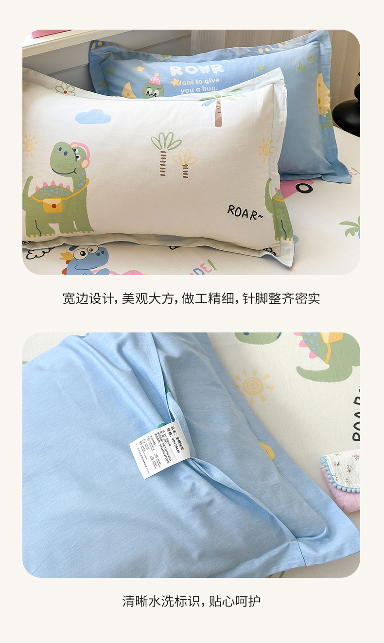 商品名称:拾物记 2025新款A类12868全棉纯棉单枕套枕套单件-提供买家秀和质检报告 度假恐龙