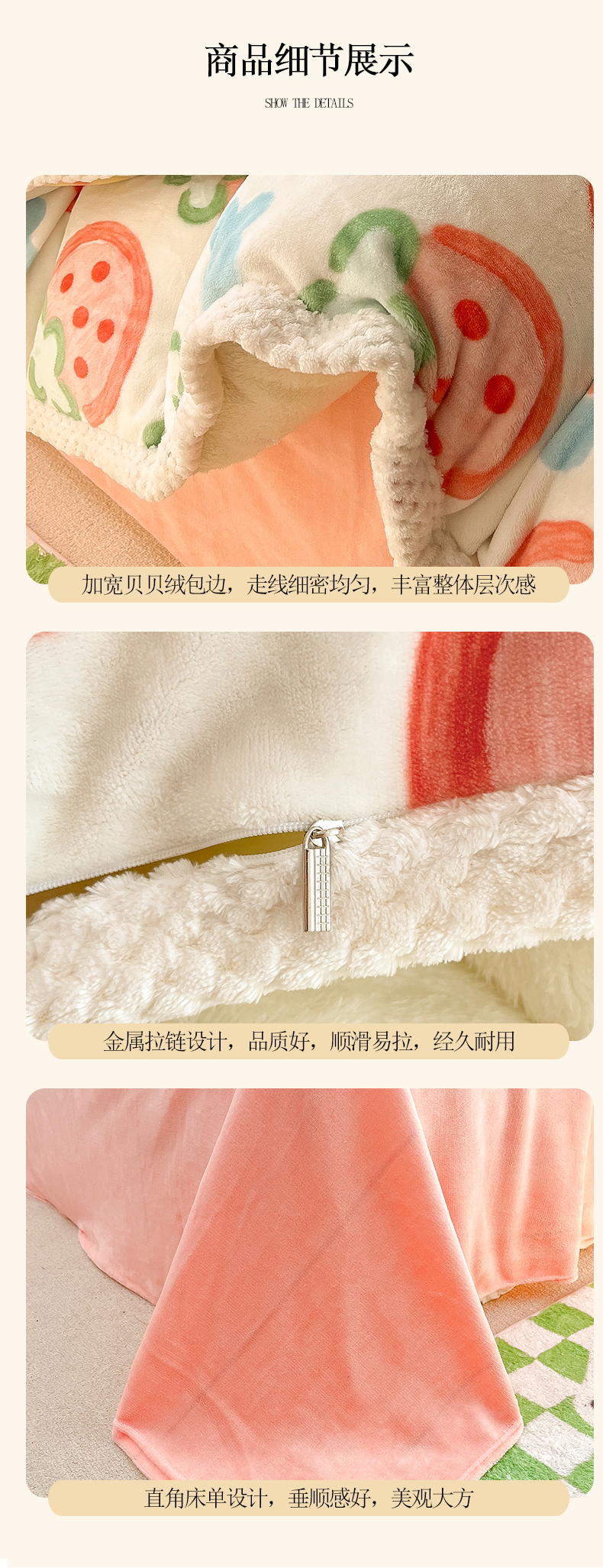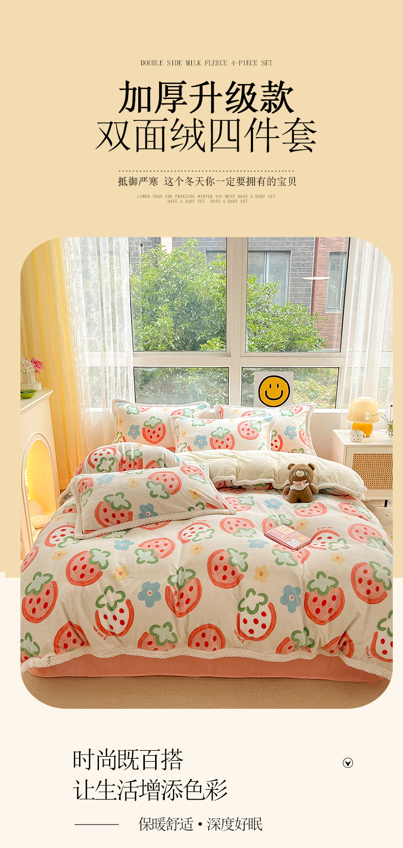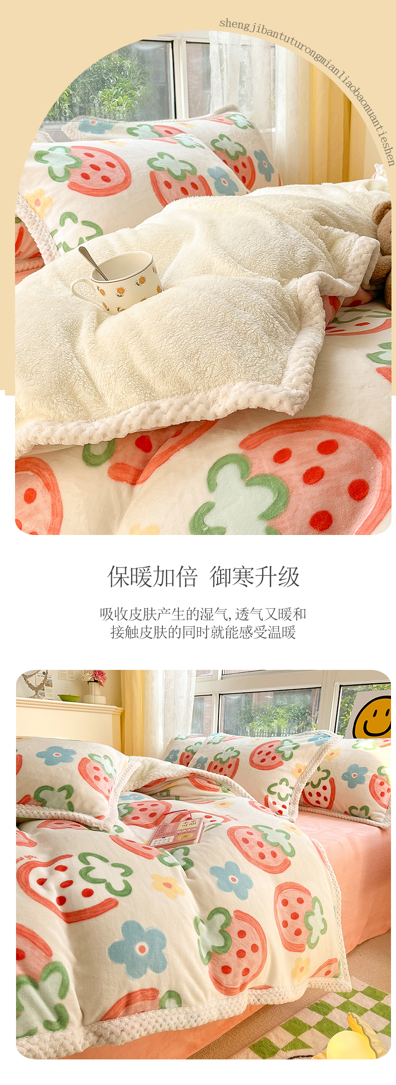 商品名称:琪格格纺织 2025新款A牛奶绒B兔兔绒保暖印花四件套 大包边绒海盐草莓