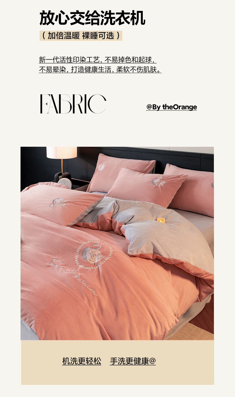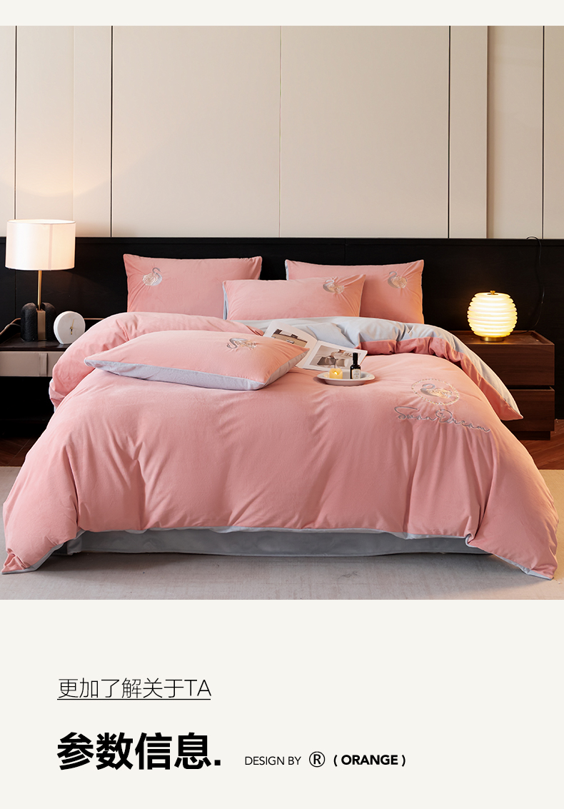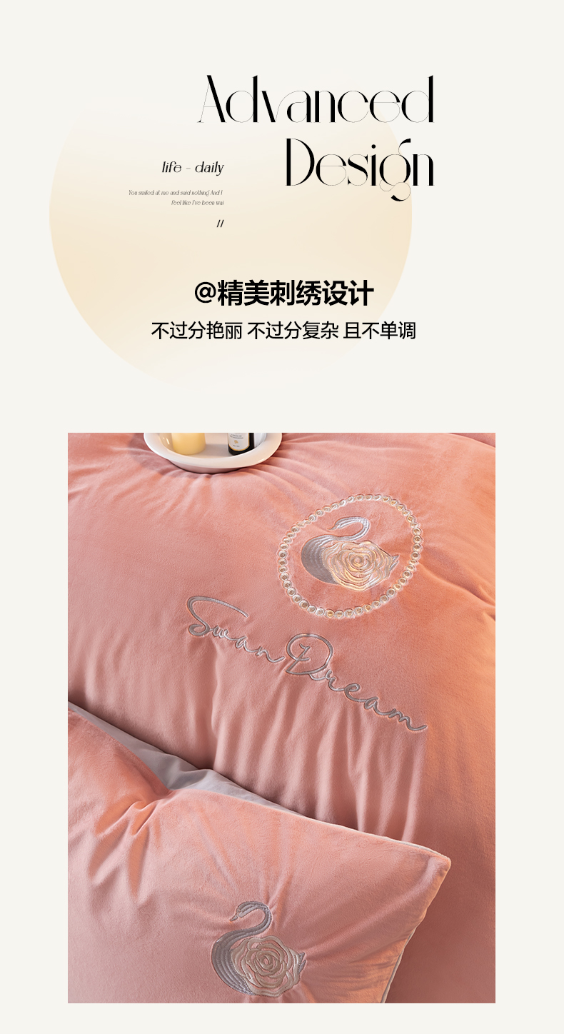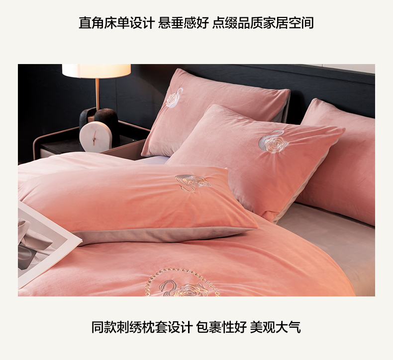 商品名称:如一 2025新款水晶绒双拼刺绣四件套天鹅系列 天鹅-浅豆沙