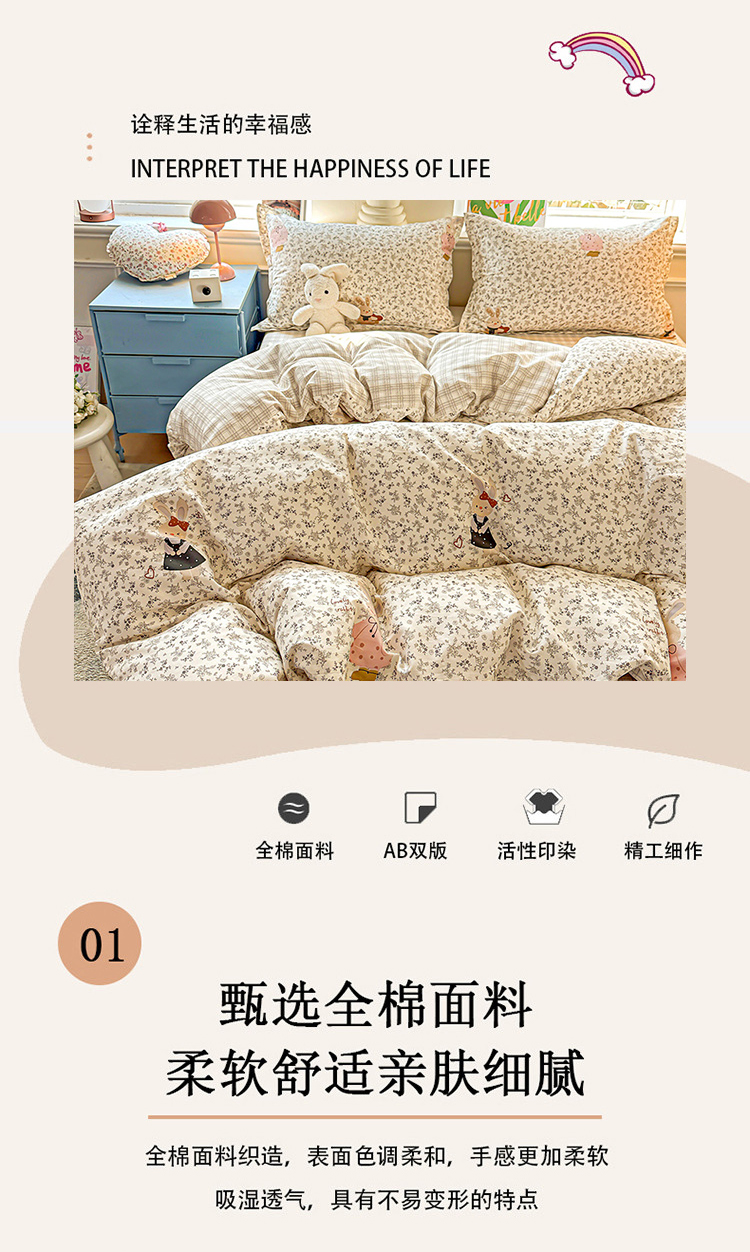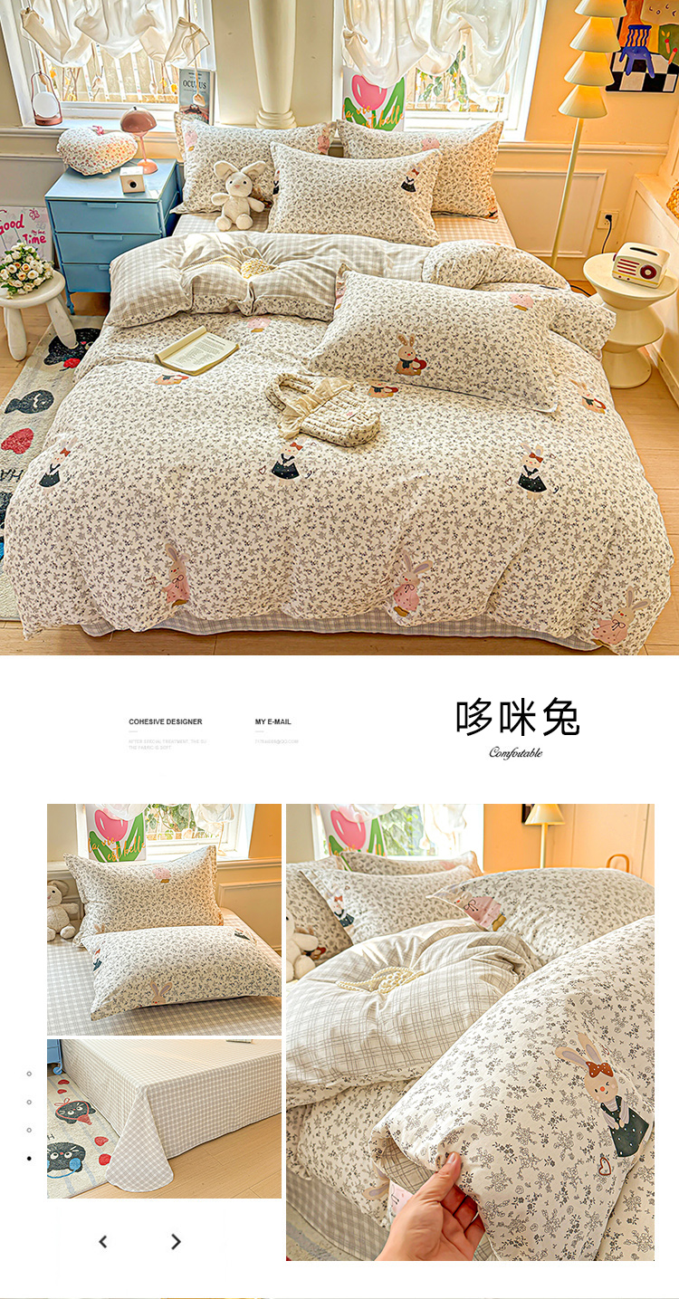 当前位置: 91家纺网 > 商品网购 > 床品套件 > 四件套 > 全棉普通四件套 > 卡普纯棉全棉四件套13070喷气床单款床笠款三件套 哆咪兔