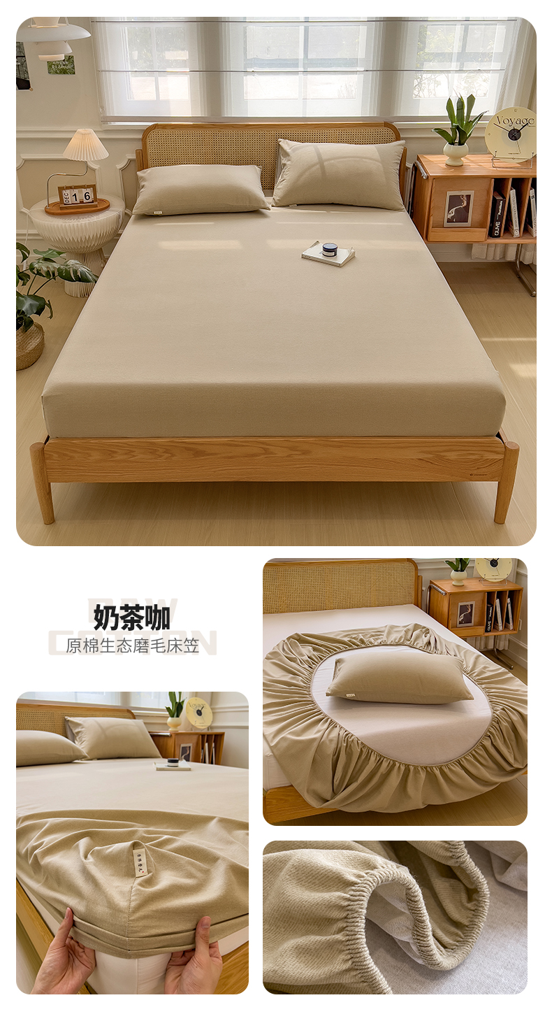芃成家纺 2025新款原棉生态磨毛单床笠 奶茶咖