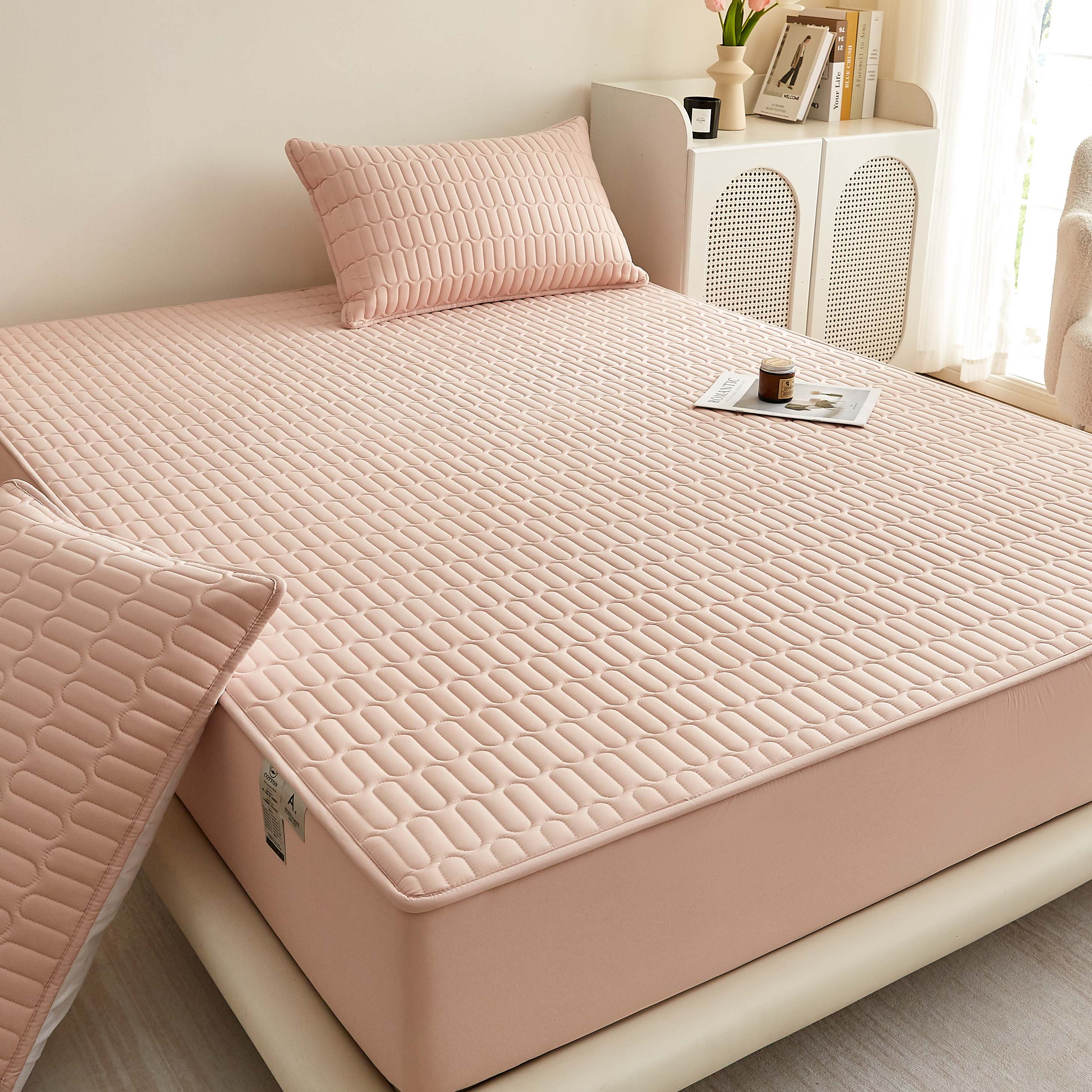 (总)蕾诺家纺 2025新款纯棉全包裹床罩防滑防尘夹棉床笠,波浪纹白色,波浪纹粉色,波浪纹绿色,波浪纹浅灰,波浪纹深灰,波浪纹驼色