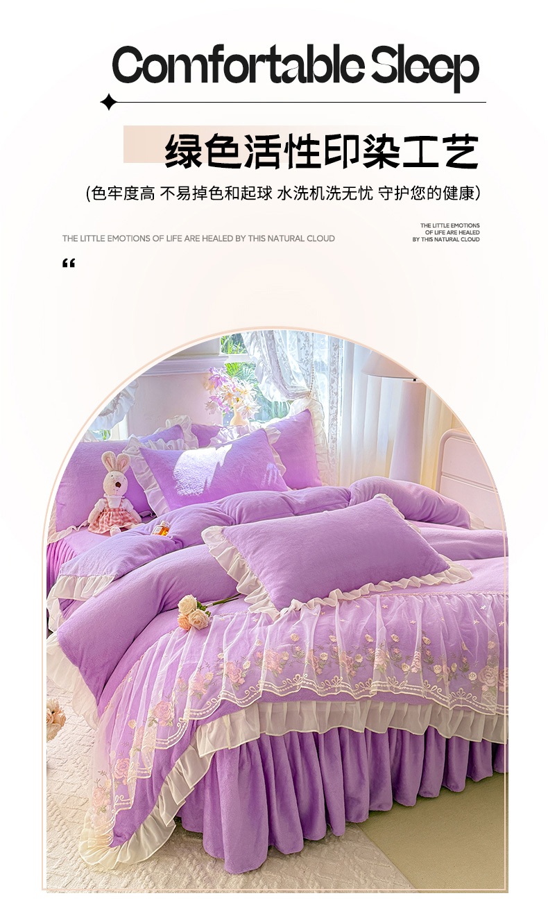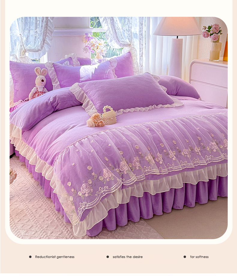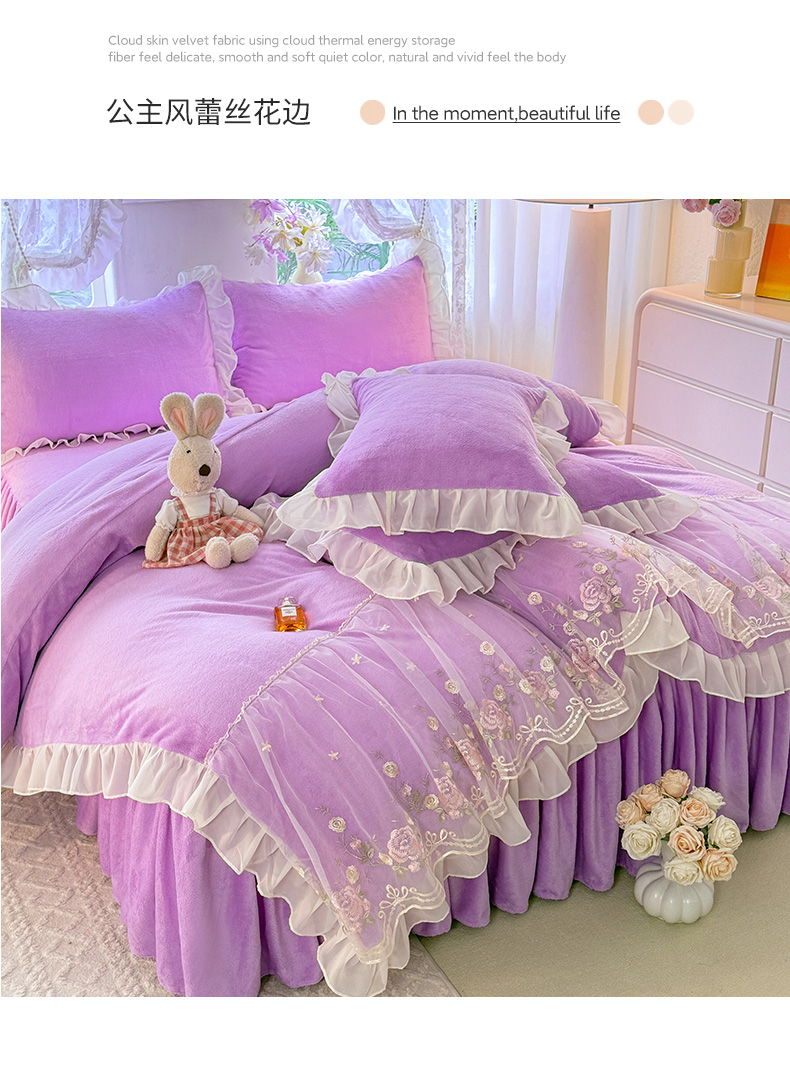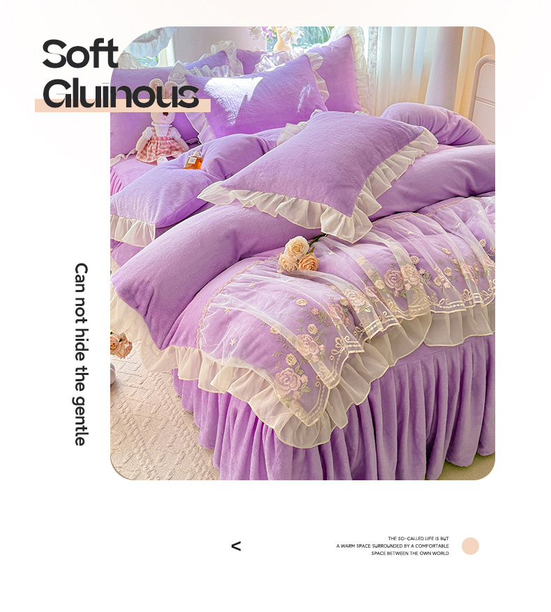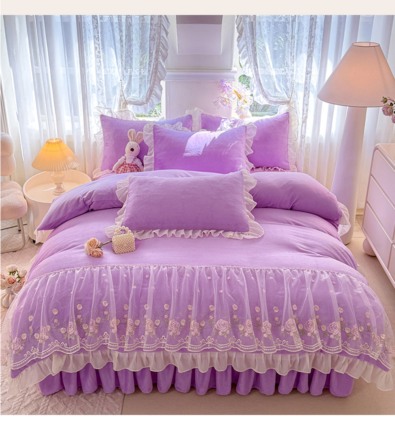 当前位置: 91家纺网 > 商品网购 > 床品套件 > 四件套 > 牛奶绒四件套 > 后庭寝室 2025新款高克重牛奶绒公主风床裙四件套-甜心系列 甜心-浅紫