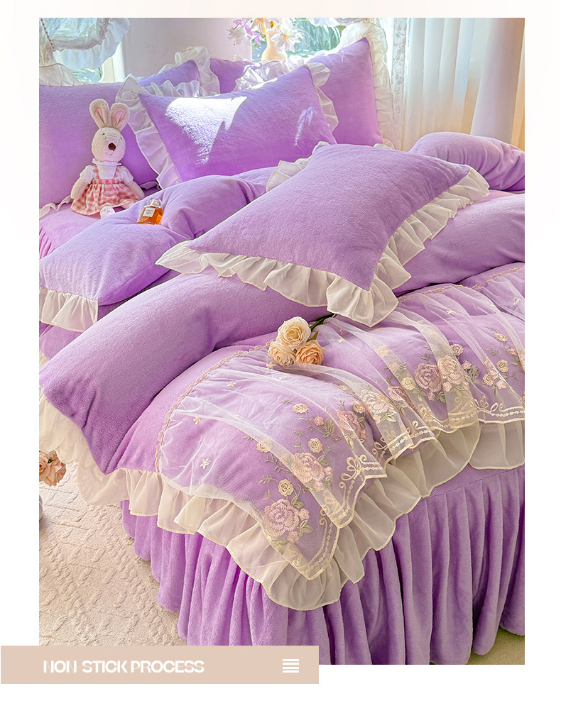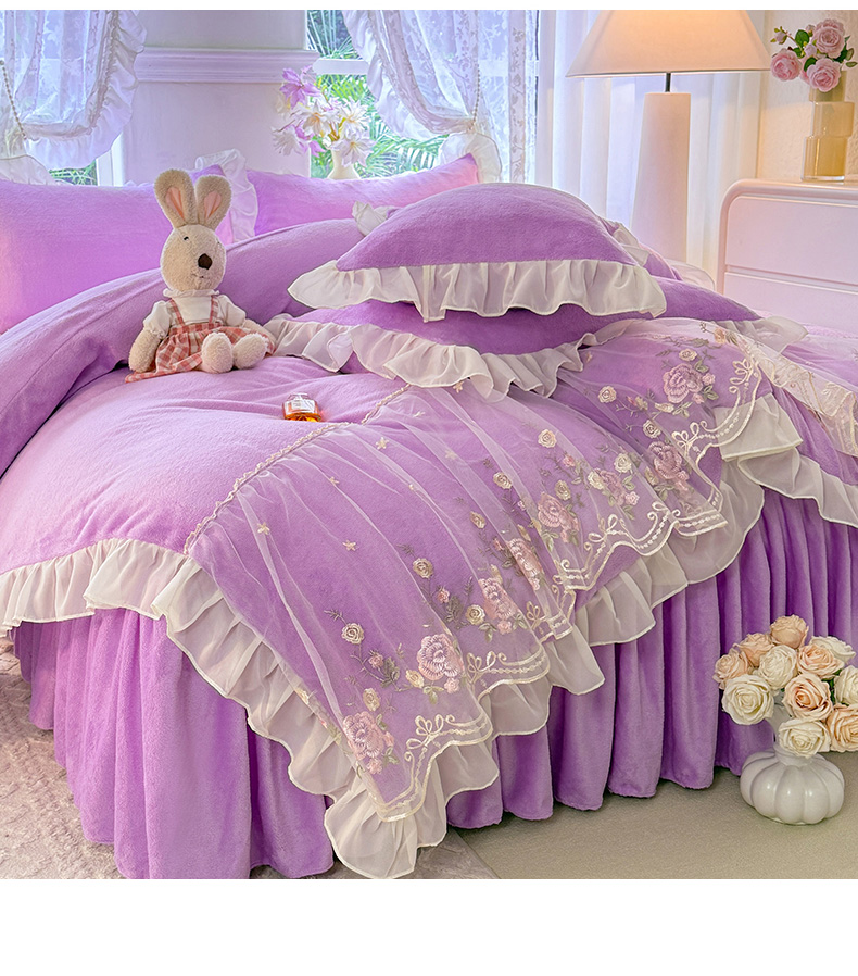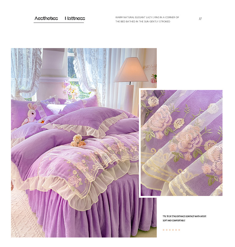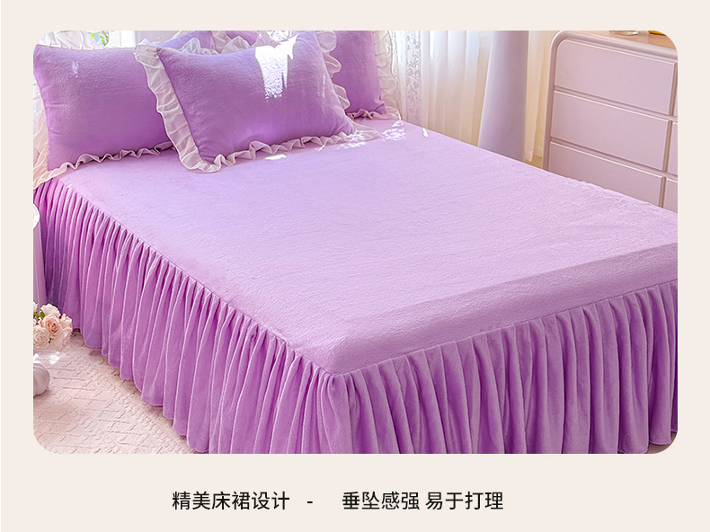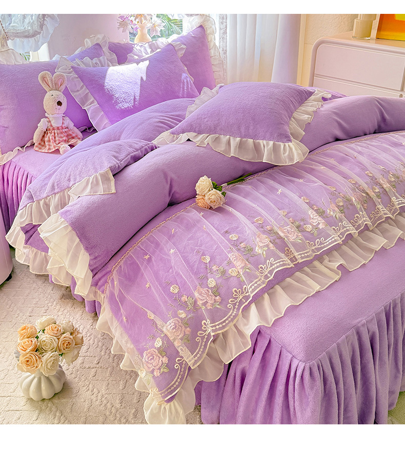当前位置: 91家纺网 > 商品网购 > 床品套件 > 四件套 > 牛奶绒四件套 > 后庭寝室 2025新款高克重牛奶绒公主风床裙四件套-甜心系列 甜心-浅紫